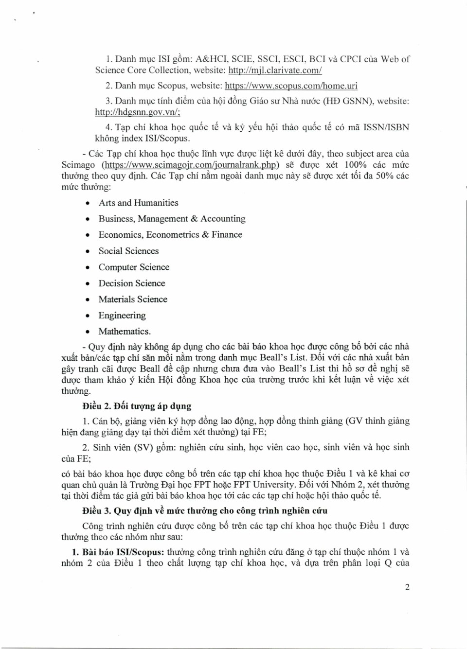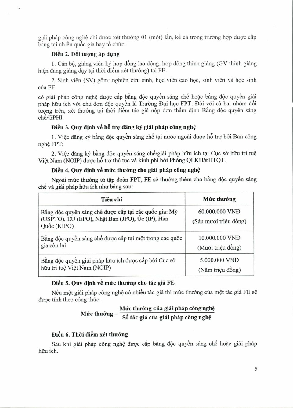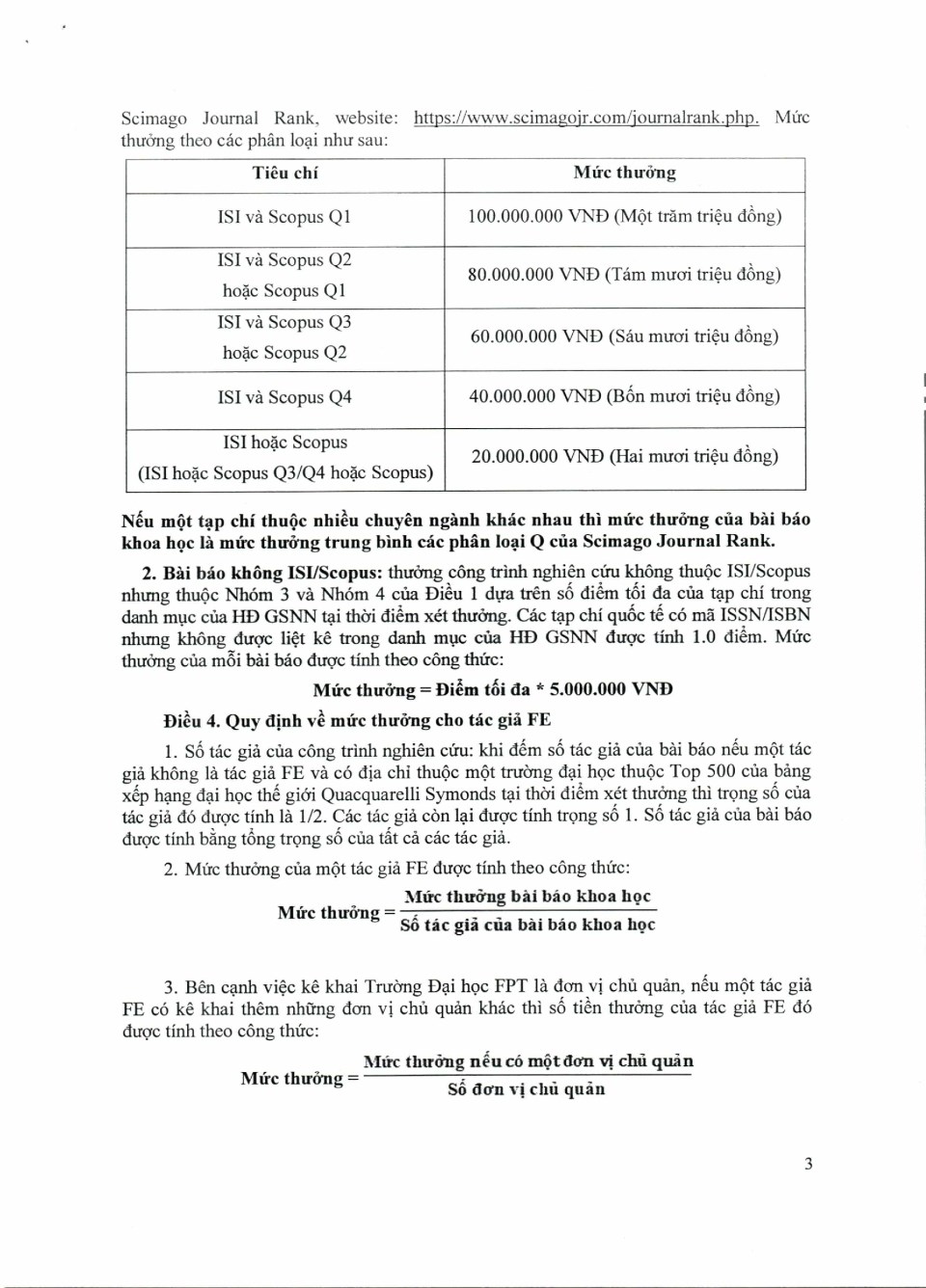 Quy định khen thưởng thành tích nghiên cứu khoa học của cán bộ, giảng viên, sinh viên Tổ chức Giáo dục FPT