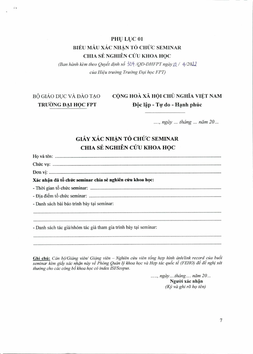 Chính sách hỗ trợ cán bộ, giảng viên và sinh viên Tổ chức Giáo dục FPT tham dự hội nghị, hội thảo khoa học