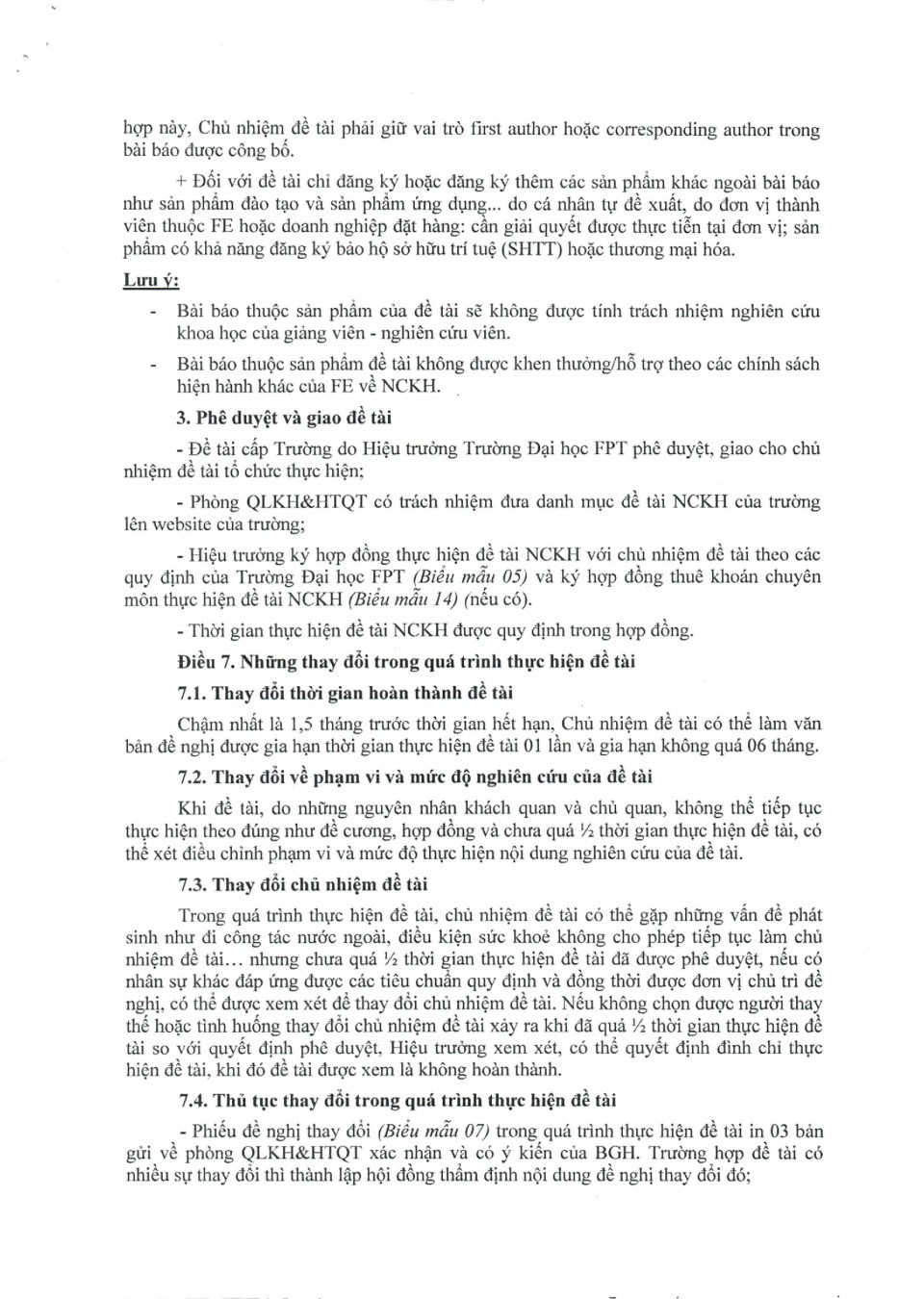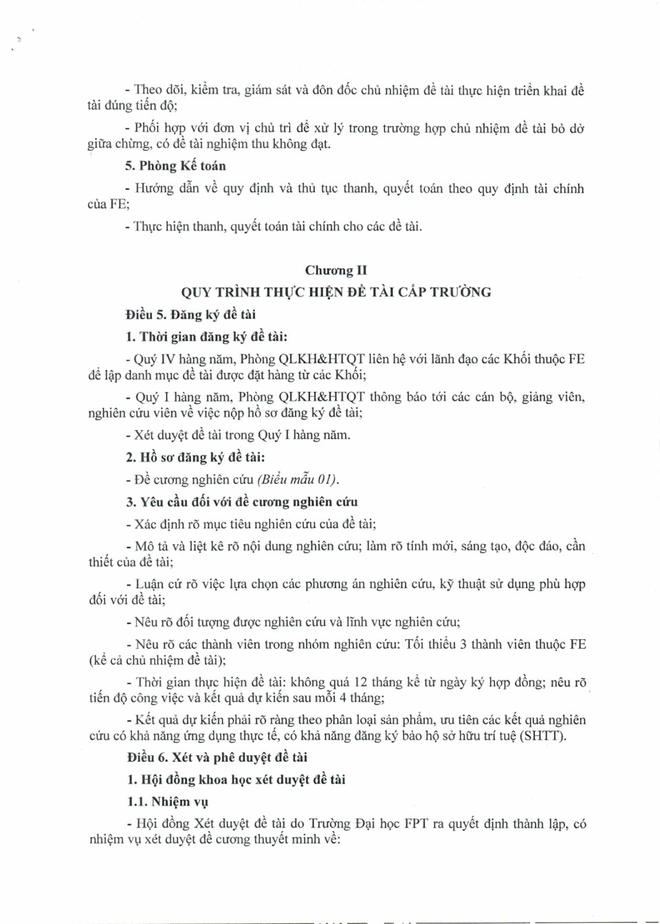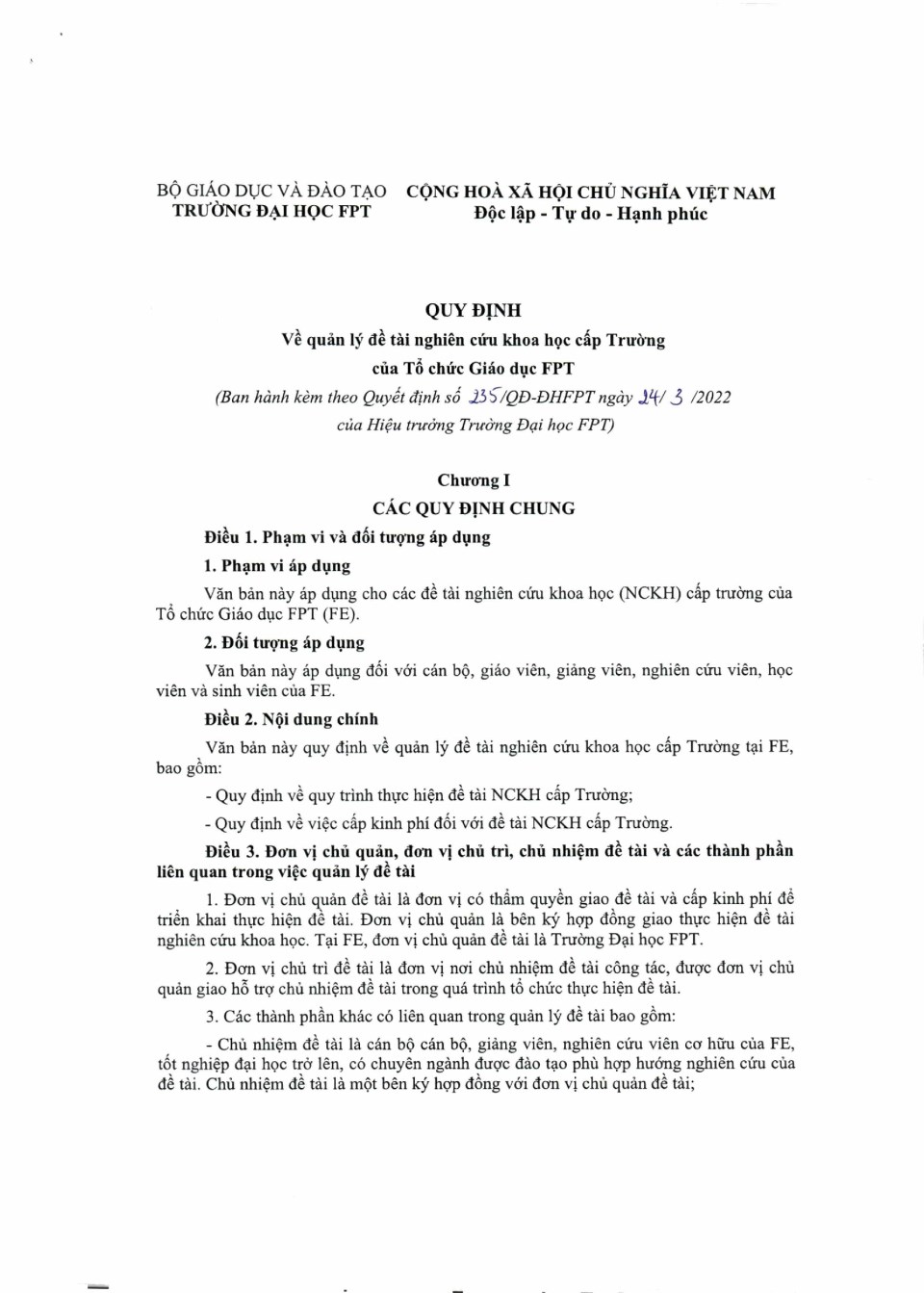 Quy định về quản lý đề tài nghiên cứu khoa học cấp Trường của Tổ chức Giáo dục FPT