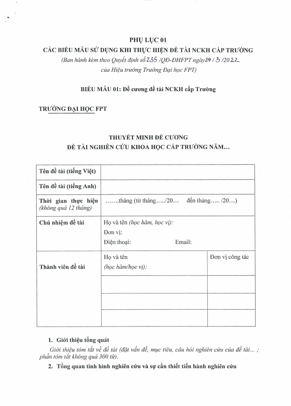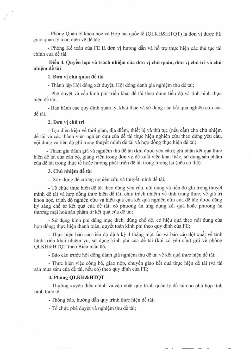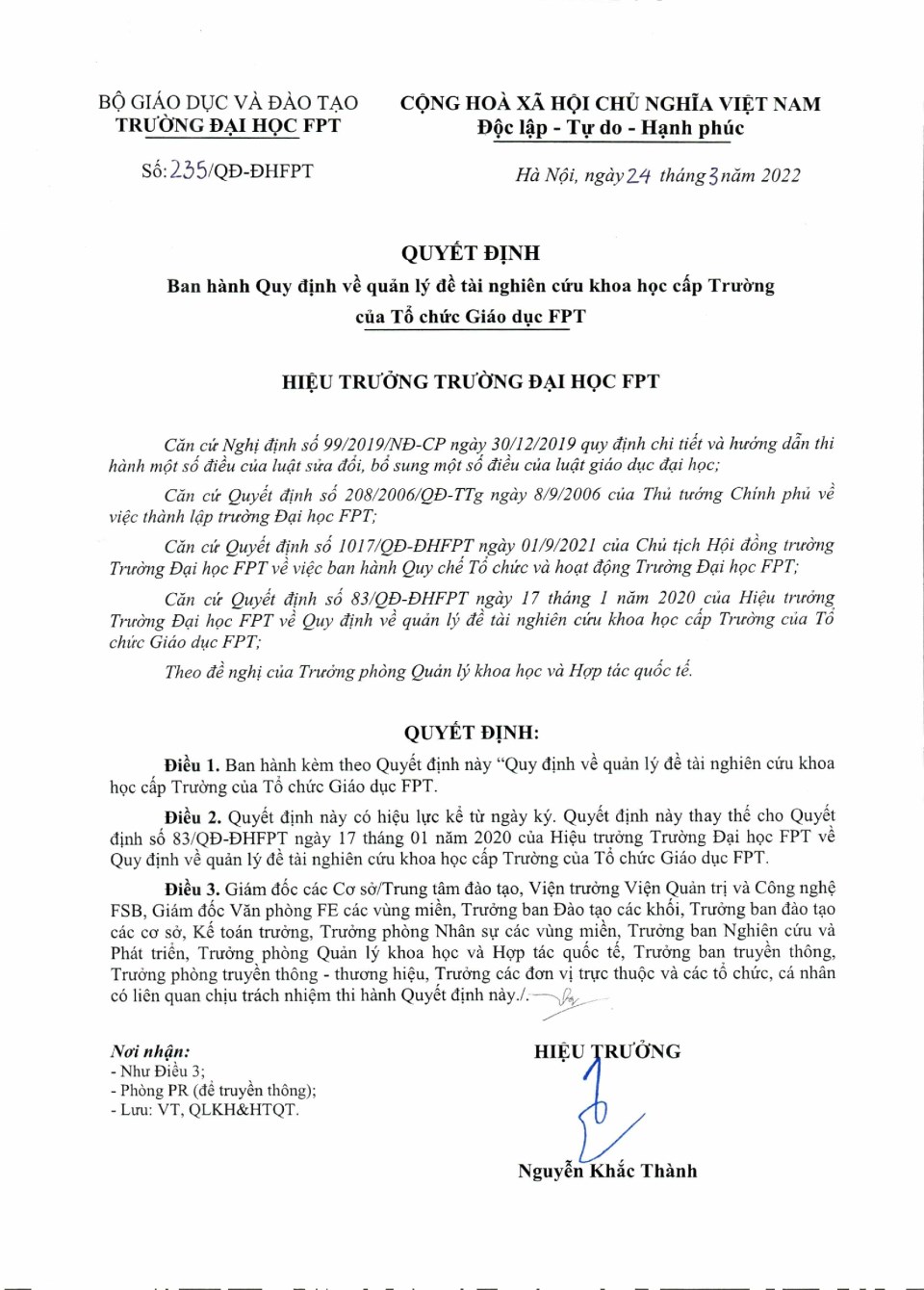 Quy định về quản lý đề tài nghiên cứu khoa học cấp Trường của Tổ chức Giáo dục FPT