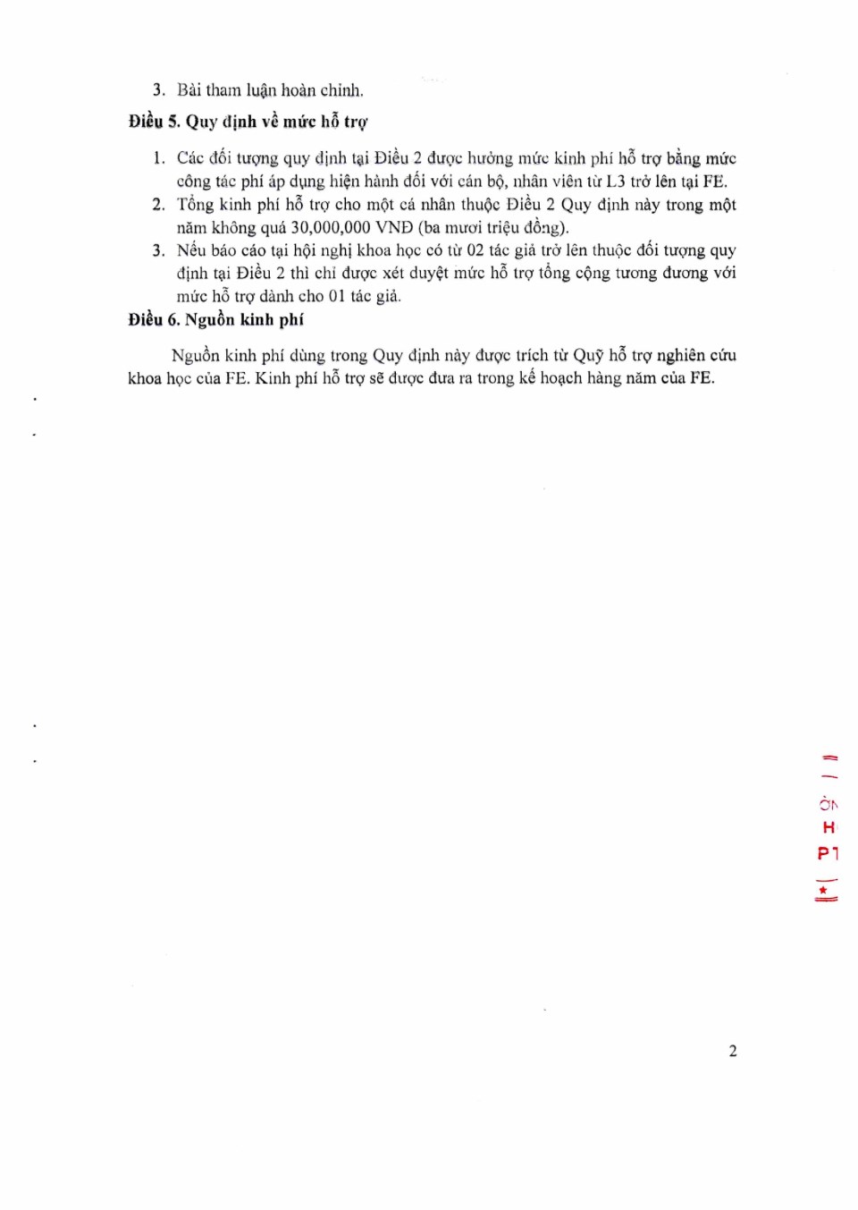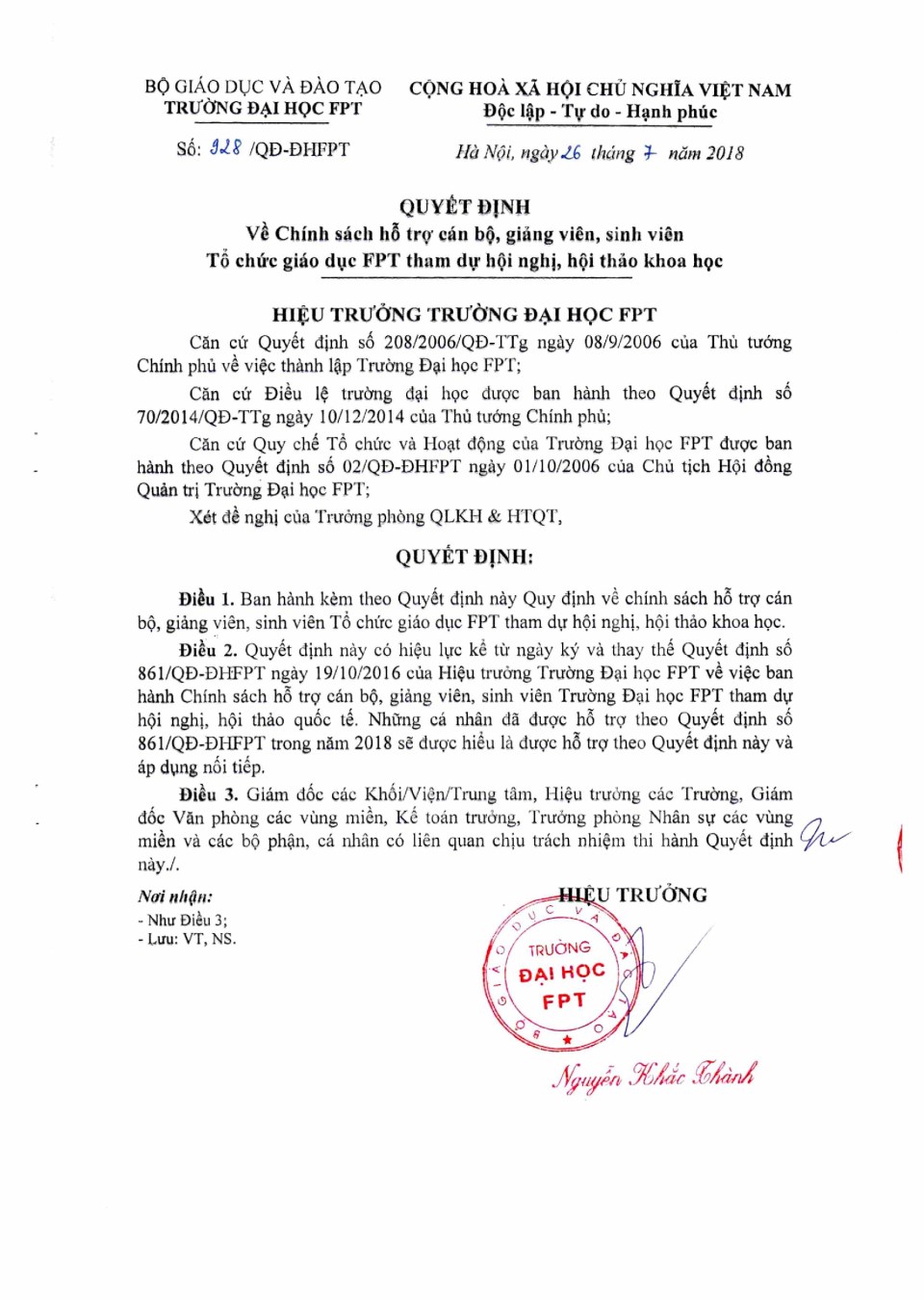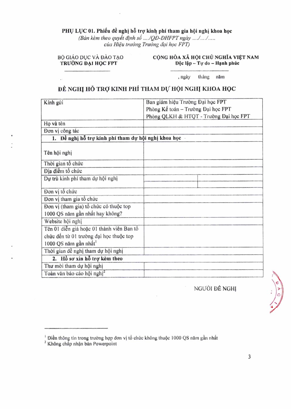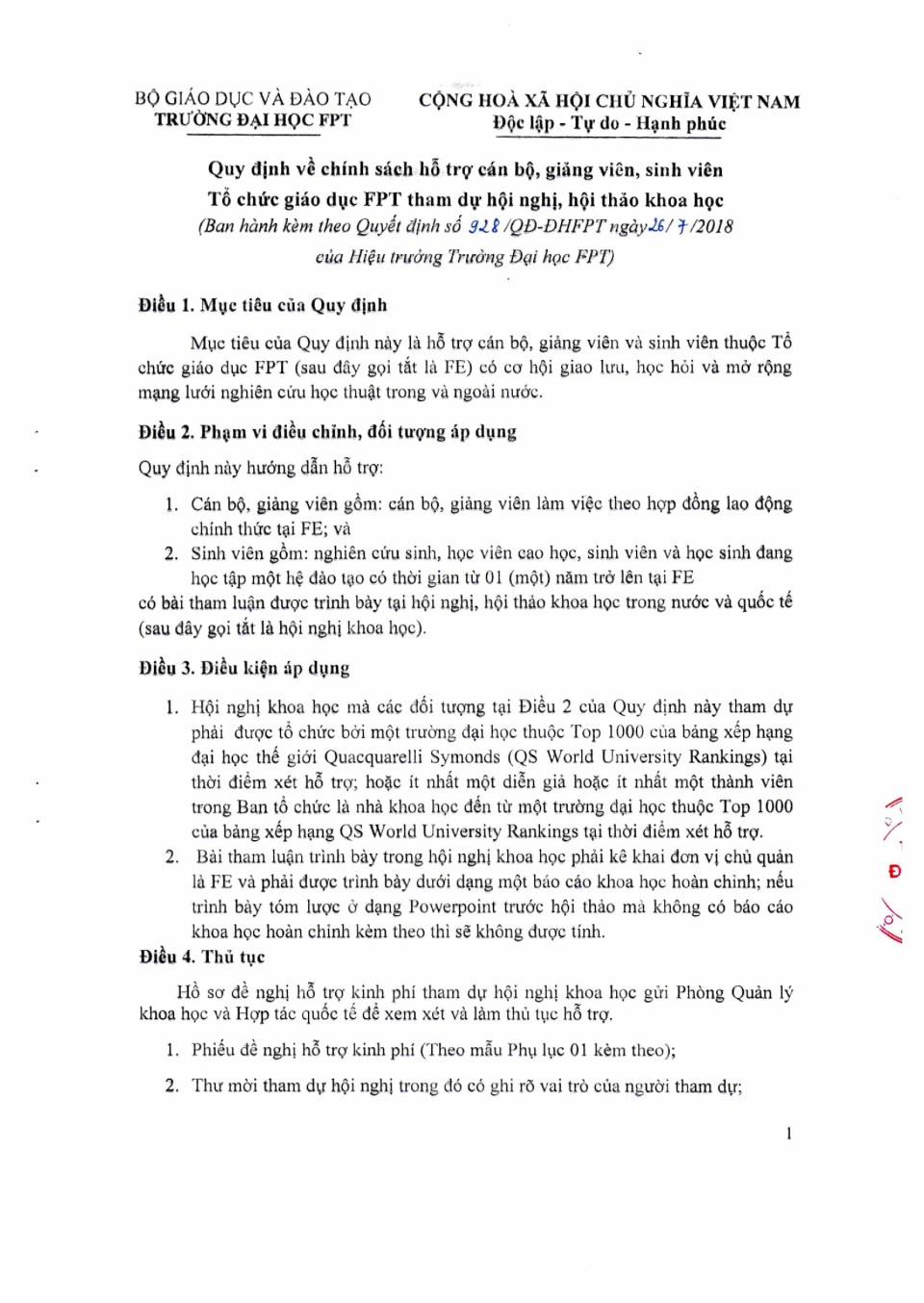 Chính sách hỗ trợ cán bộ, giảng viên và sinh viên Tổ chức Giáo dục FPT tham dự hội nghị, hội thảo khoa học