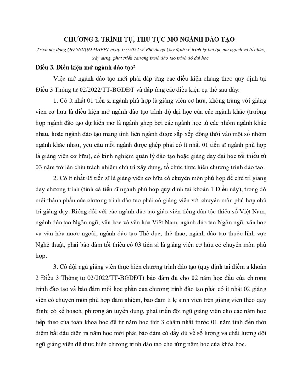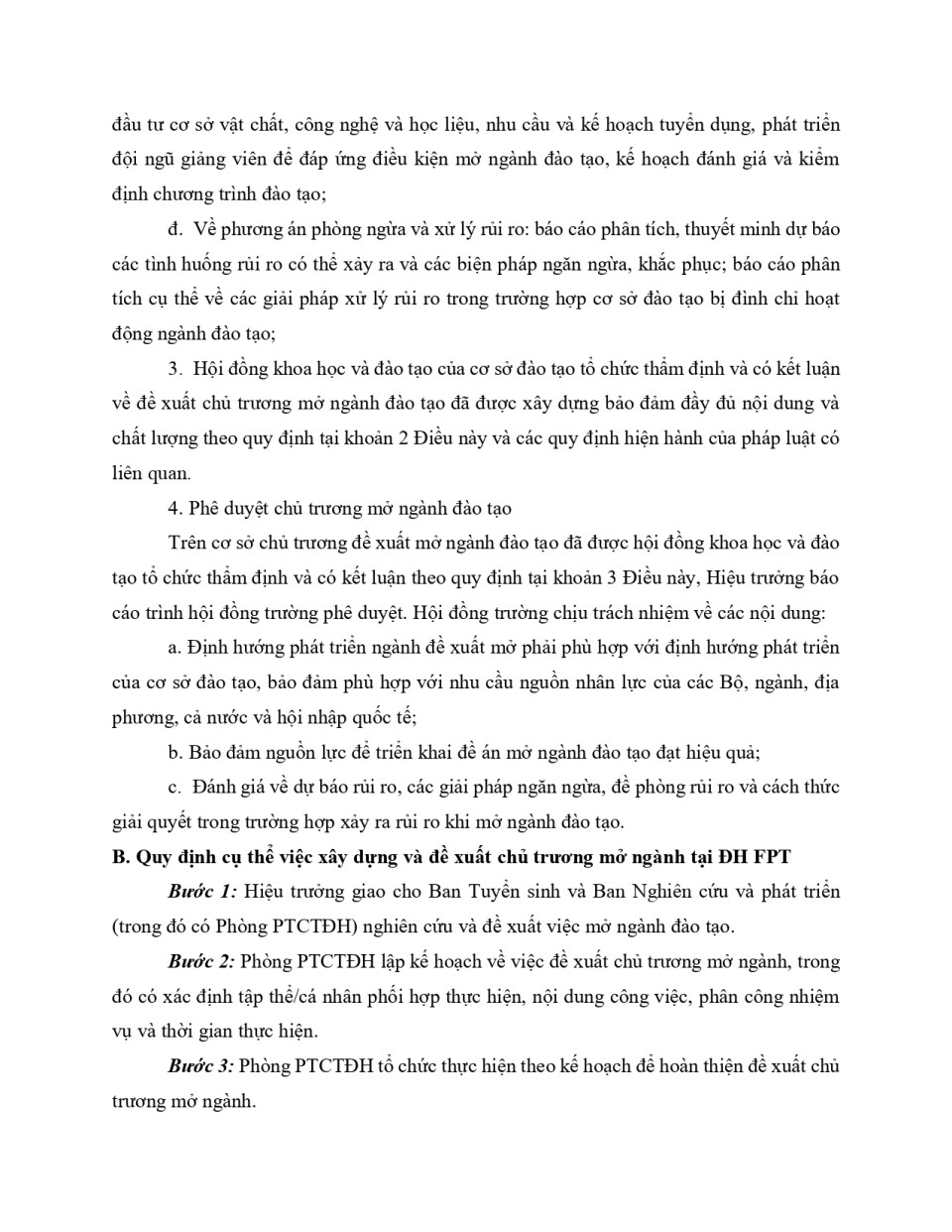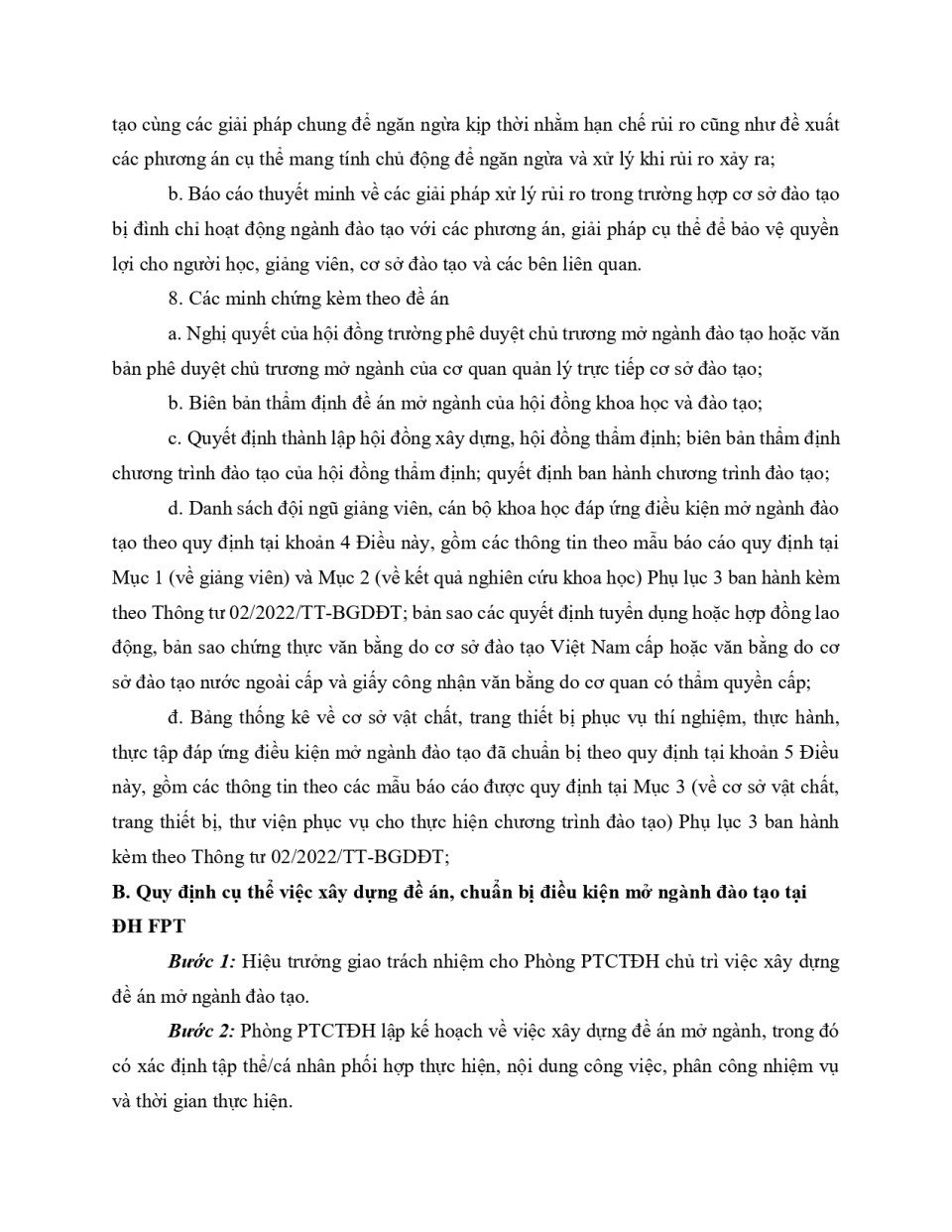 Công khai điều kiện trình tự thủ tục mở ngành Trường ĐH FPT