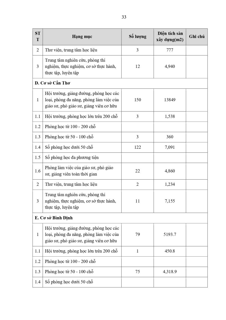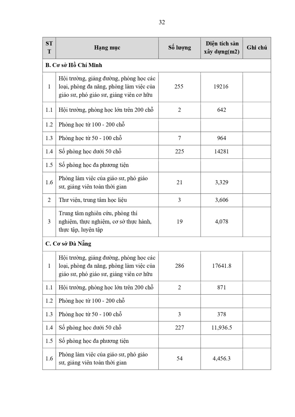 Công khai thông tin cơ sở vật chất của cơ sở giáo dục đại học năm học 2021 - 2022