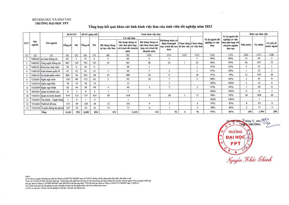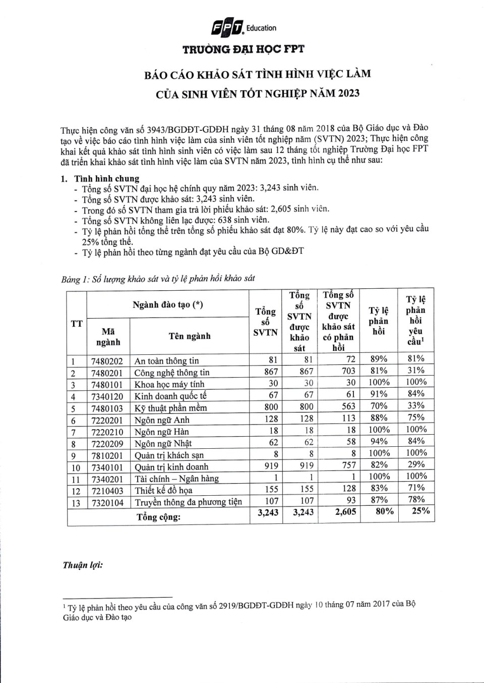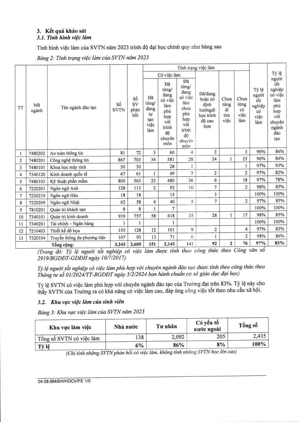 Báo cáo tình hình việc làm sinh viên tốt nghiệp năm 2023 (Báo cáo năm 2024)