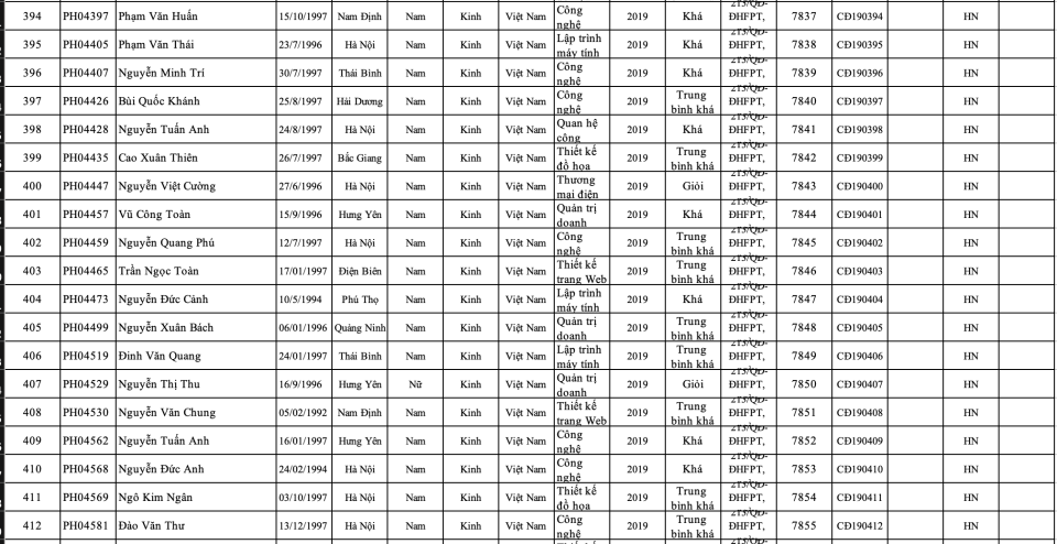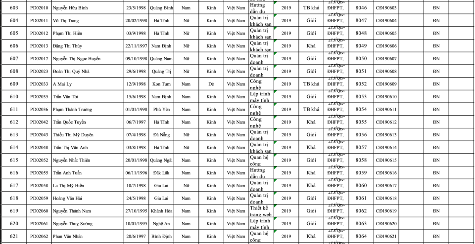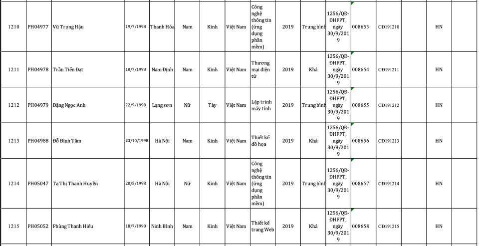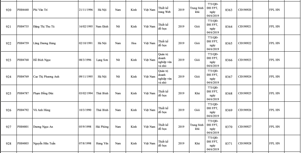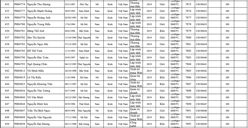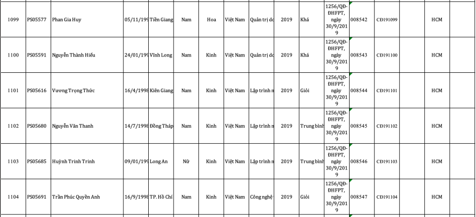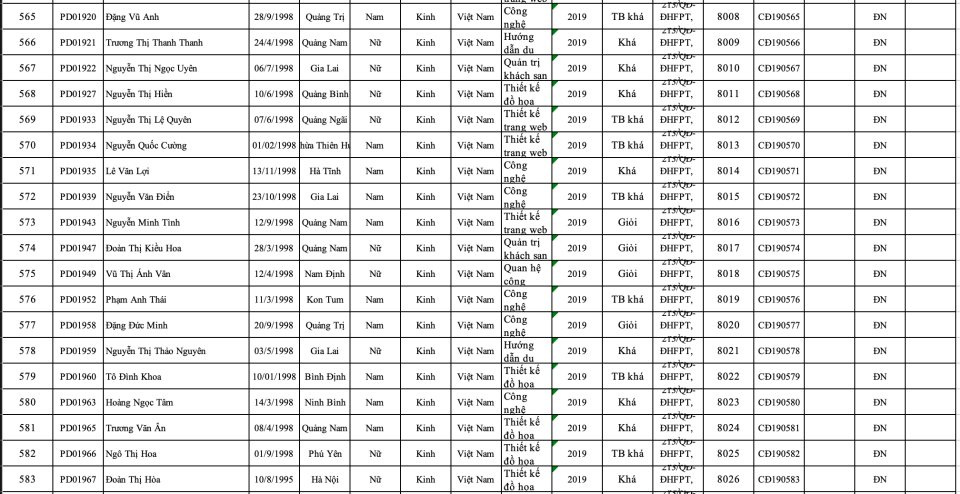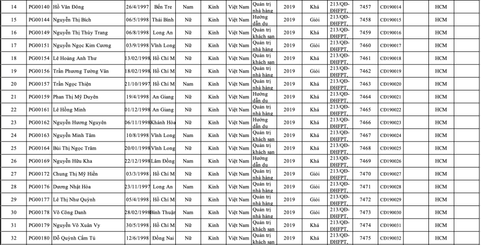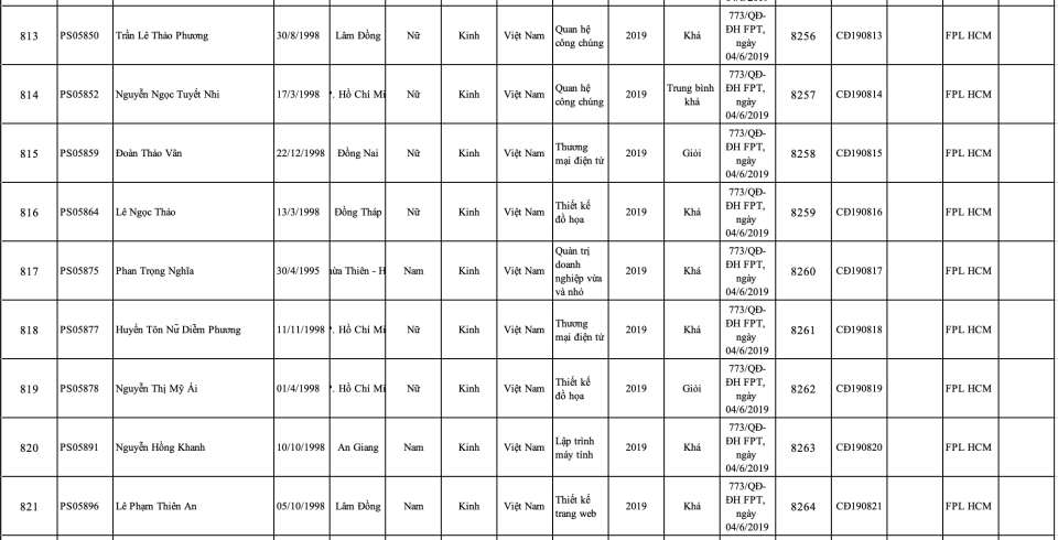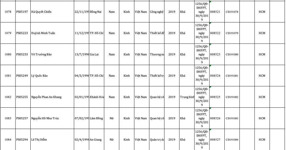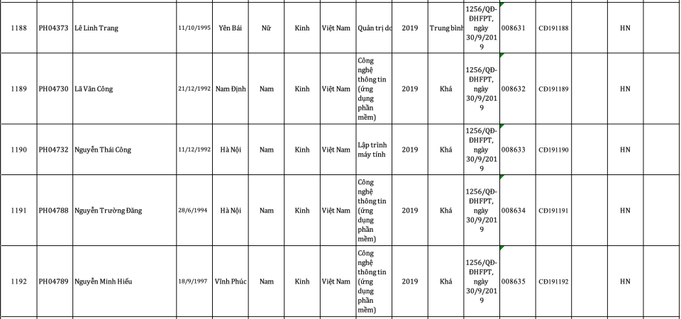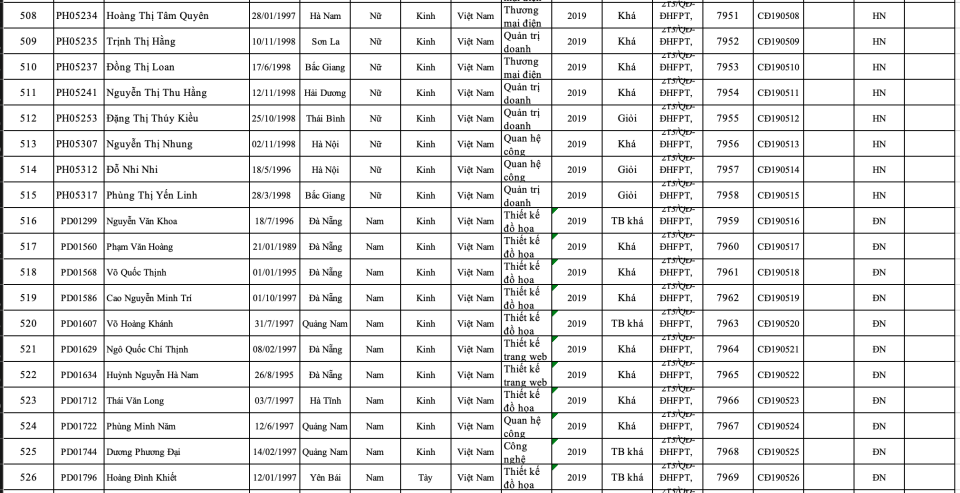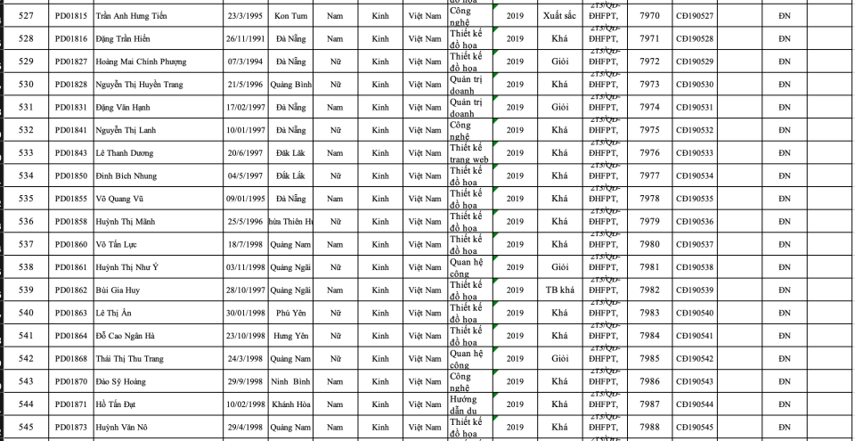 Công khai thông tin chất lượng đào tạo thực tế của cơ sở giáo dục đại học năm 2019 - 2020