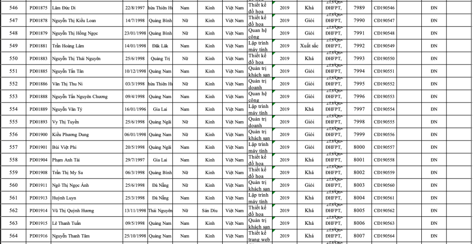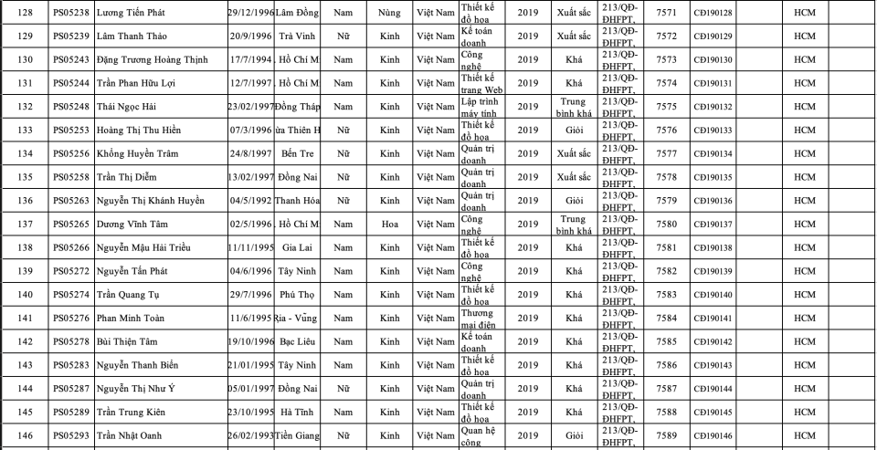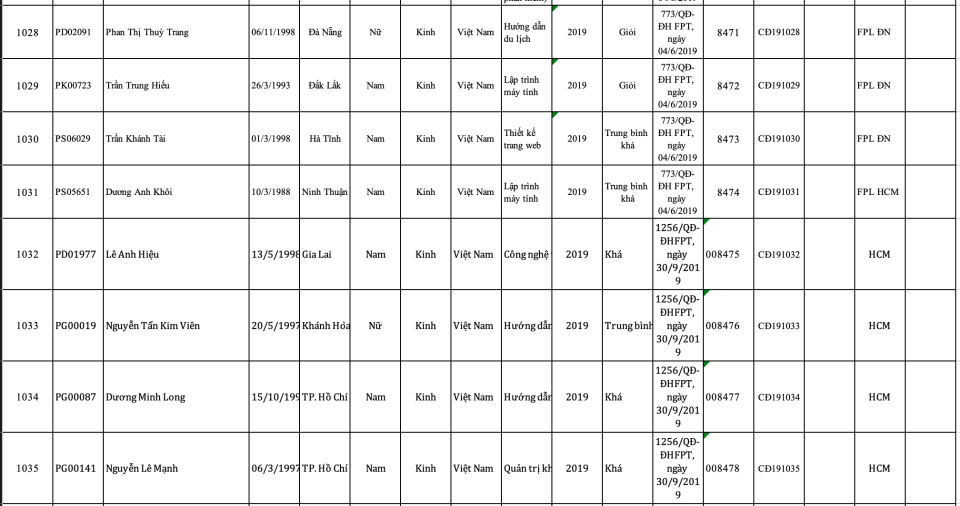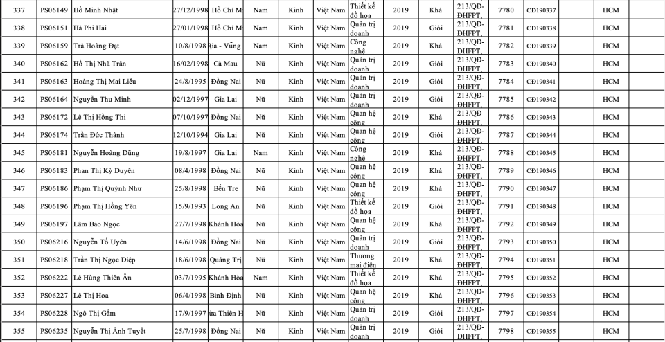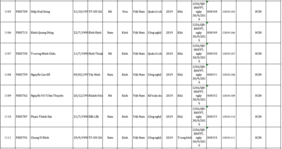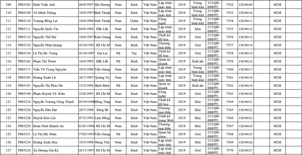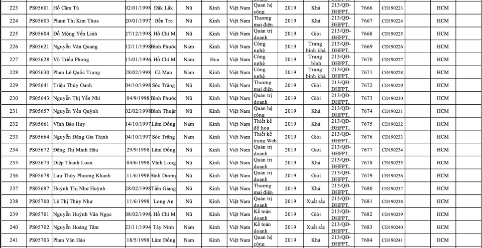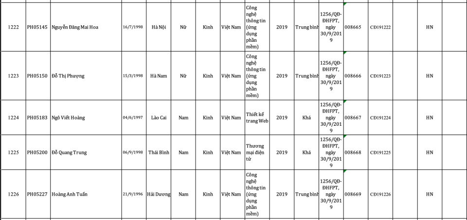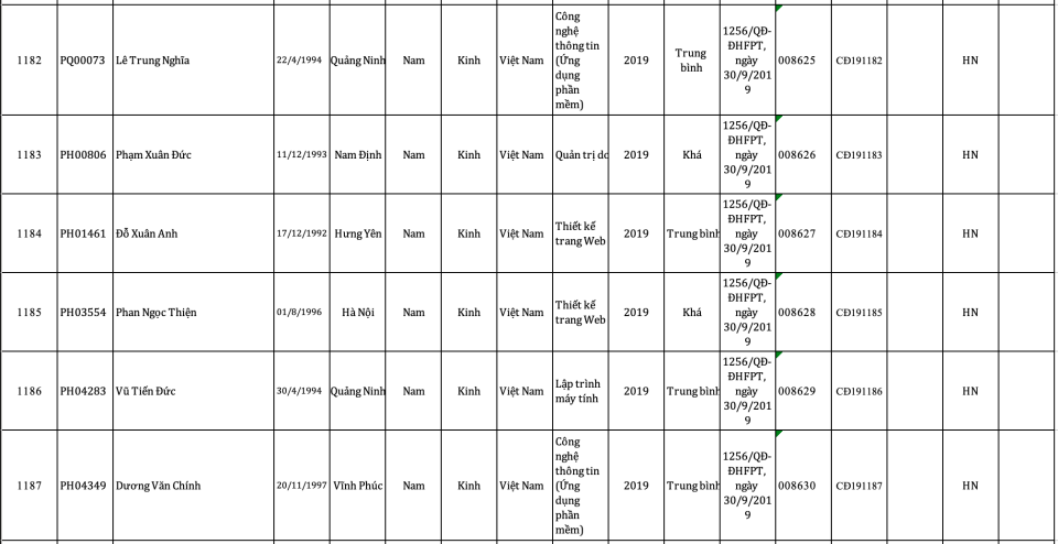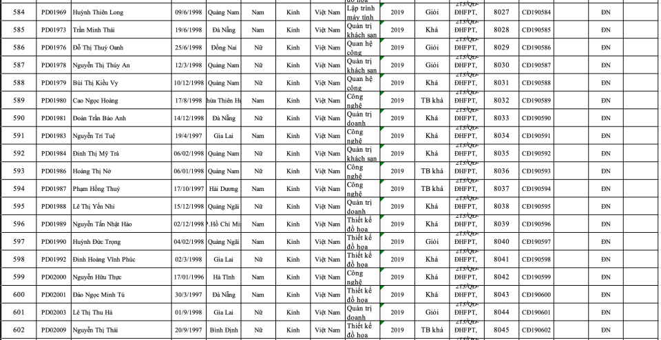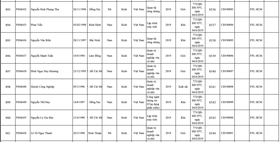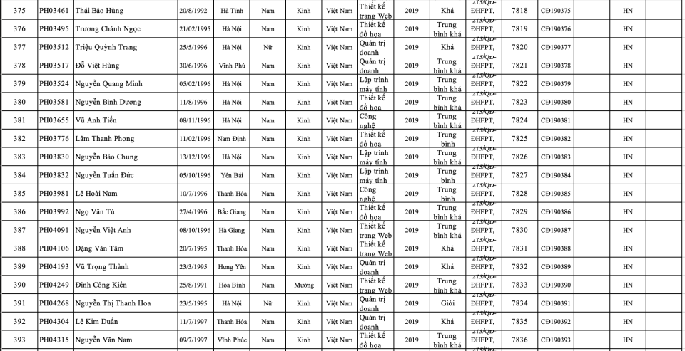 Công khai thông tin chất lượng đào tạo thực tế của cơ sở giáo dục đại học năm 2019 - 2020
