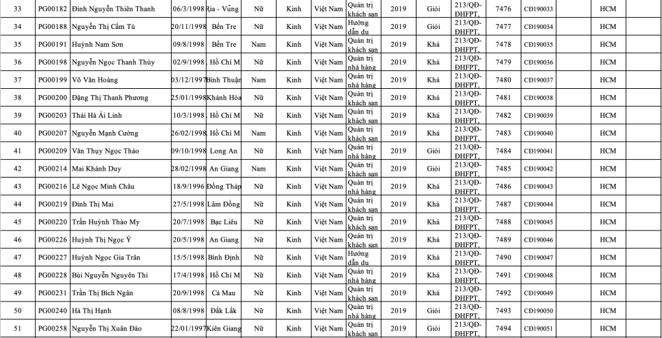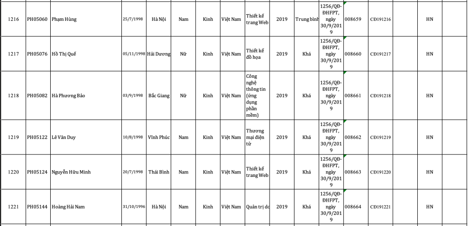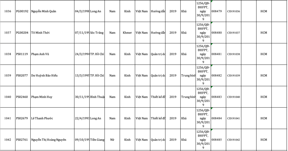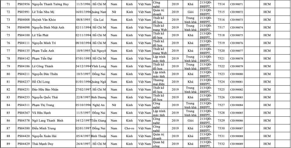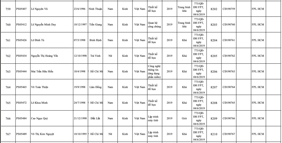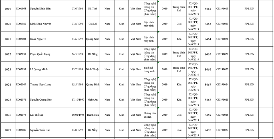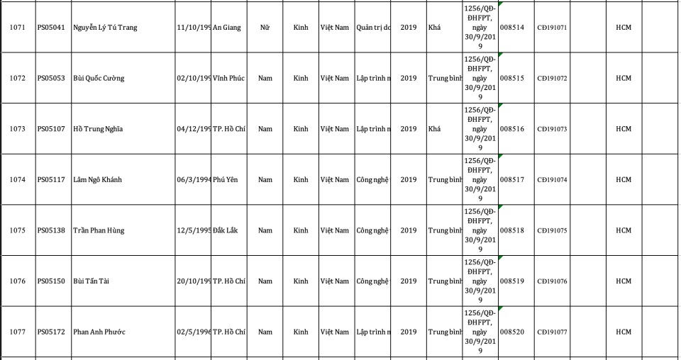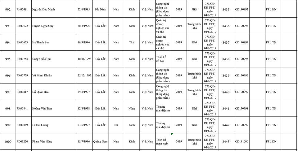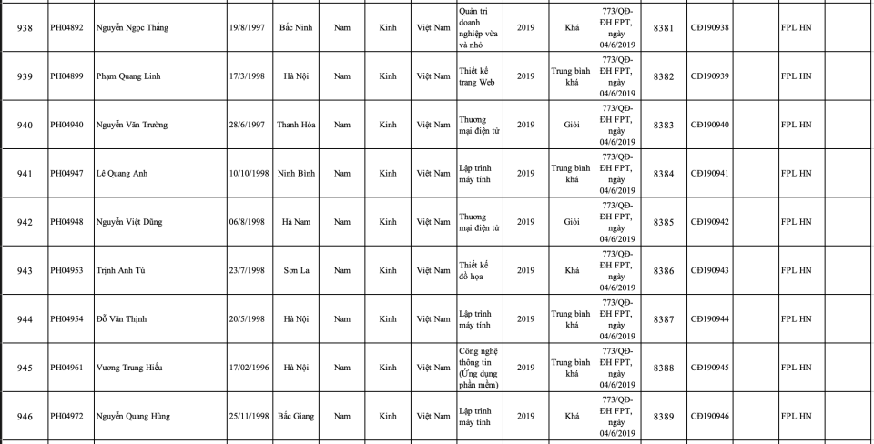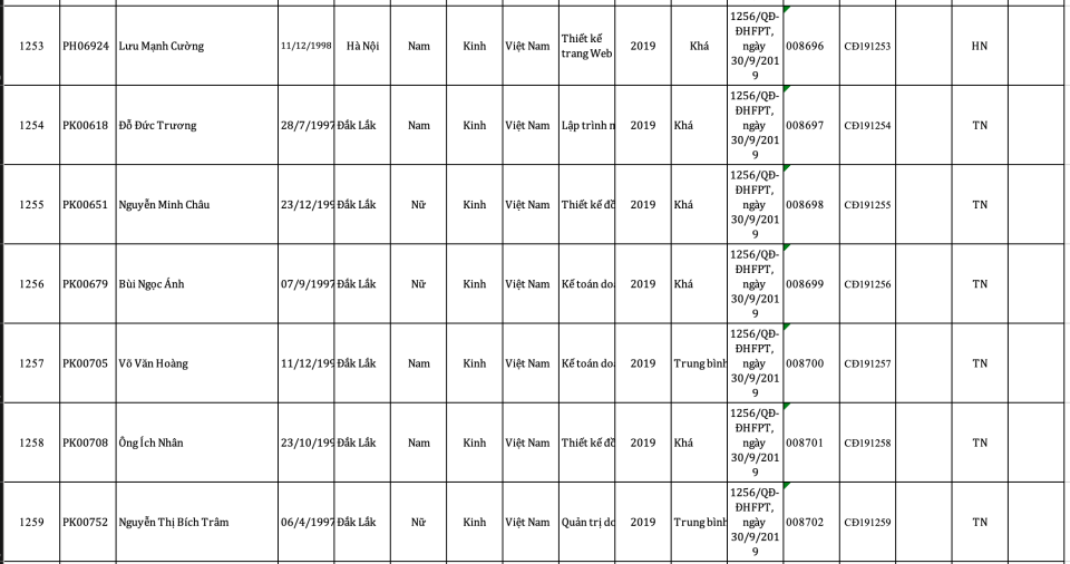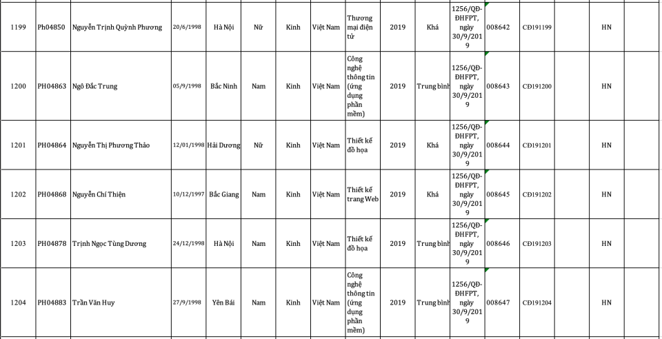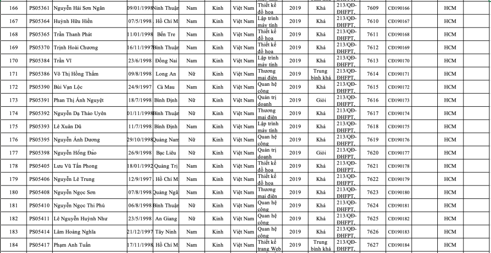 Công khai thông tin chất lượng đào tạo thực tế của cơ sở giáo dục đại học năm 2019 - 2020