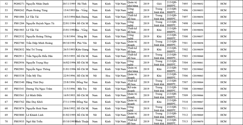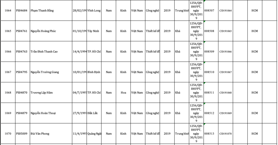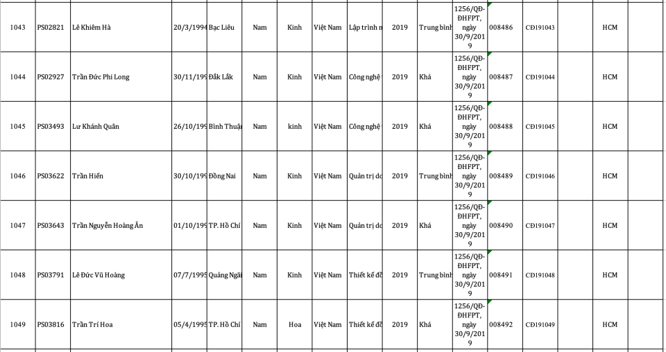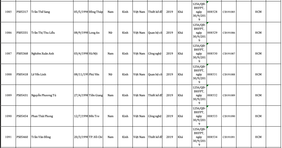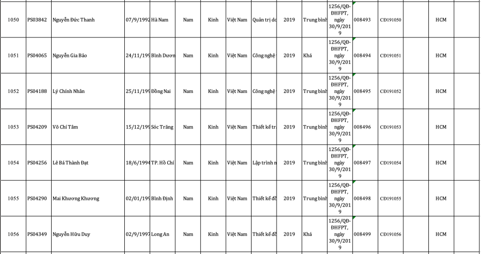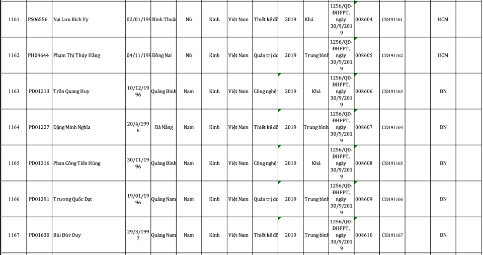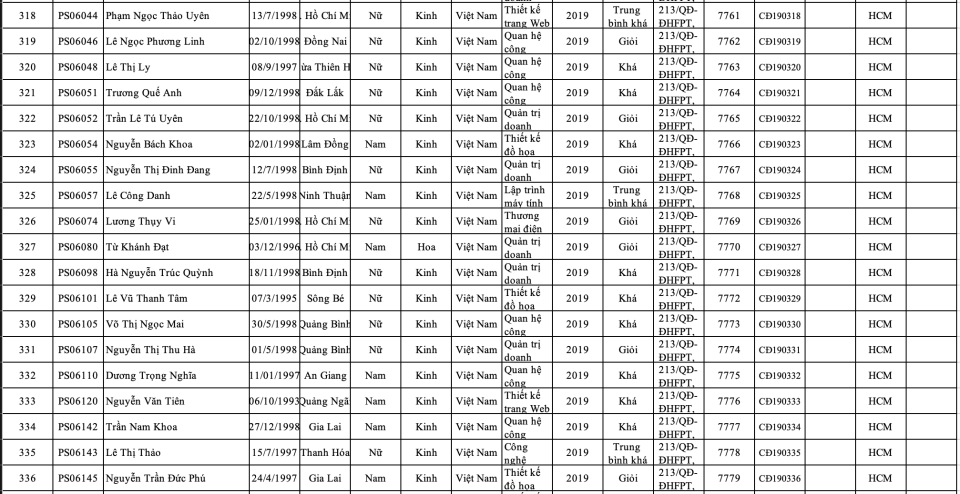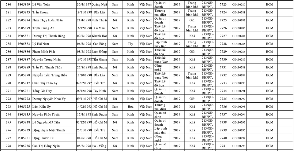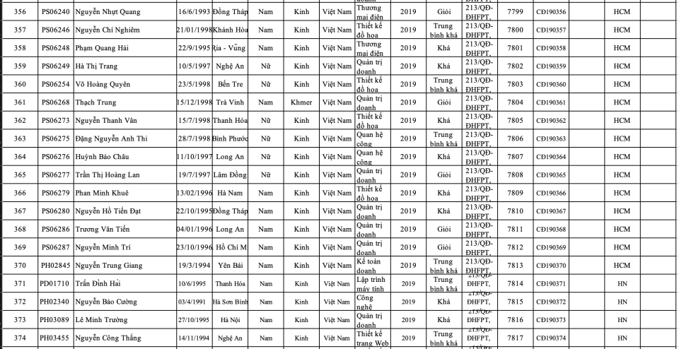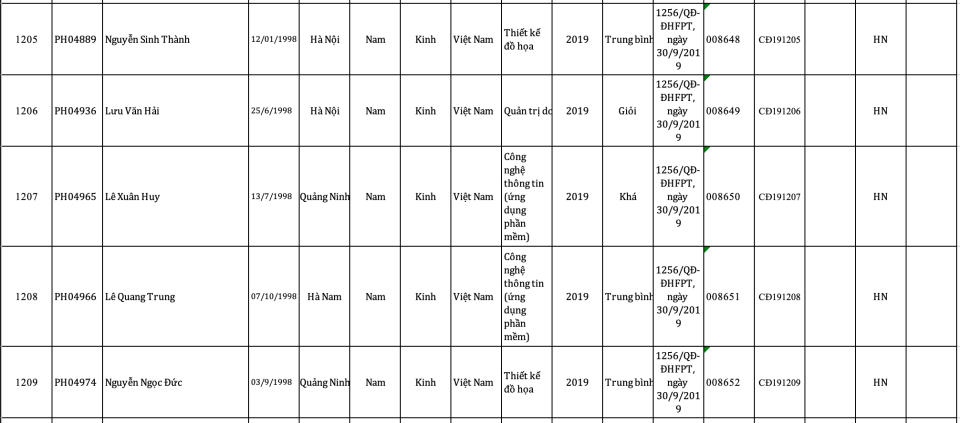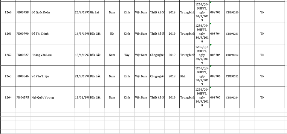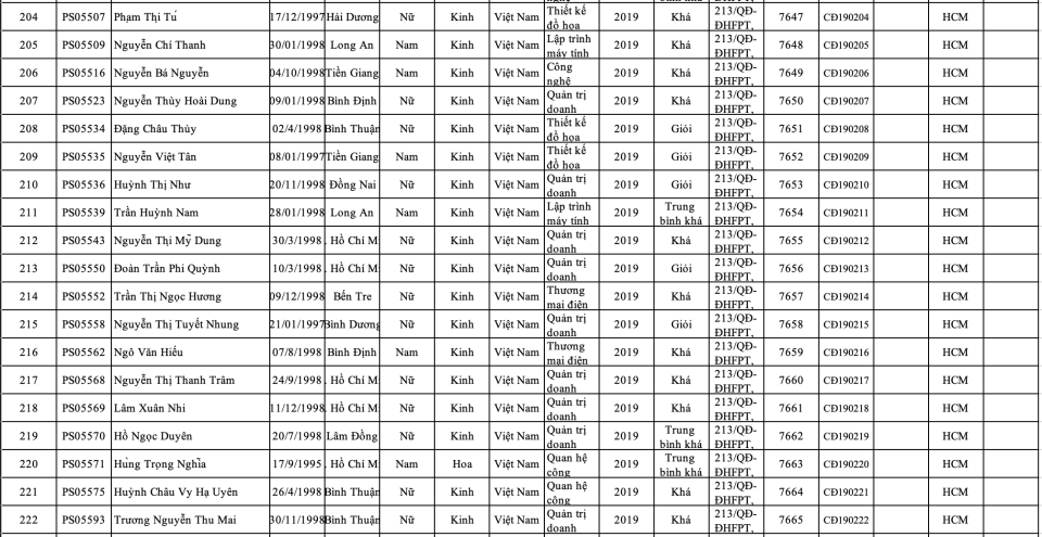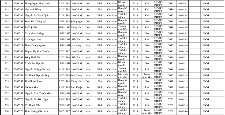 Công khai thông tin chất lượng đào tạo thực tế của cơ sở giáo dục đại học năm 2019 - 2020