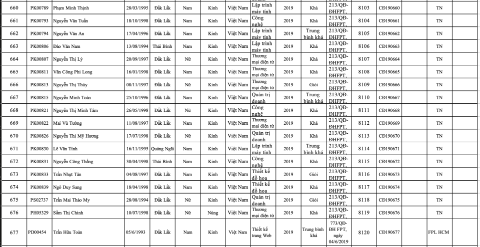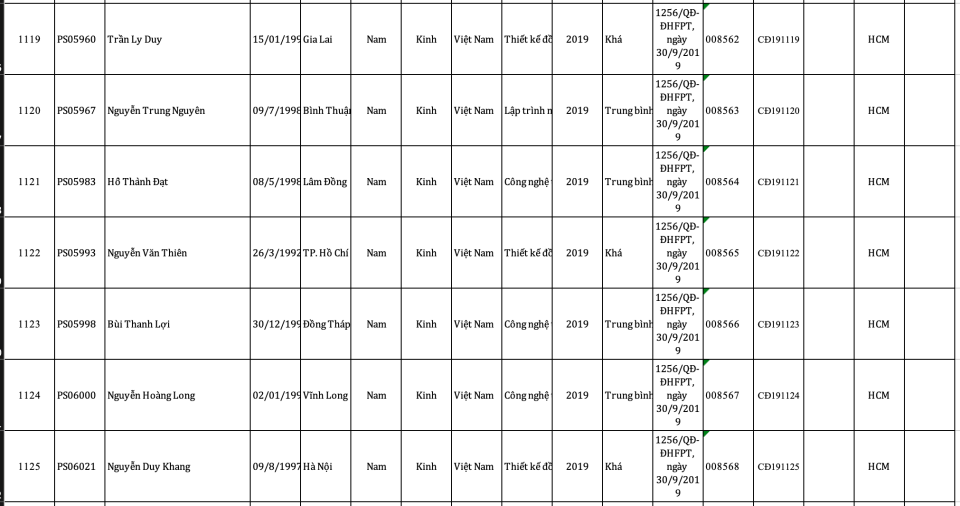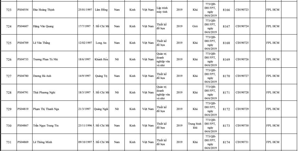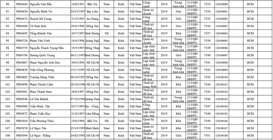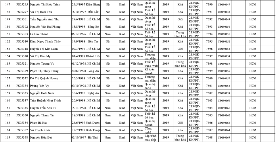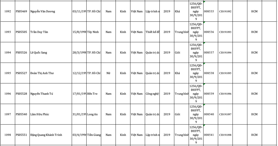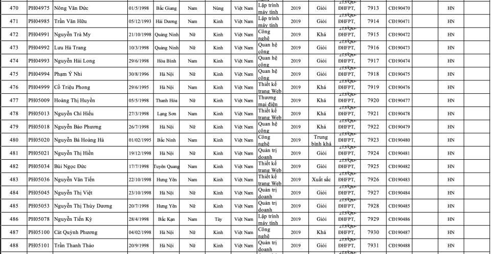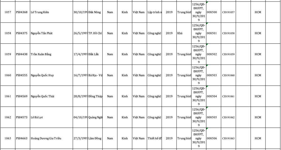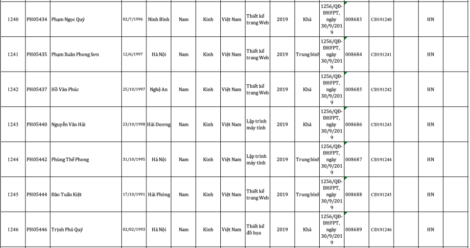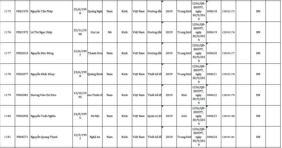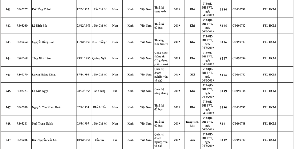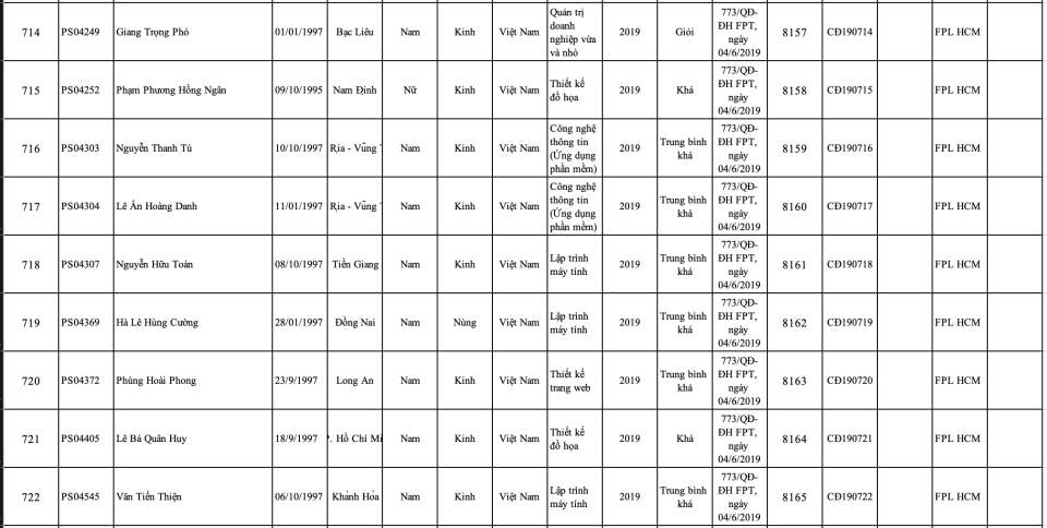 Công khai thông tin chất lượng đào tạo thực tế của cơ sở giáo dục đại học năm 2019 - 2020