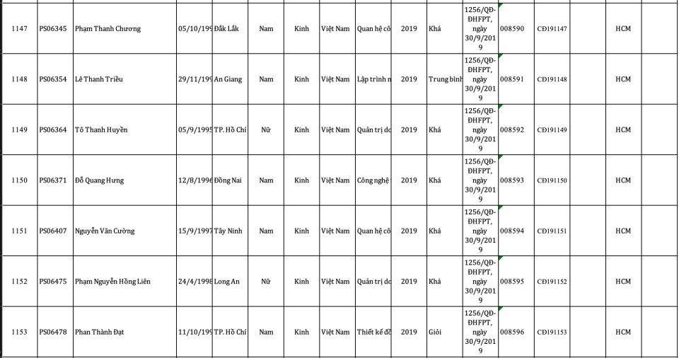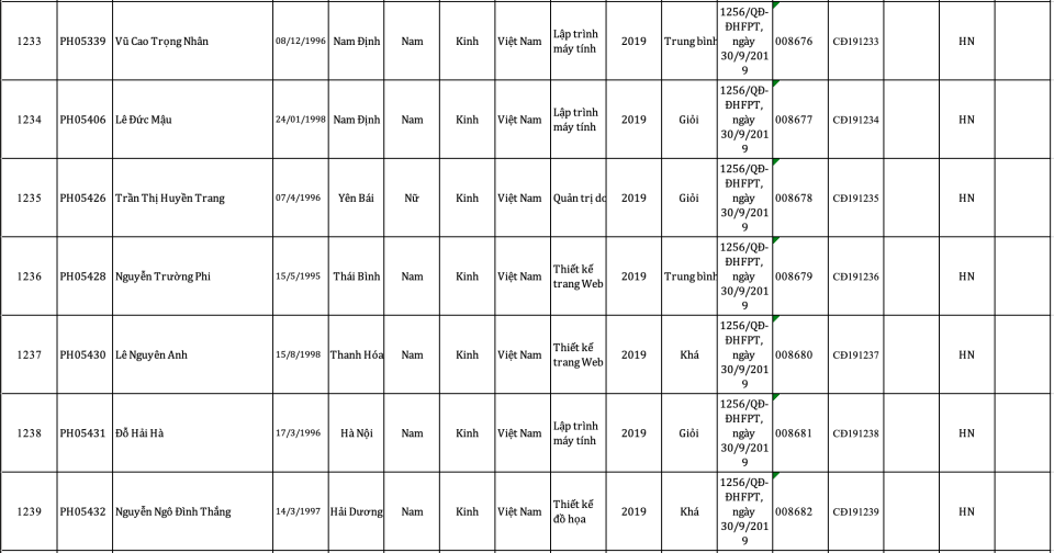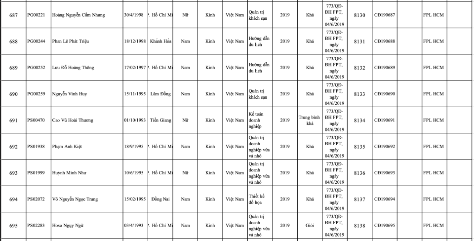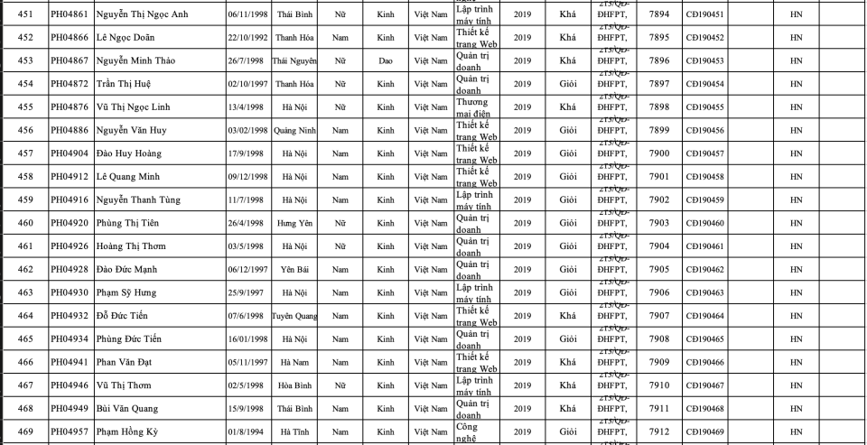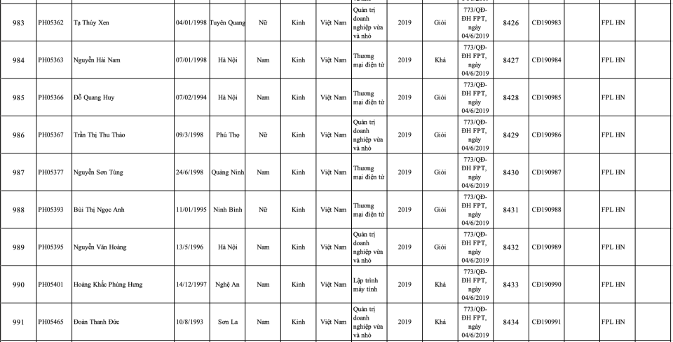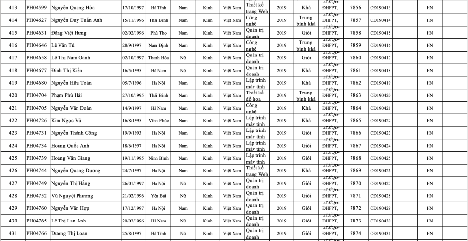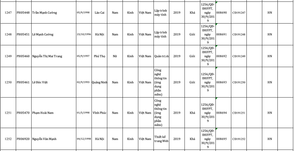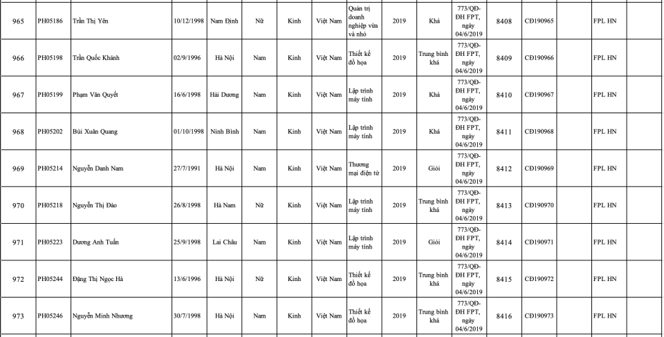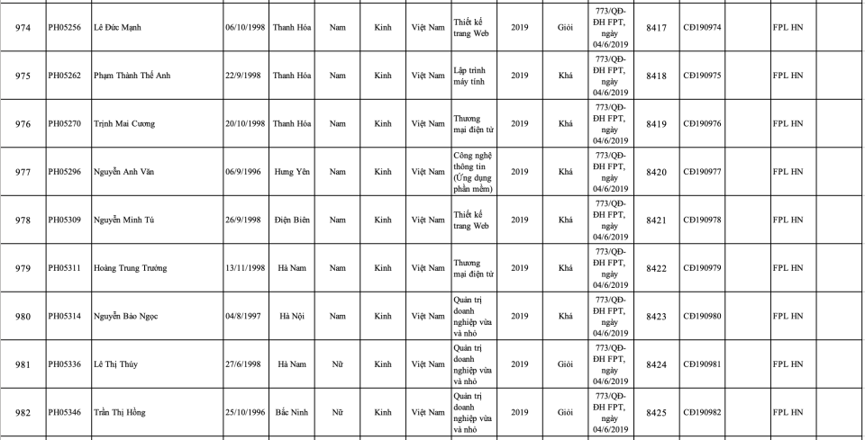 Công khai kết quả kiểm định chương trình đào tạo ngành Quản trị Kinh doanh, Trường ĐH FPT Hà Nội