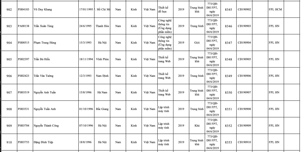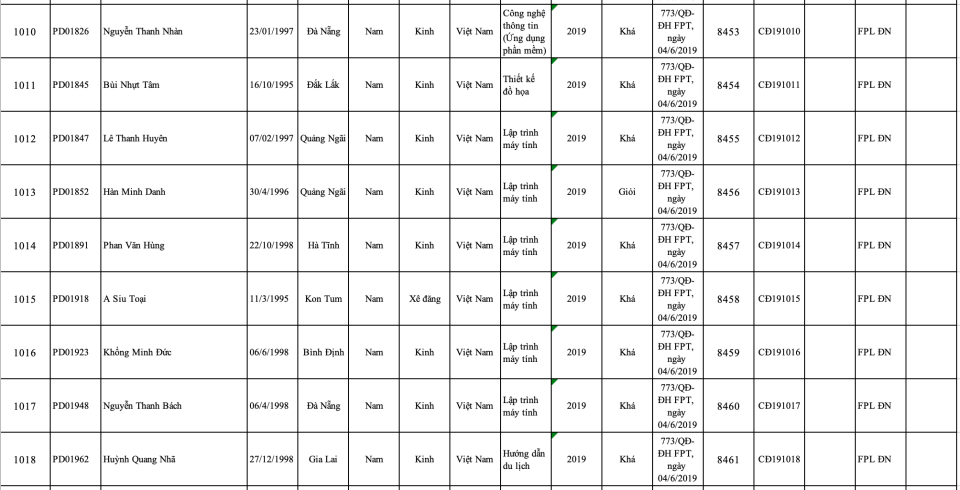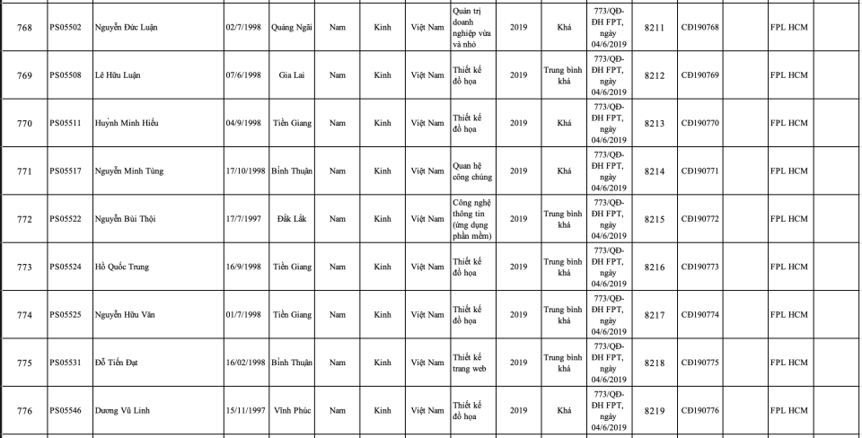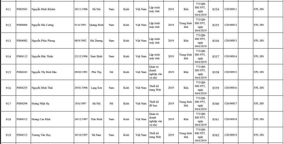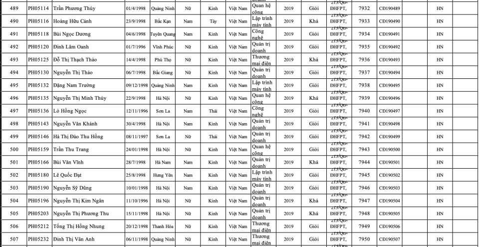 Công khai thông tin chất lượng đào tạo thực tế của cơ sở giáo dục đại học năm học 2017-2018