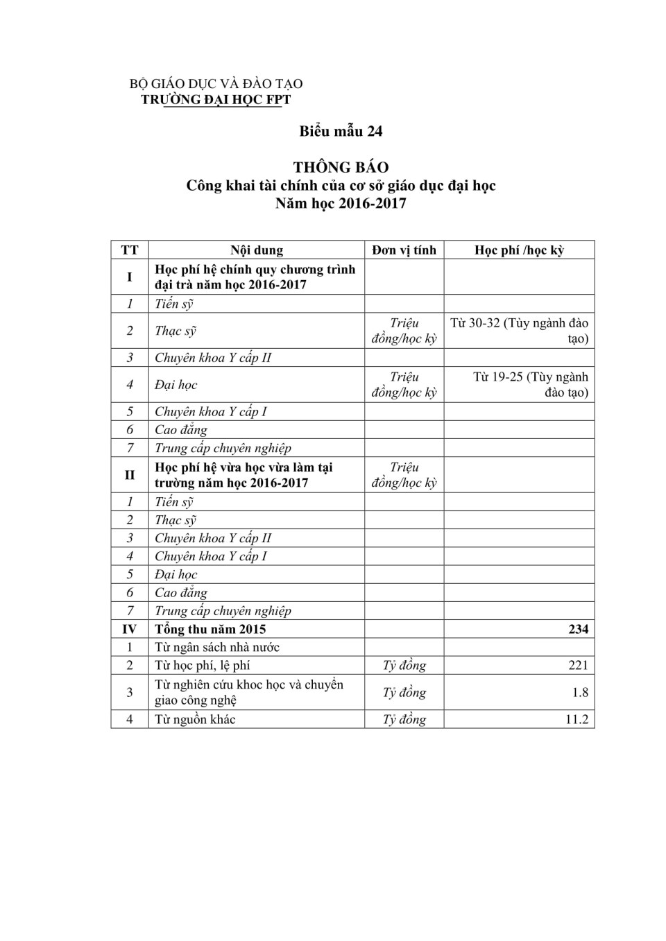 Biểu 24 - Công khai tài chính - năm học 2016-2017