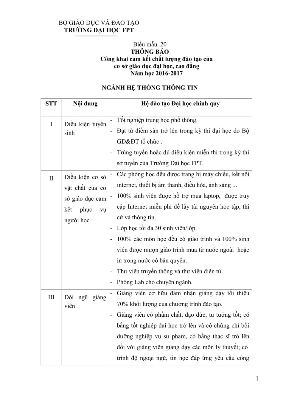 Biểu 20 - Công khai chất lượng đào tạo Đại học - ngành Hệ thống thông tin năm học 2016-2017