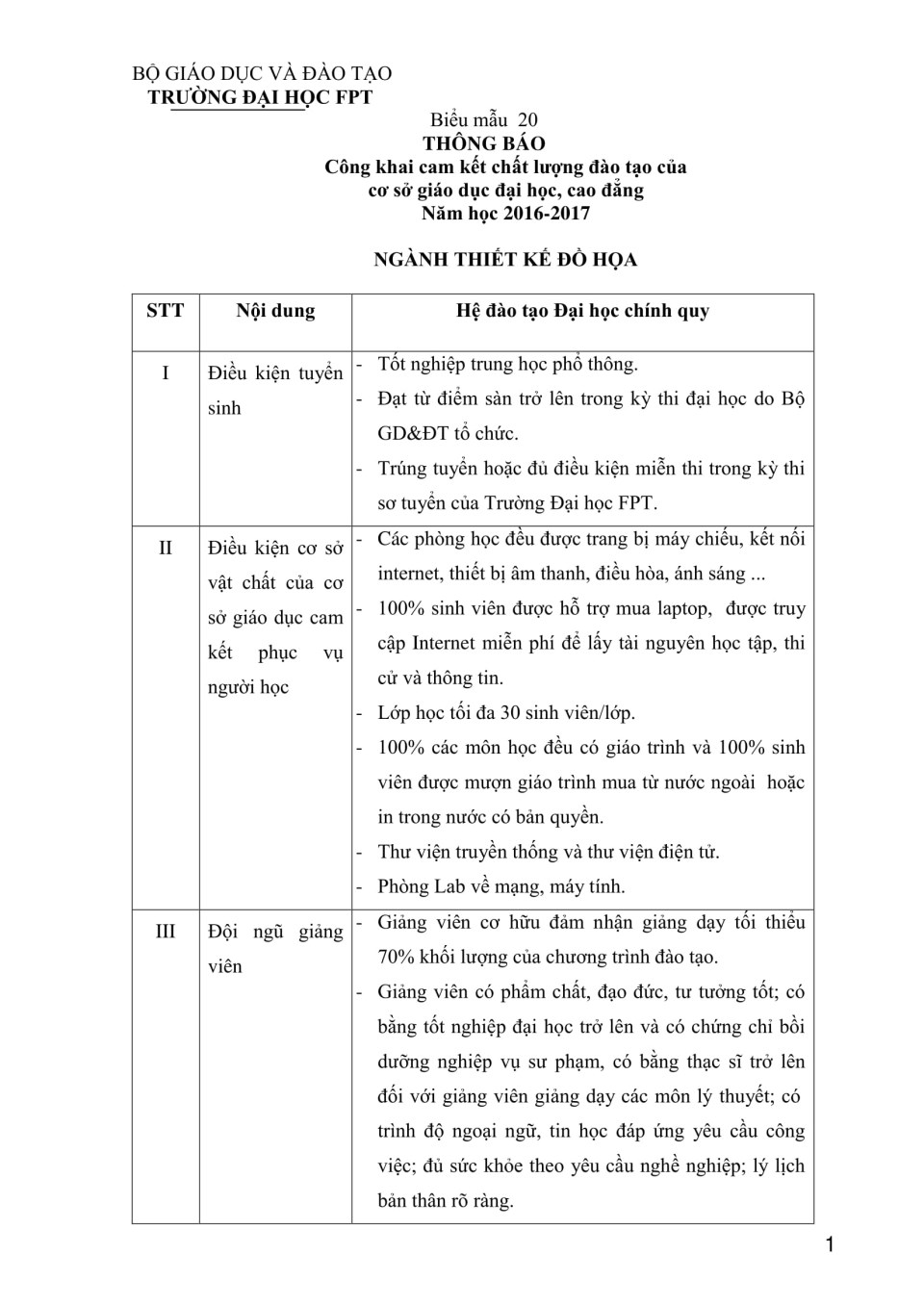 Biểu 20 - Công khai chất lượng đào tạo Đại học - ngành Thiết kế đồ họa năm học 2016-2017