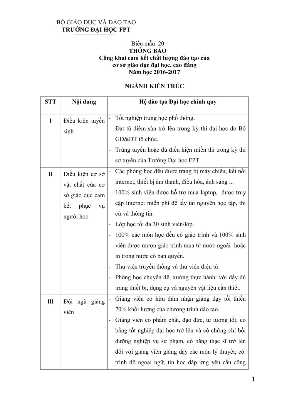 Biểu 20 - Công khai chất lượng đào tạo Đại học - ngành Kiến trúc năm học 2016-2017