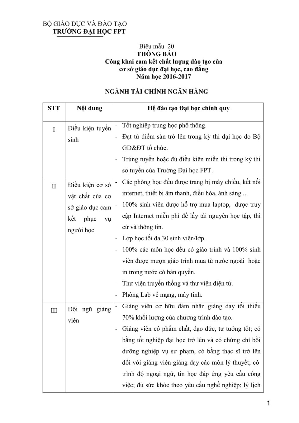Biểu 20 - Công khai chất lượng đào tạo Đại học - ngành Tài chính ngân hàng năm học 2016-2017