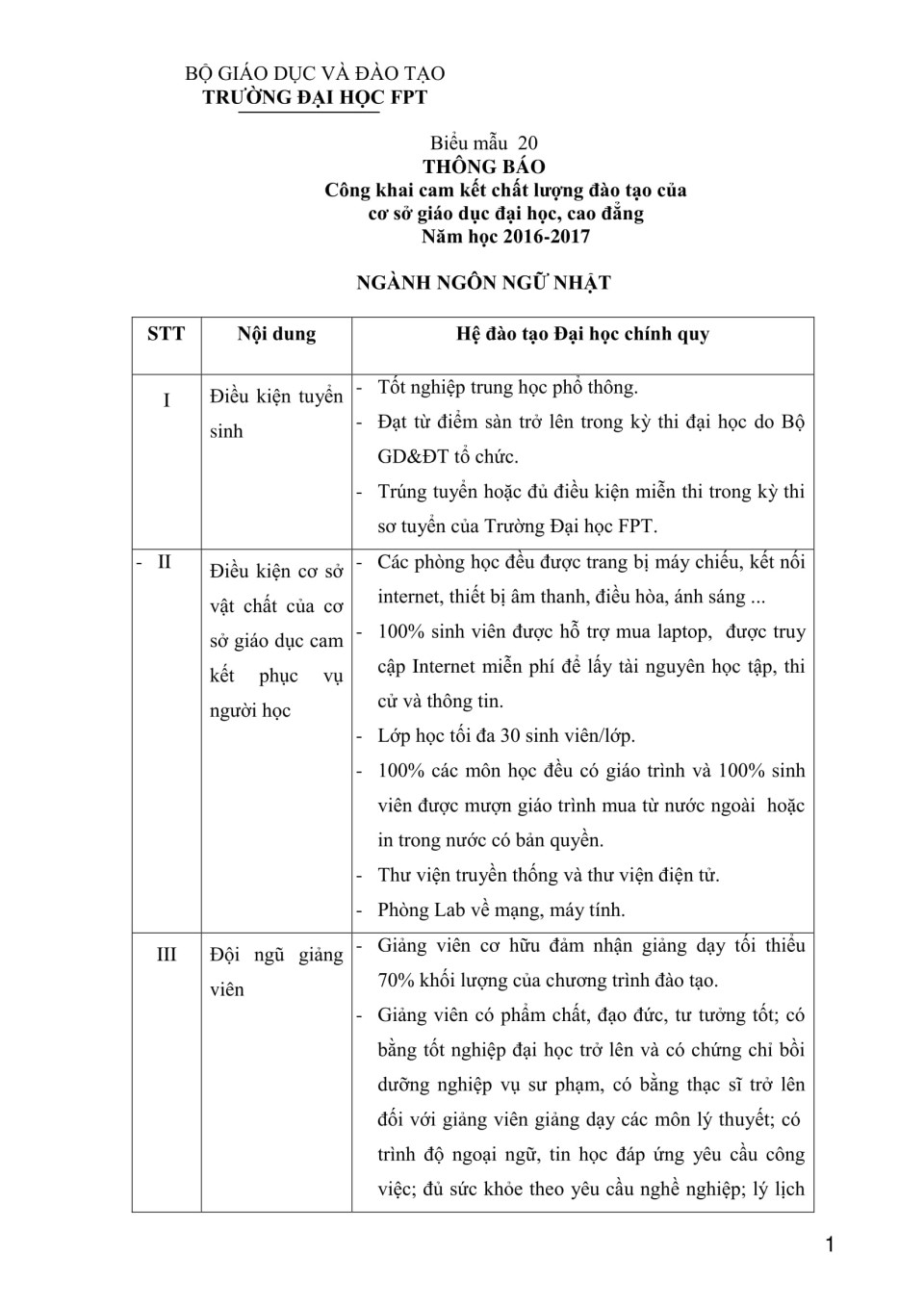 Biểu 20 - Công khai chất lượng đào tạo Đại học - ngành Ngôn ngữ Nhật năm học 2016-2017