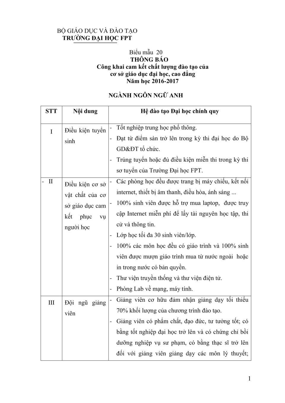 Biểu 20 - Công khai chất lượng đào tạo Đại học - ngành Ngôn ngữ Anh năm học 2016-2017