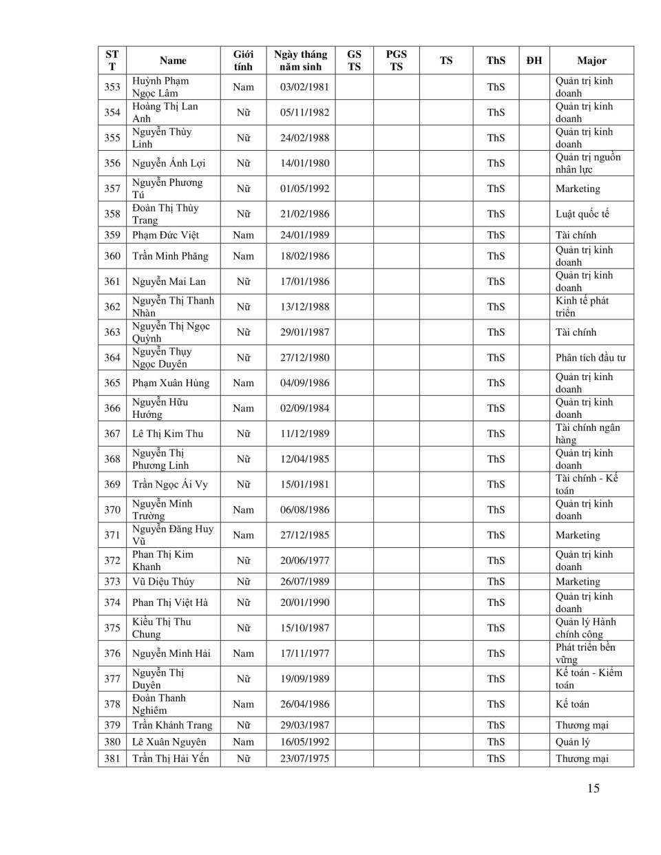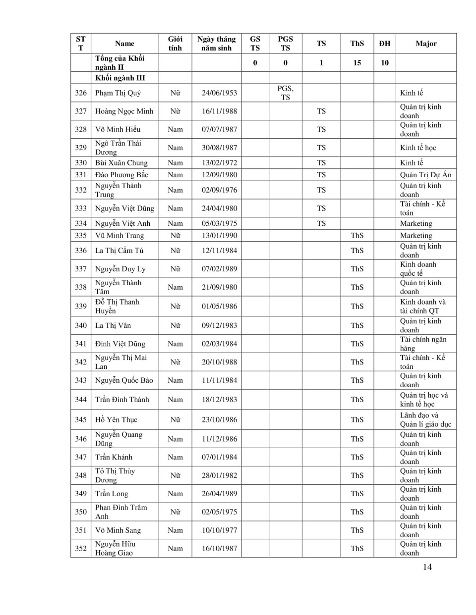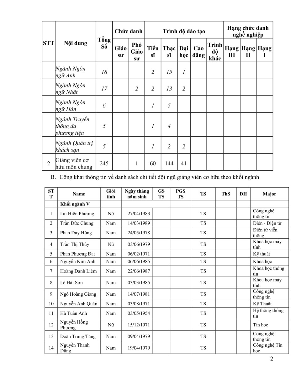 Công khai giảng viên cơ hữu năm học 2014 - 2015
