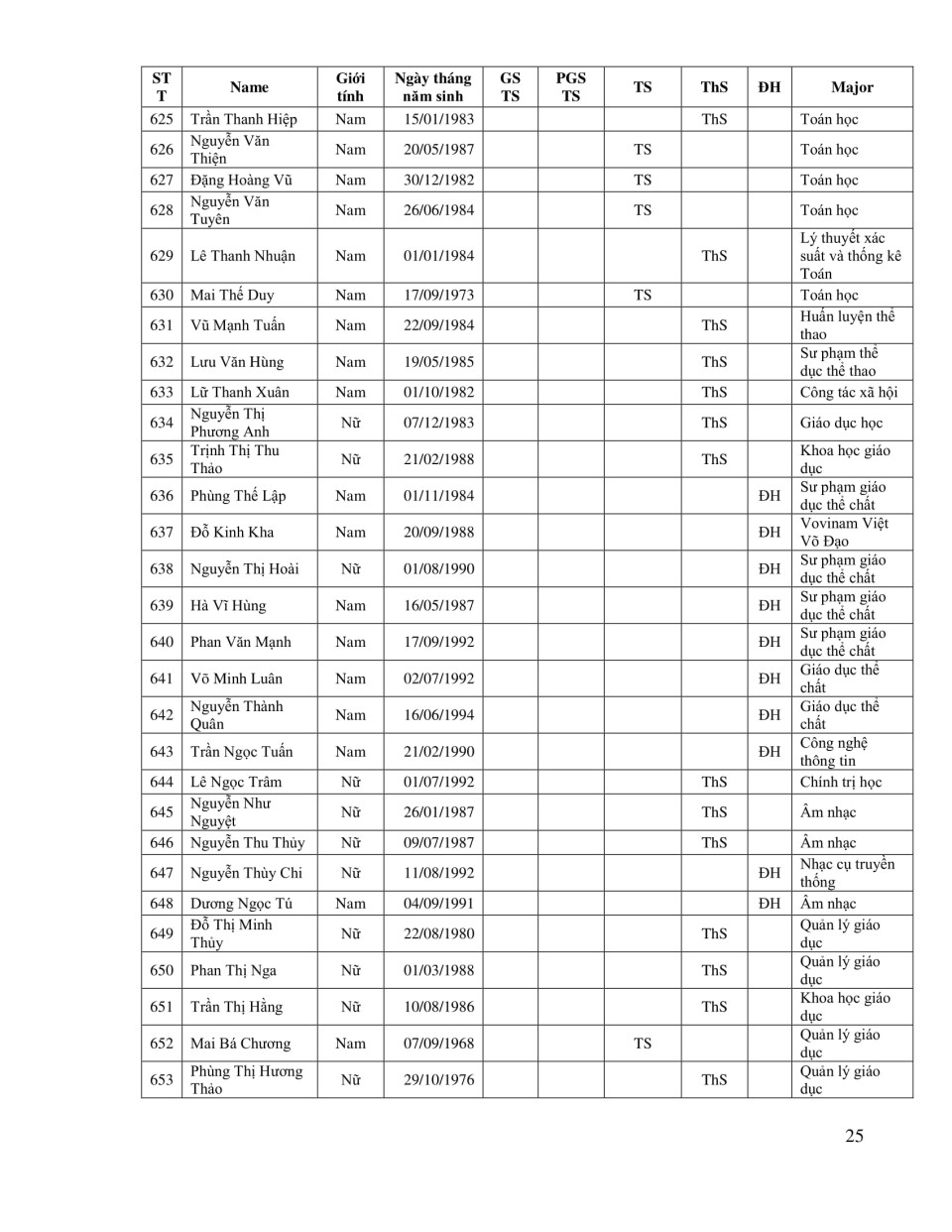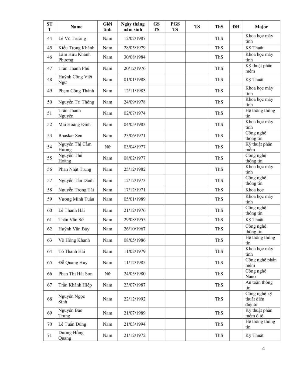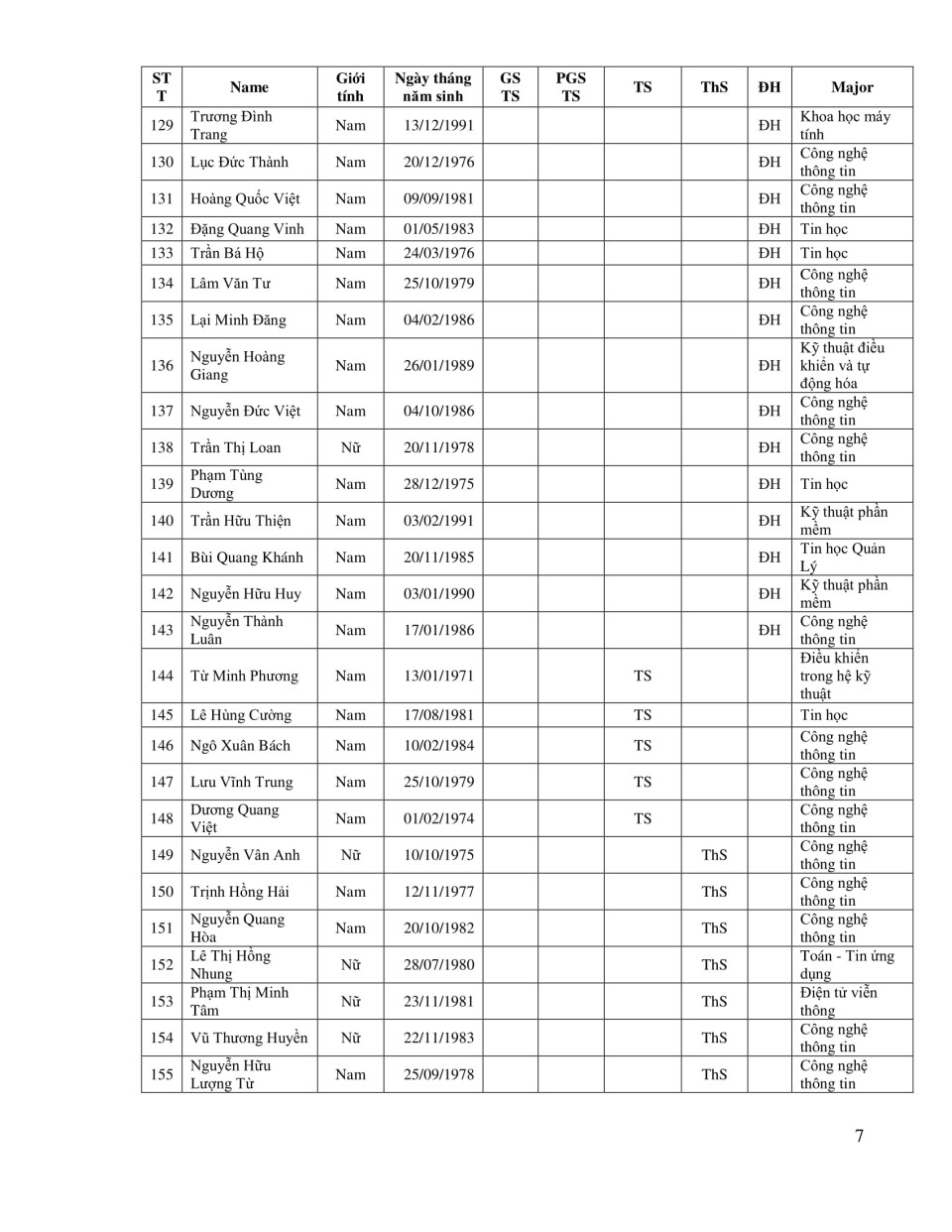Công khai giảng viên cơ hữu năm học 2014 - 2015