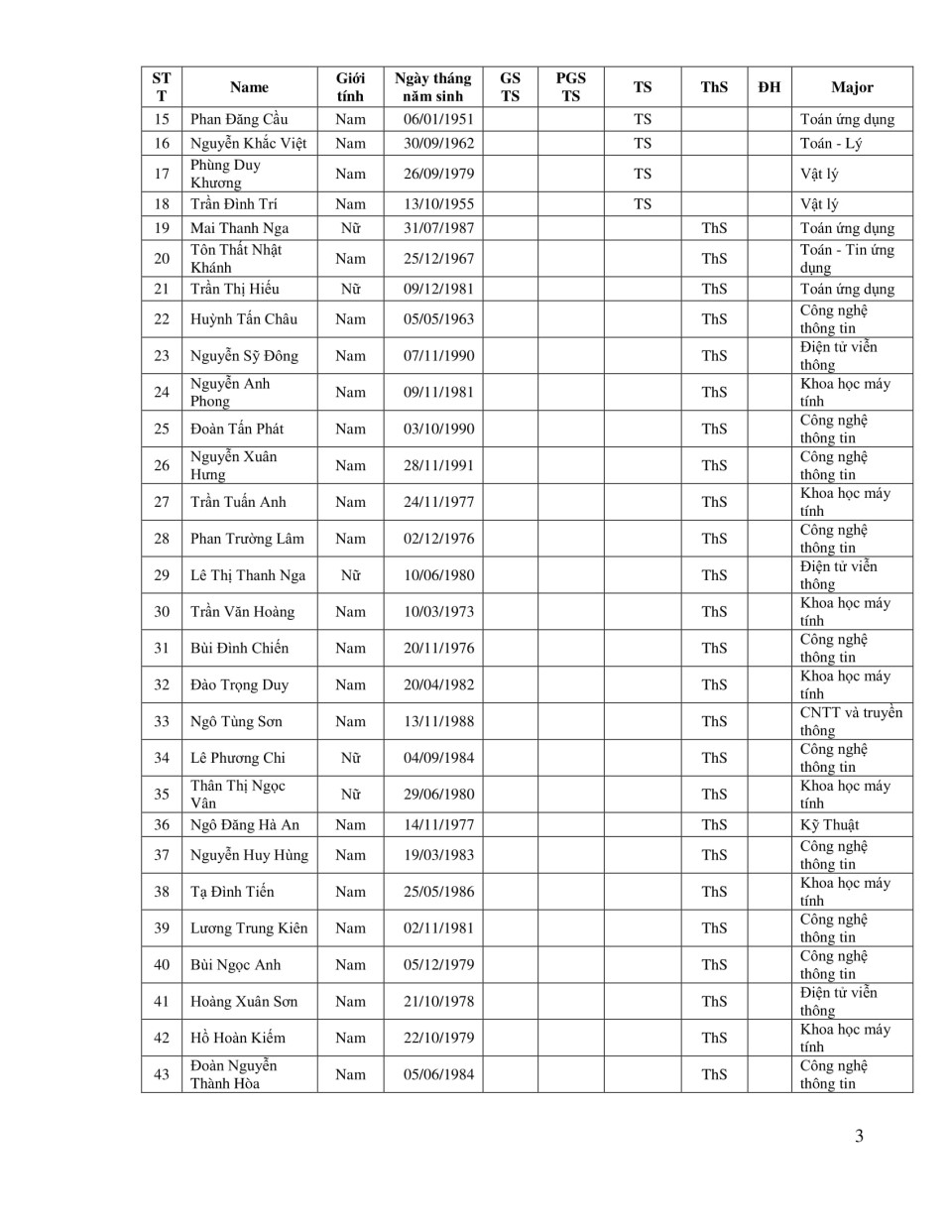 Công khai giảng viên cơ hữu năm học 2015 - 2016