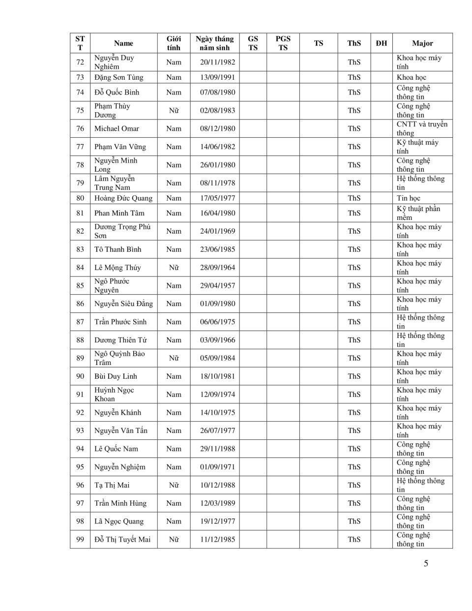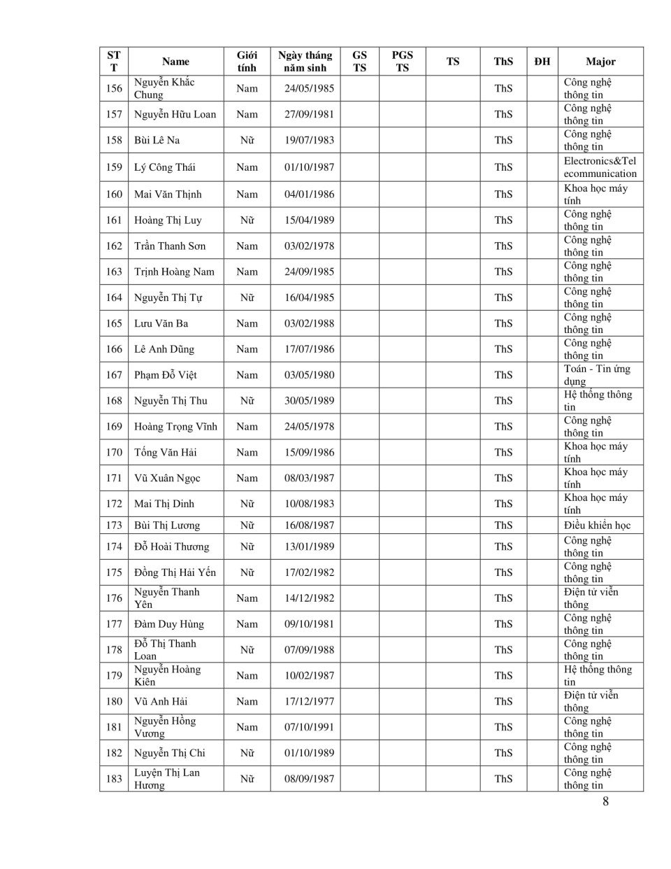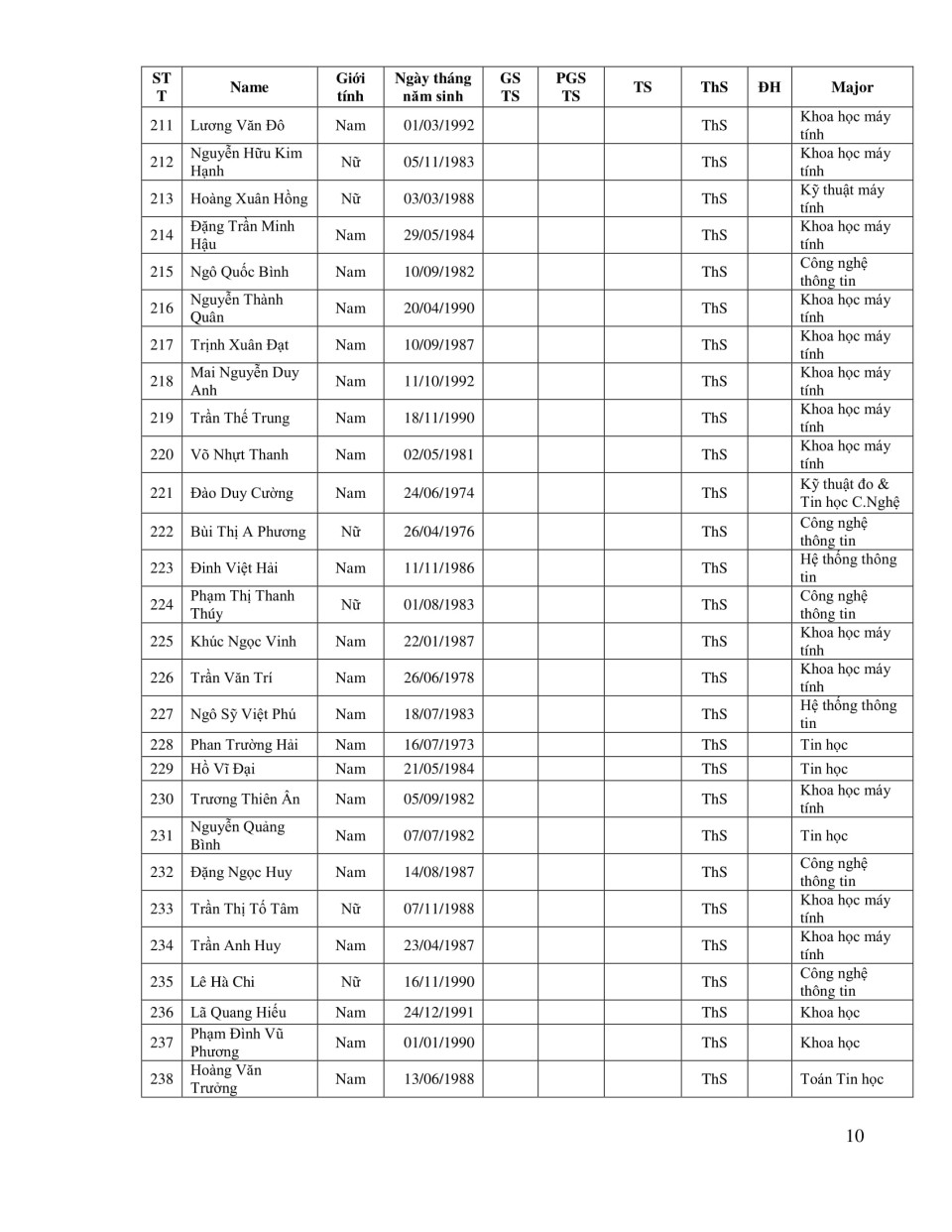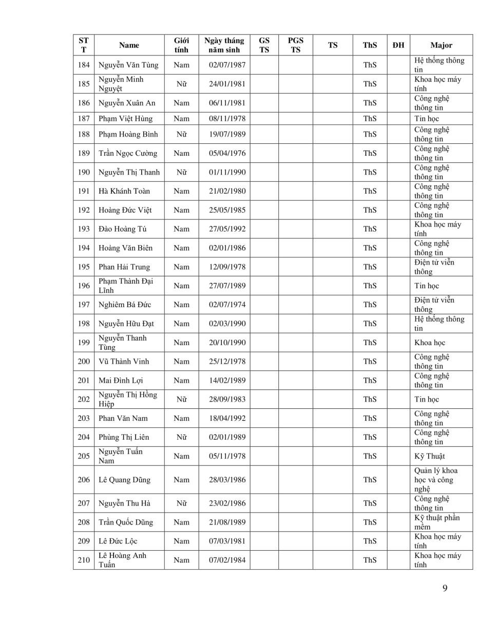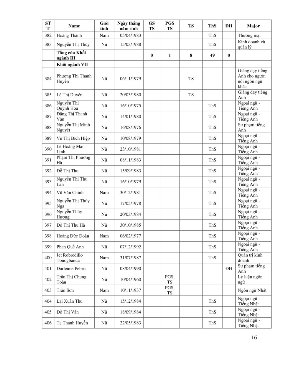 Công khai giảng viên cơ hữu năm học 2016 - 2017