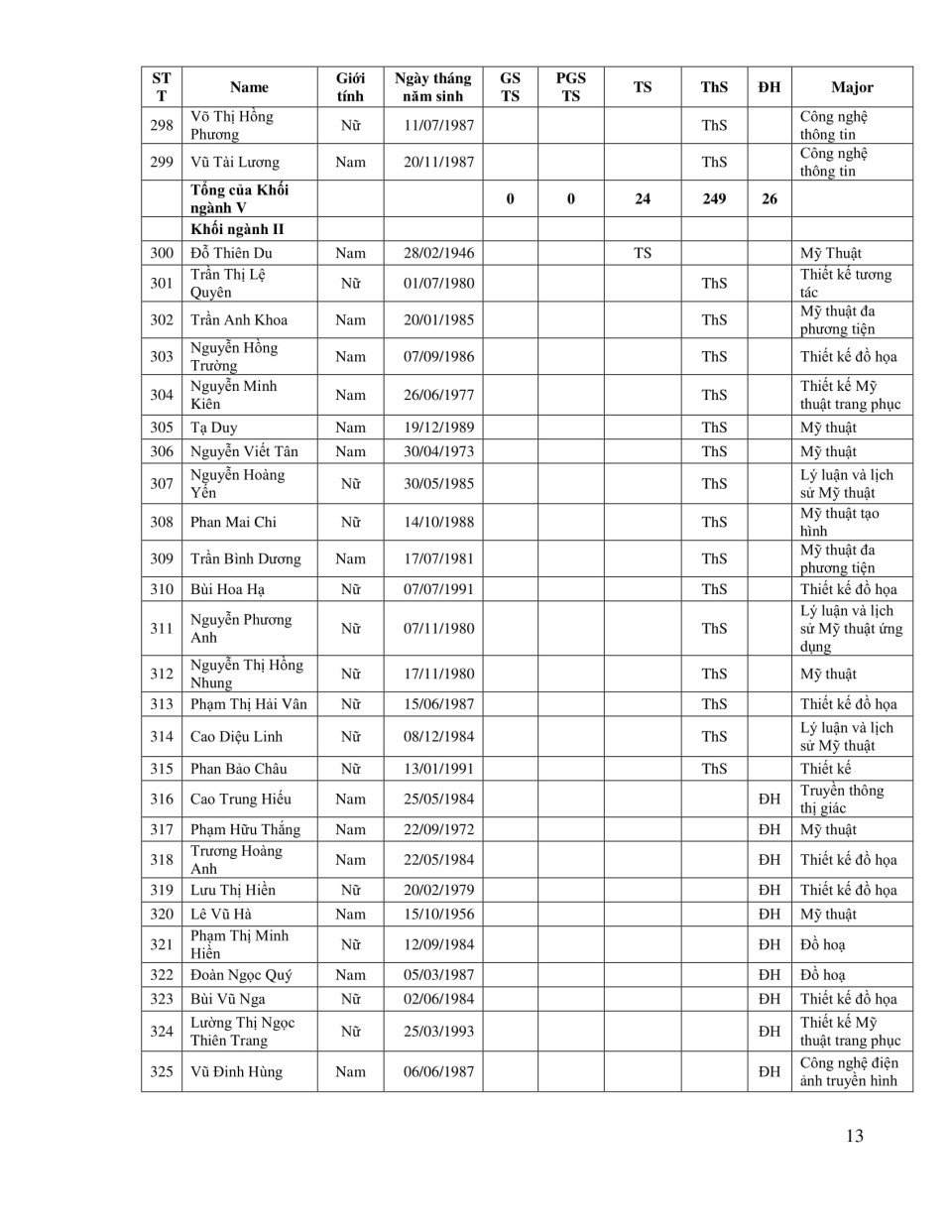Công khai giảng viên cơ hữu năm học 2013 - 2014