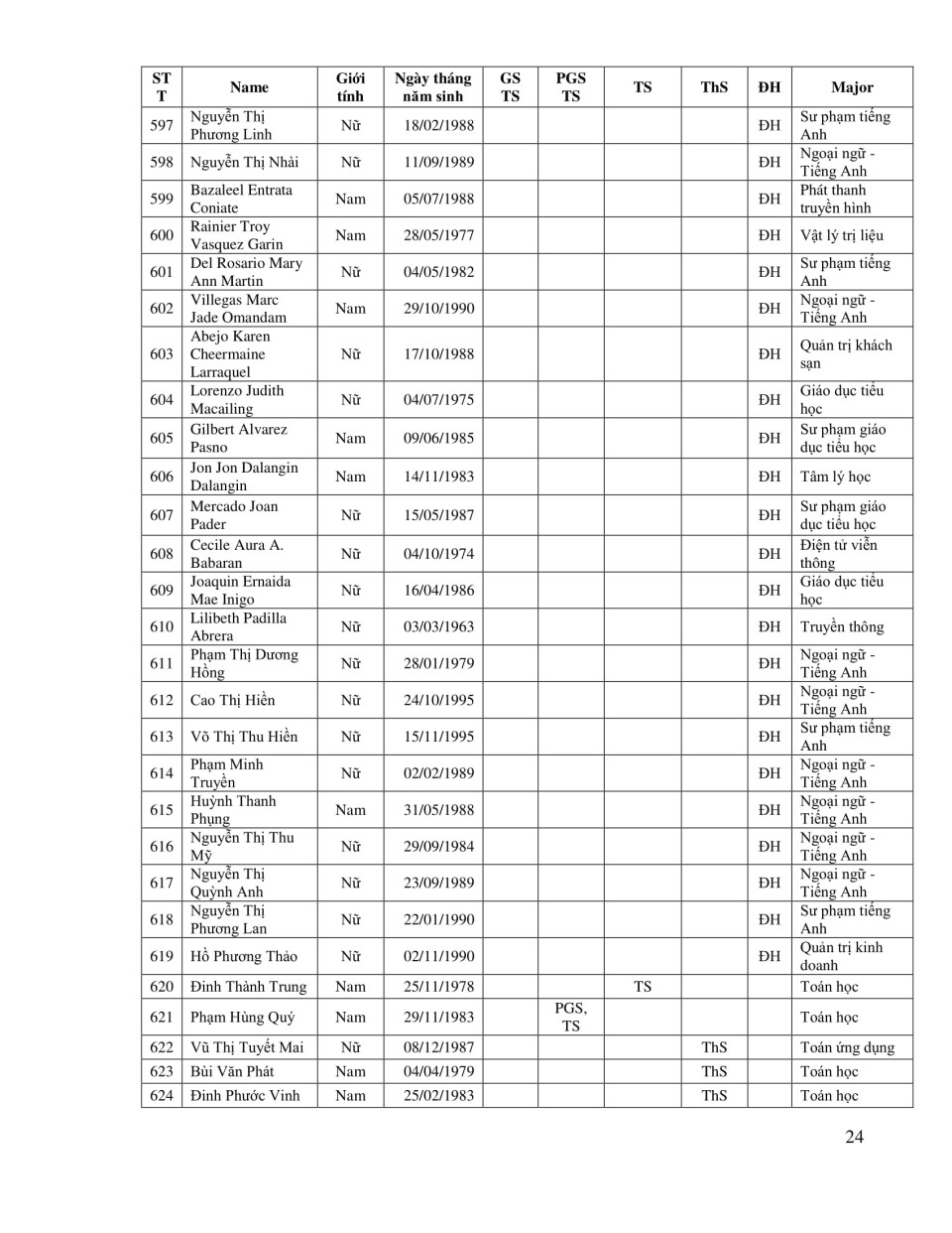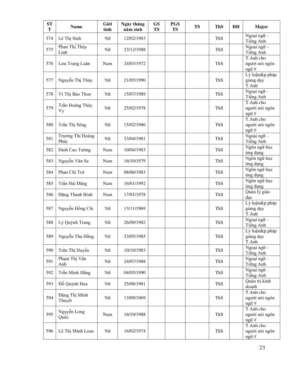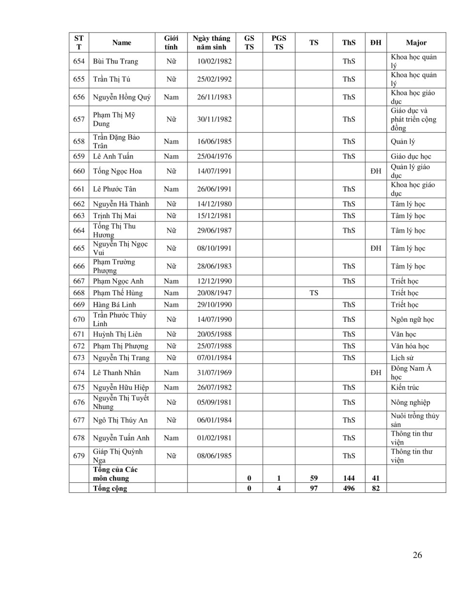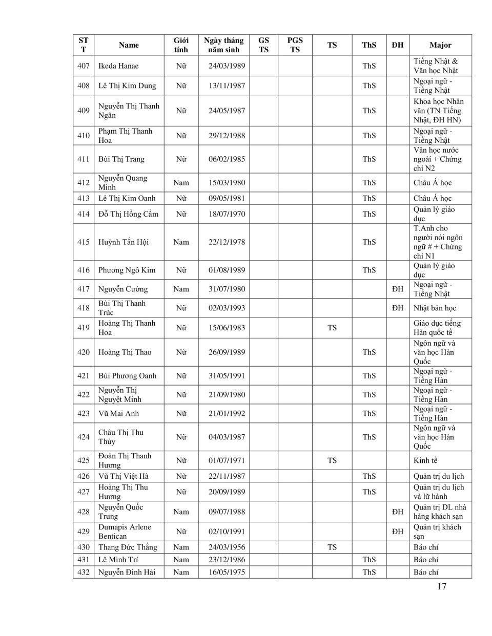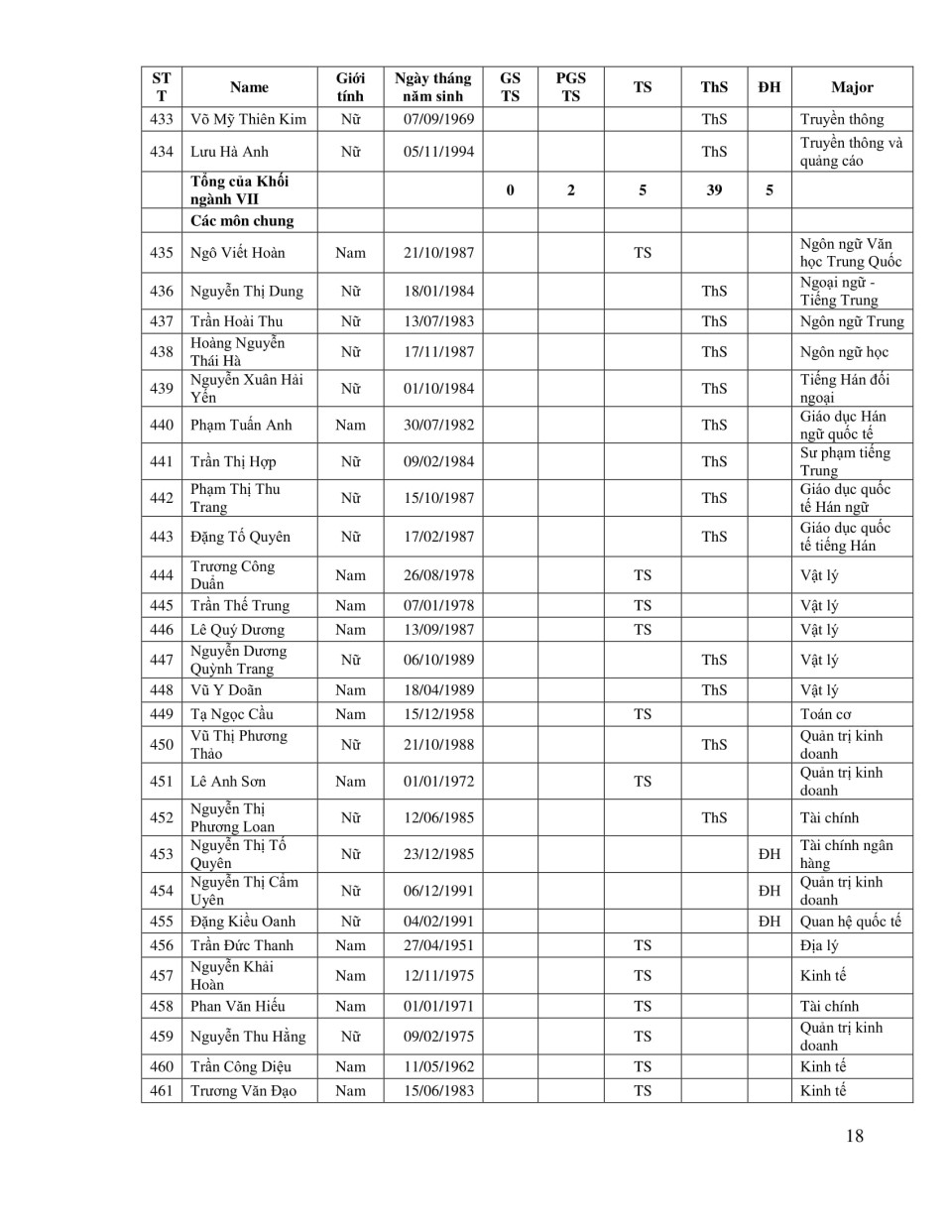 Công khai thông tin về đội ngũ GVCH của cơ sở giáo dục đại học, trường cao đẳng sư phạm, trung cấp sư phạm năm học 2017-2018
