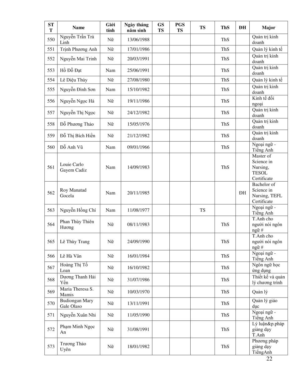 Công khai thông tin về đội ngũ giảng viên cơ hữu của cơ sở giáo dục đại học, trường cao đẳng sư phạm, trung cấp sư phạm, năm học 2021-2022