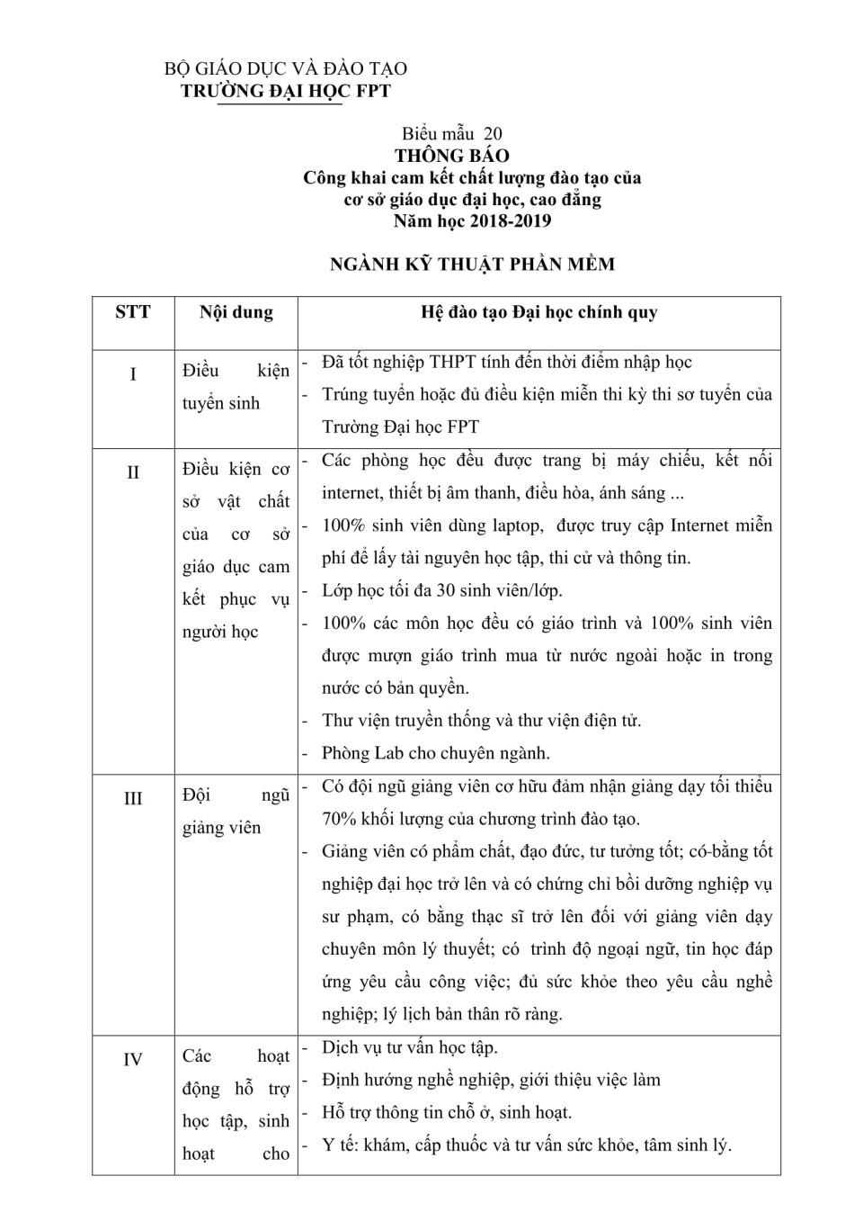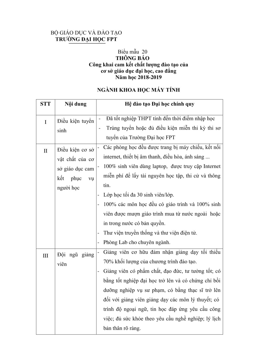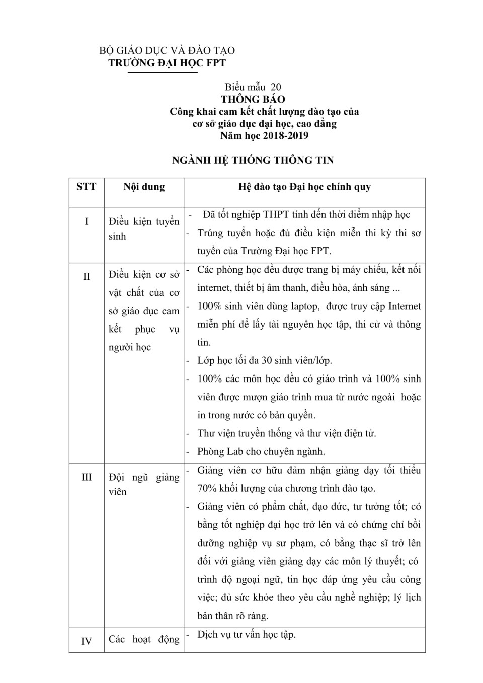 Công khai điều kiện trình tự thủ tục mở ngành Trường ĐH FPT