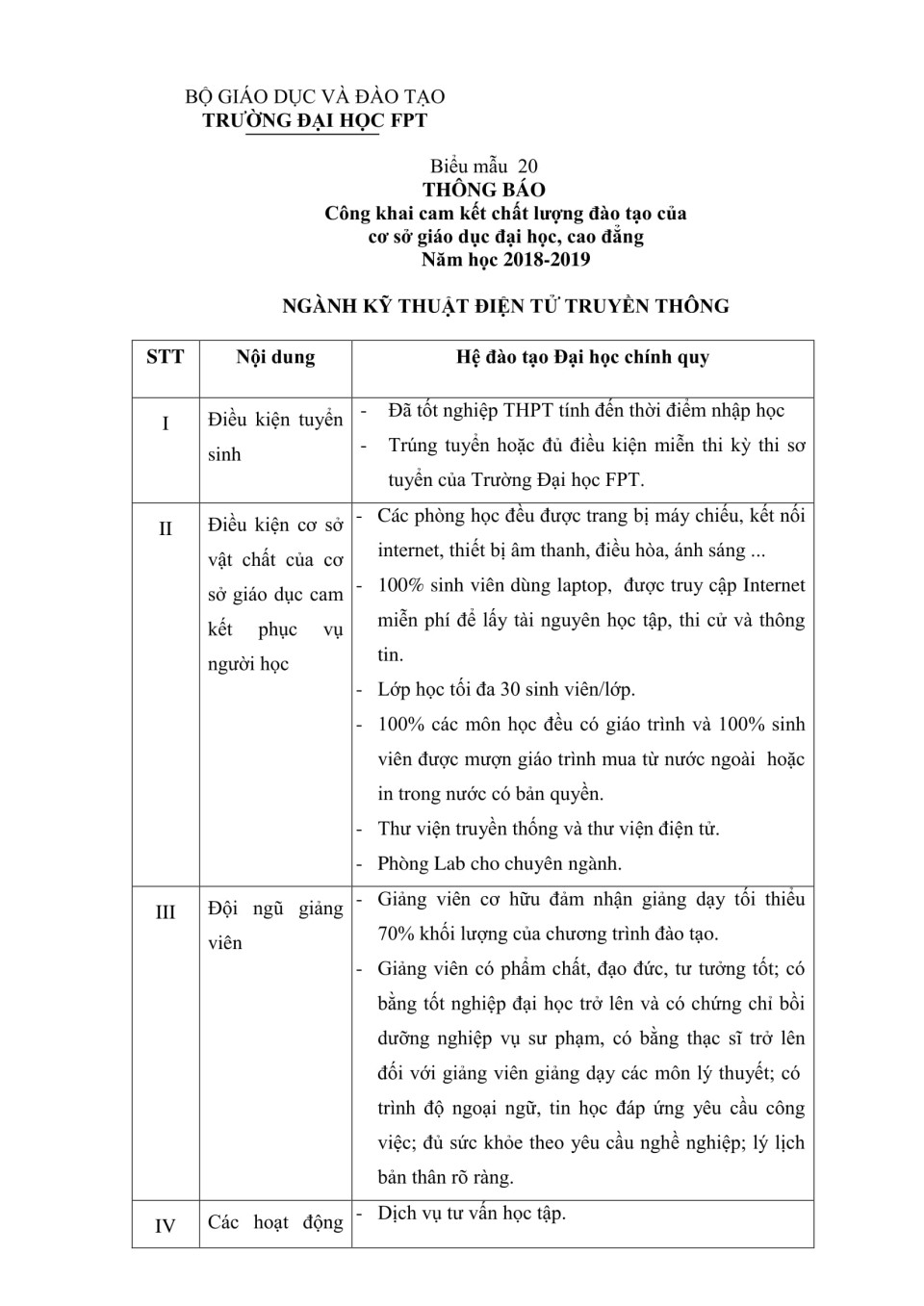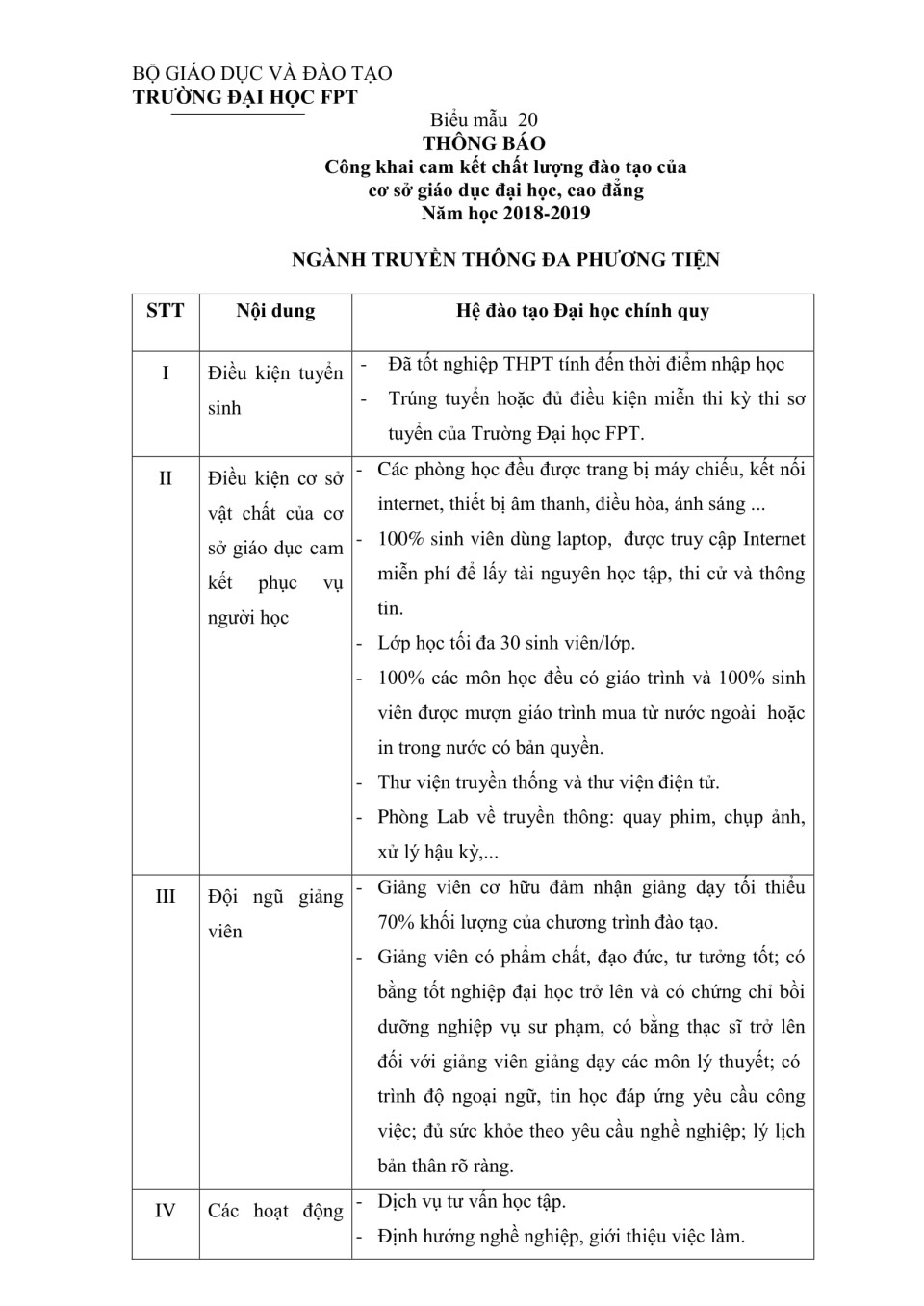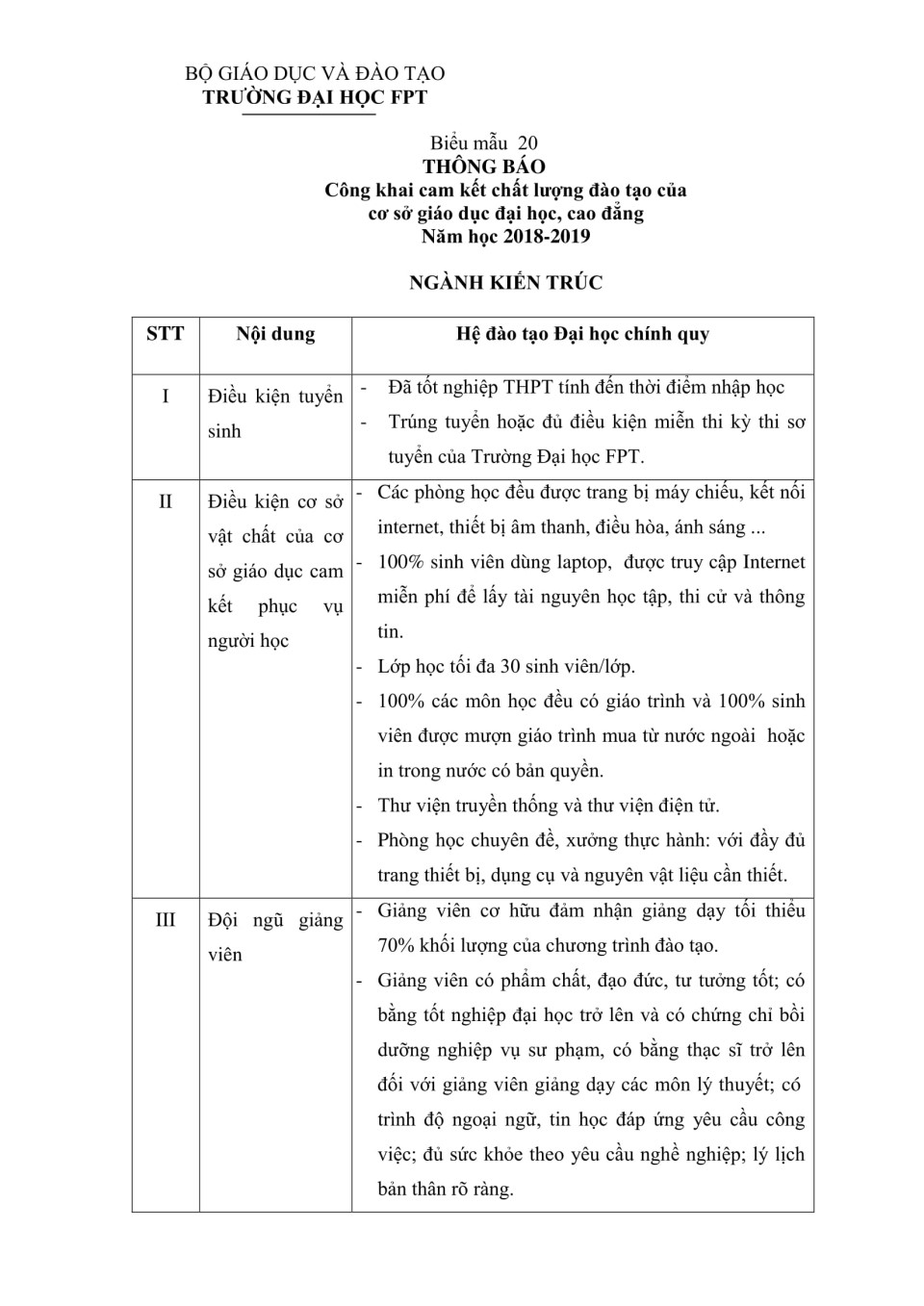 Công khai cam kết chất lượng đào tạo của cơ sở giáo dục đại học năm học 2018-2019