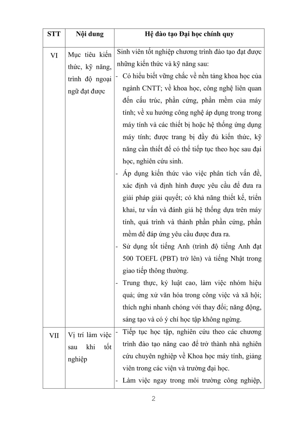 Công khai chất lượng đào tạo ngành Khoa học máy tính năm học 2014 - 2015