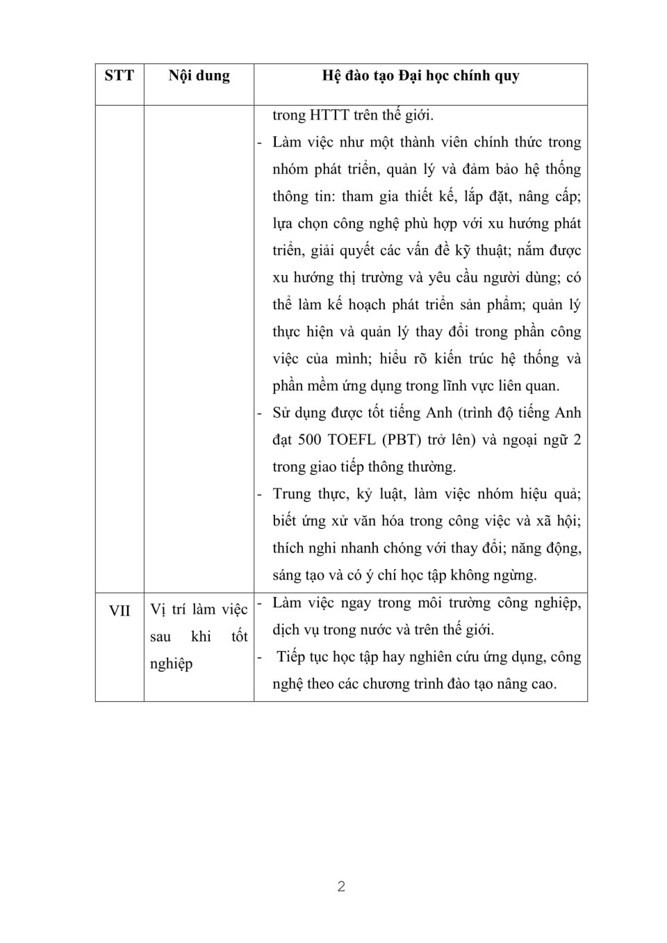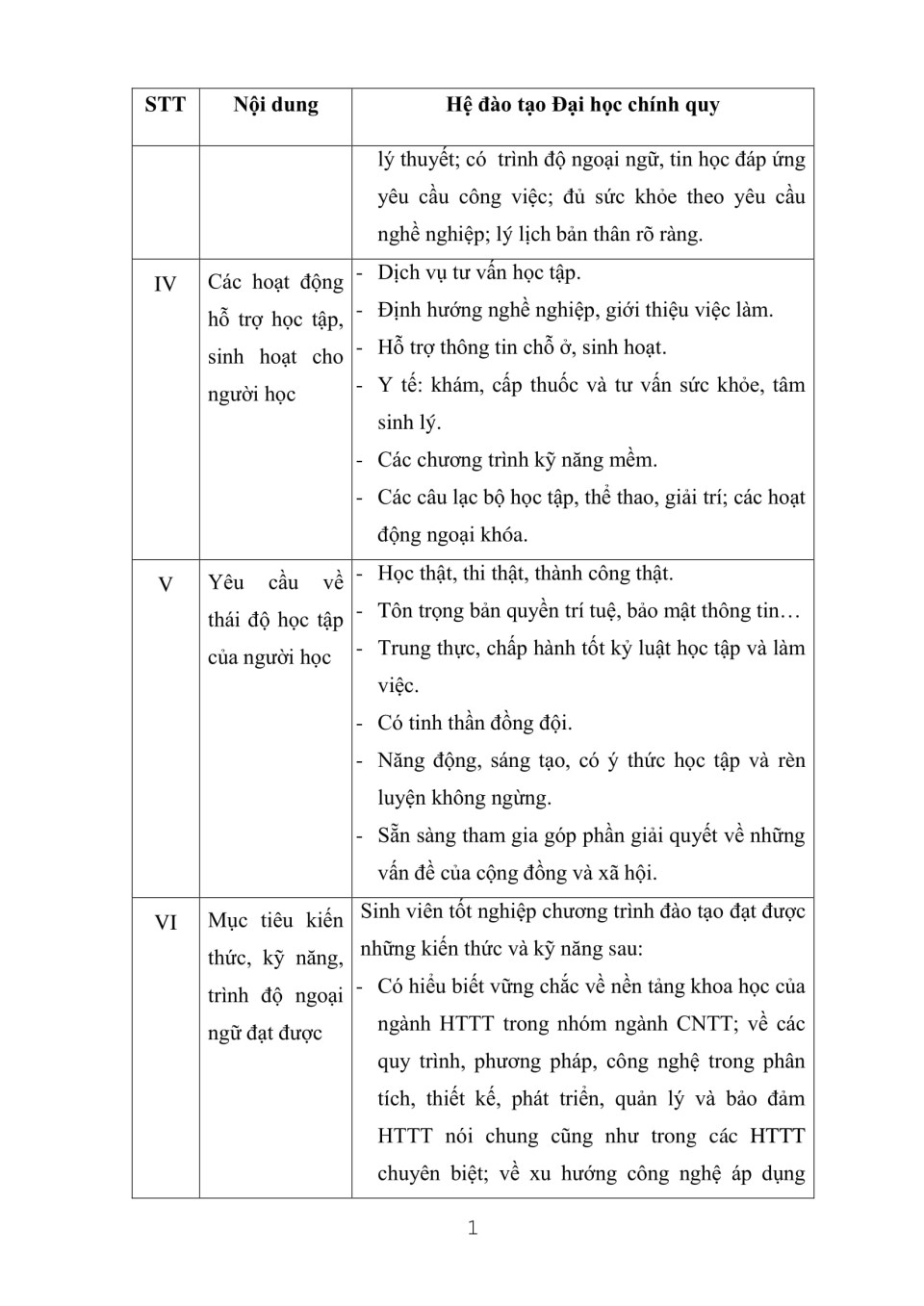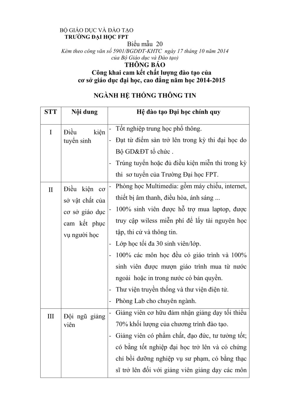Công khai chất lượng đào tạo ngành Hệ thống thông tin năm học 2014 - 2015