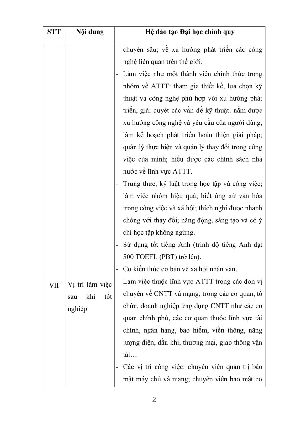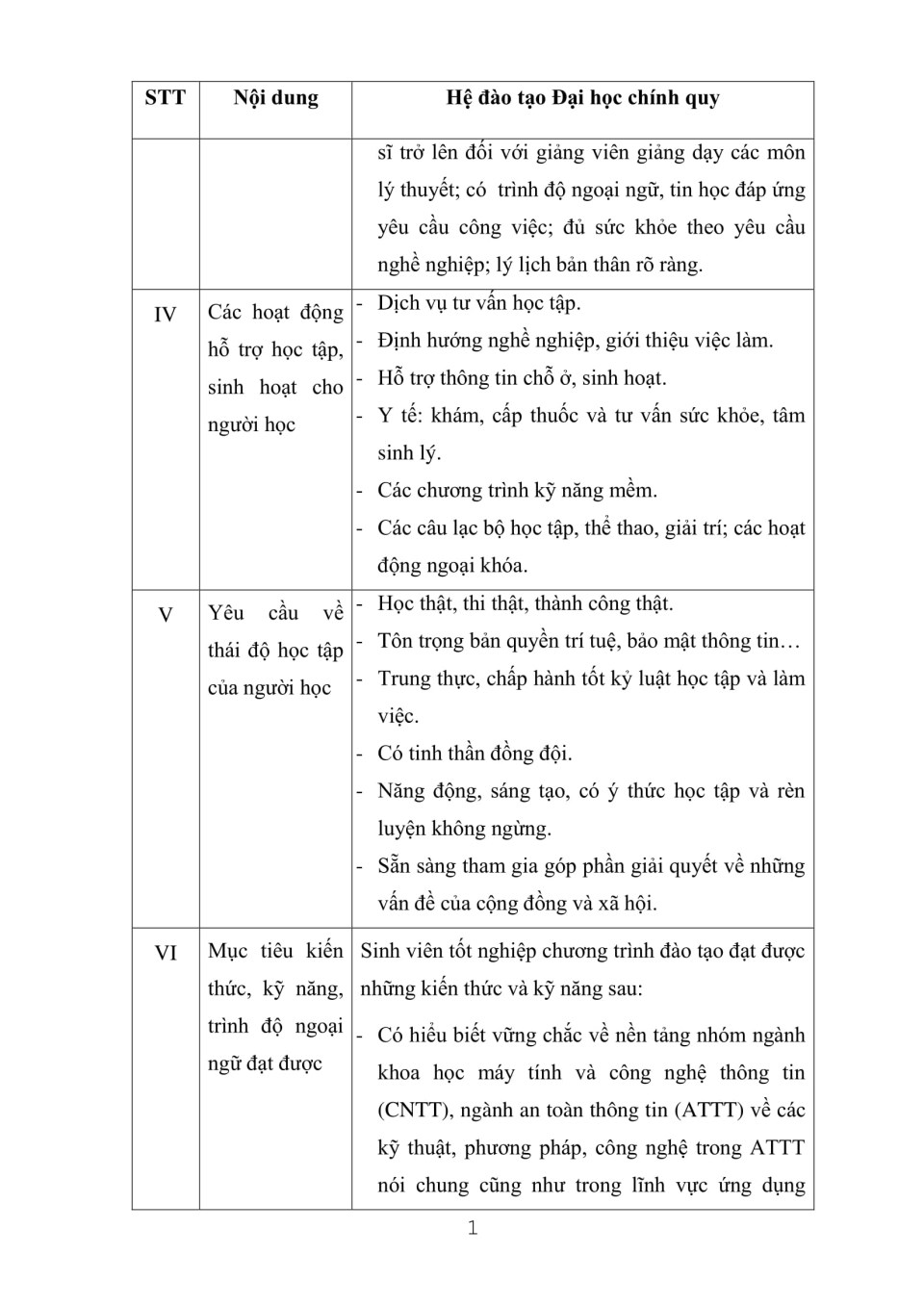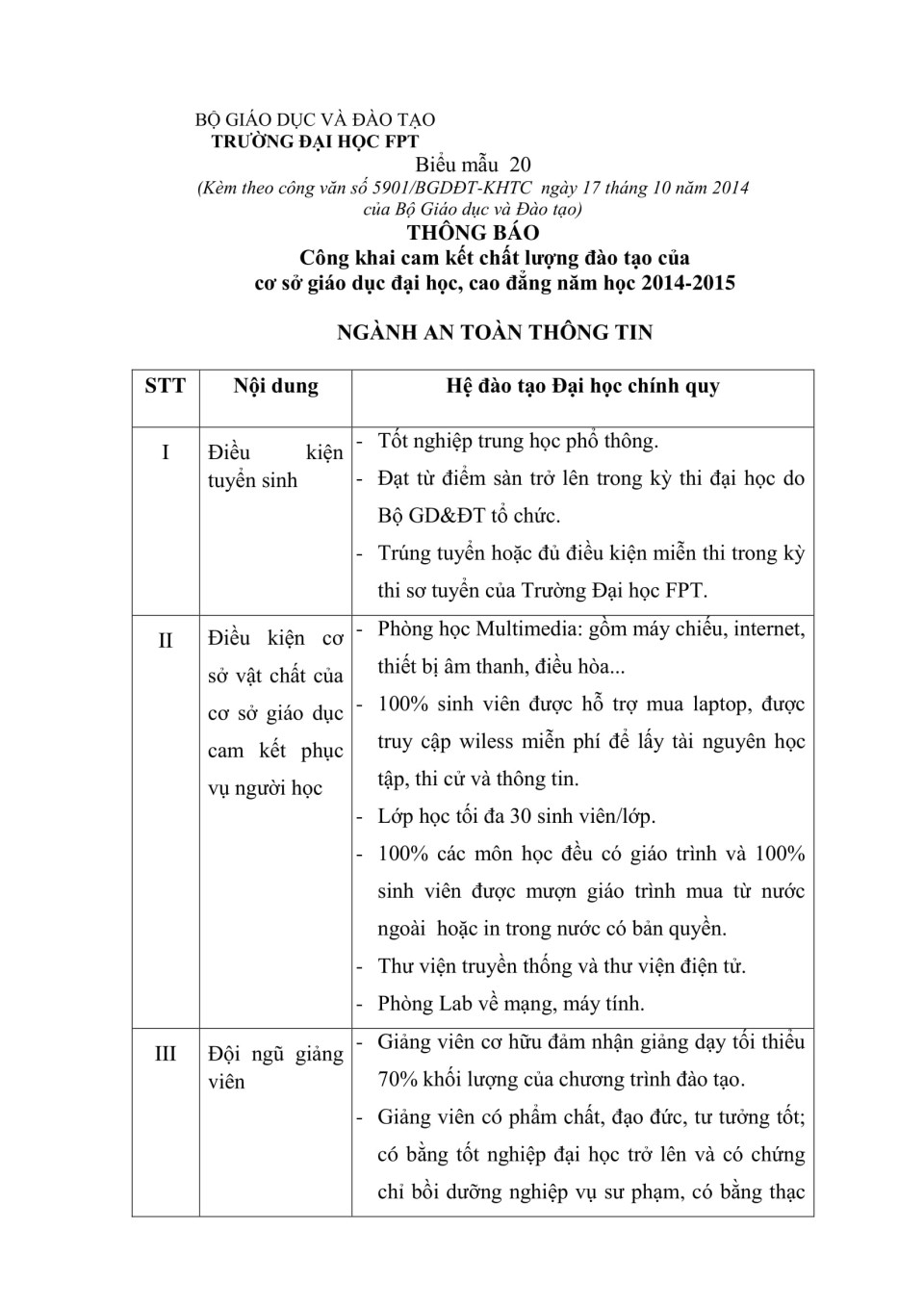 Công khai chất lượng đào tạo ngành An toàn thông tin năm học 2014 - 2015