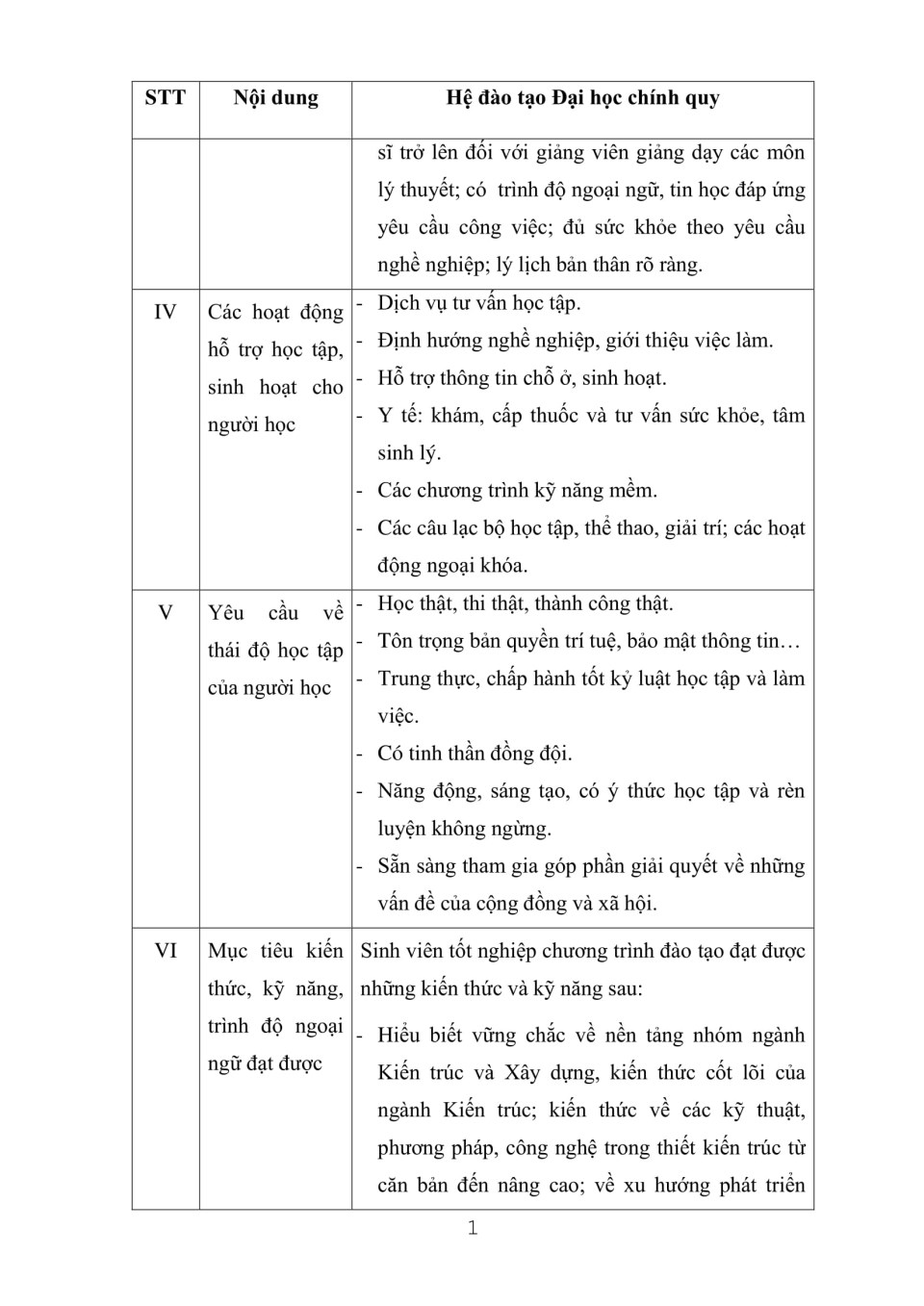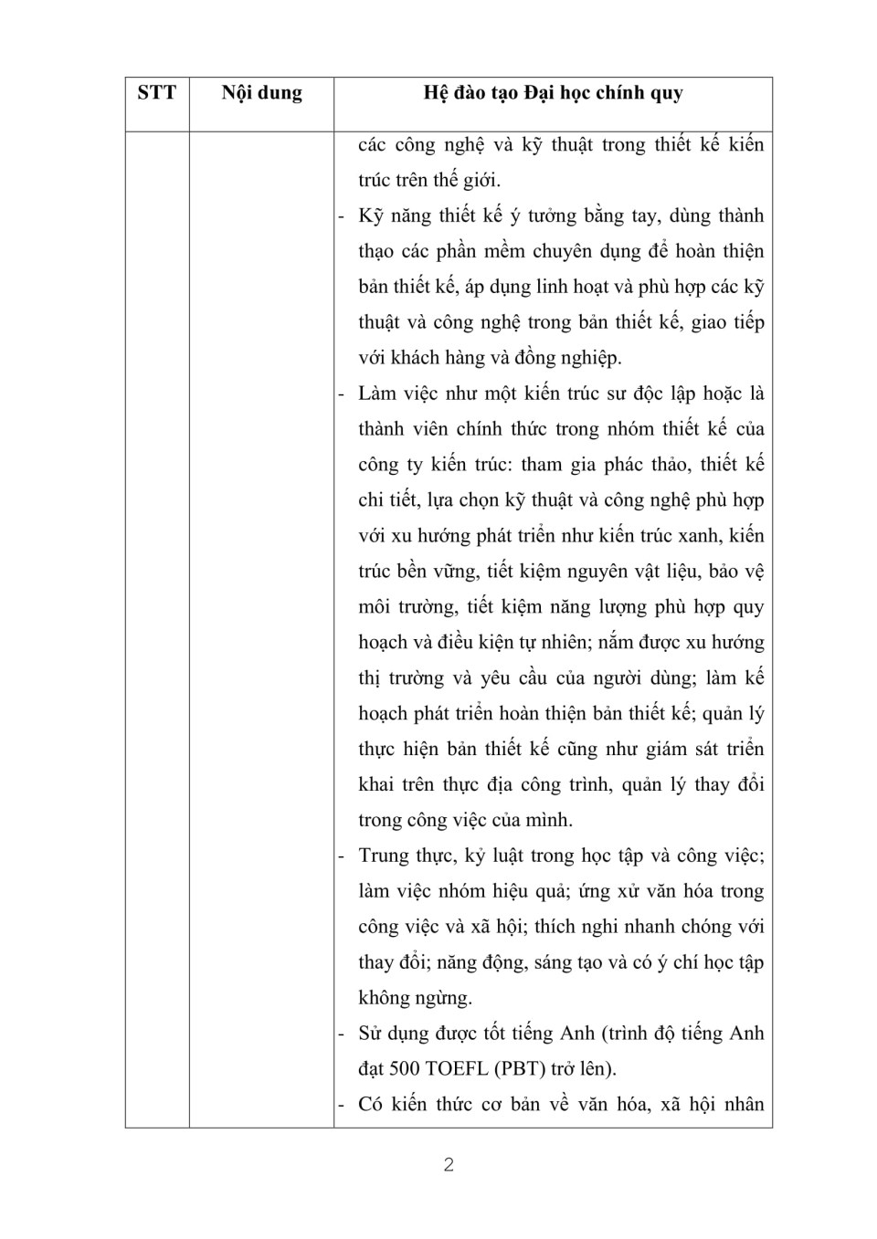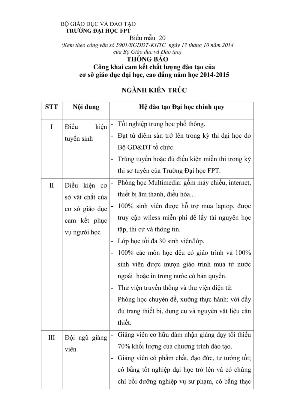 Công khai chất lượng đào tạo ngành Kiến trúc năm học 2014 - 2015