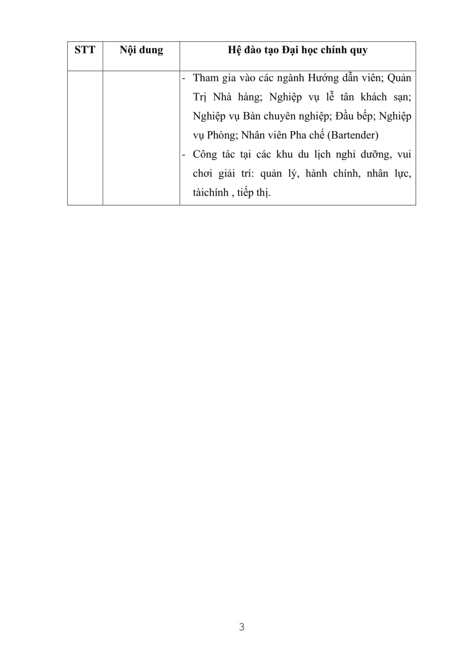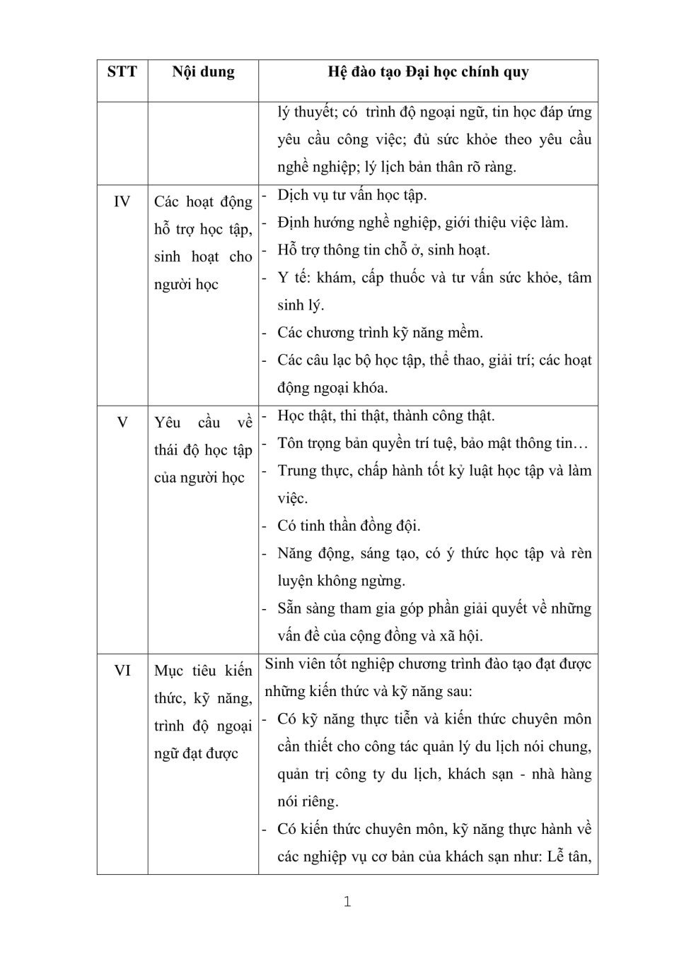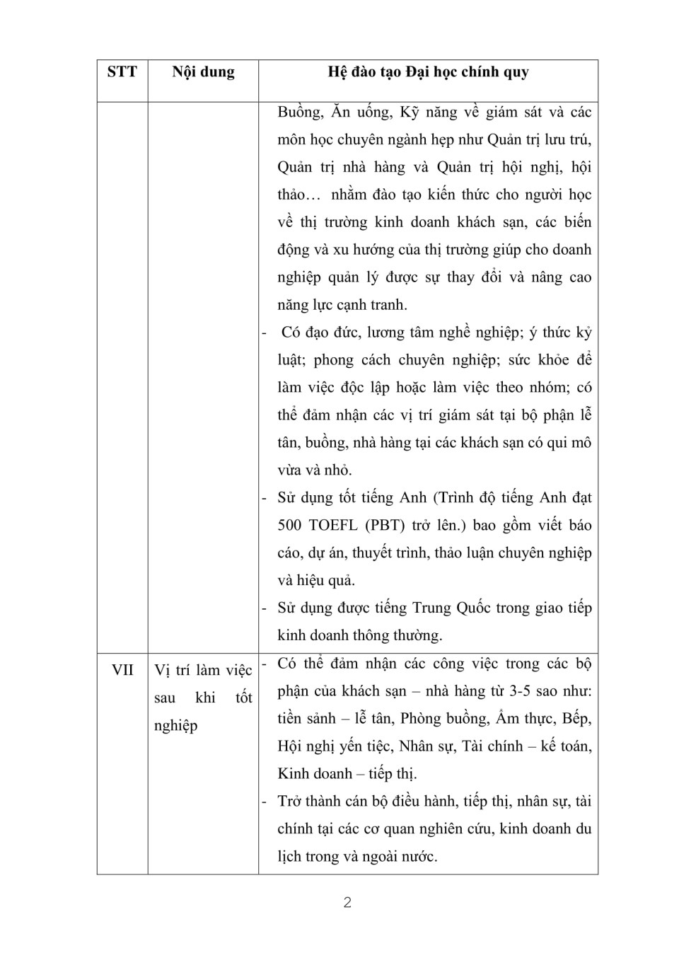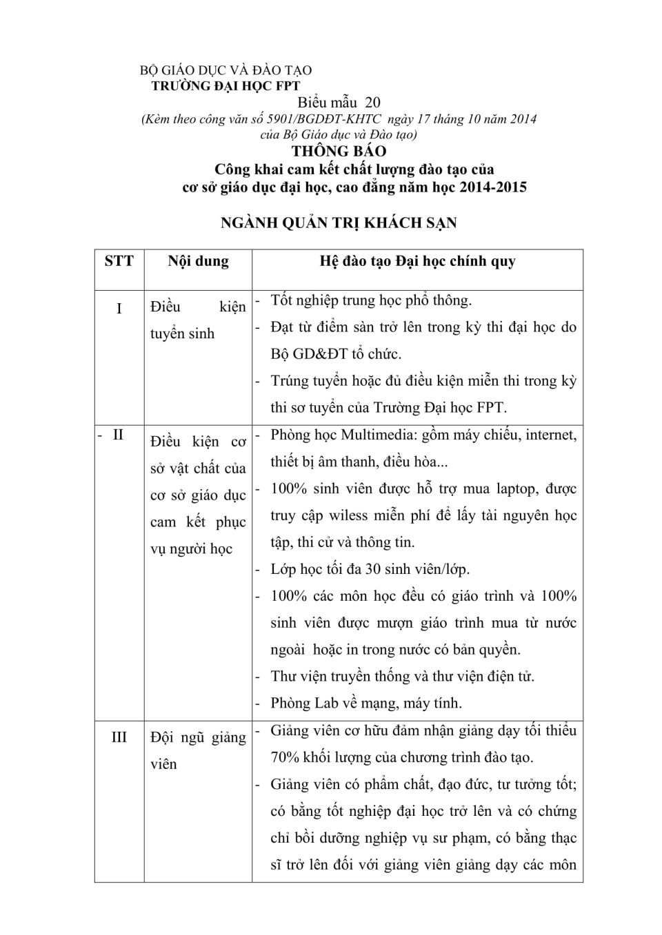 Công khai chất lượng đào tạo ngành Quản trị khách sạn năm học 2014 - 2015