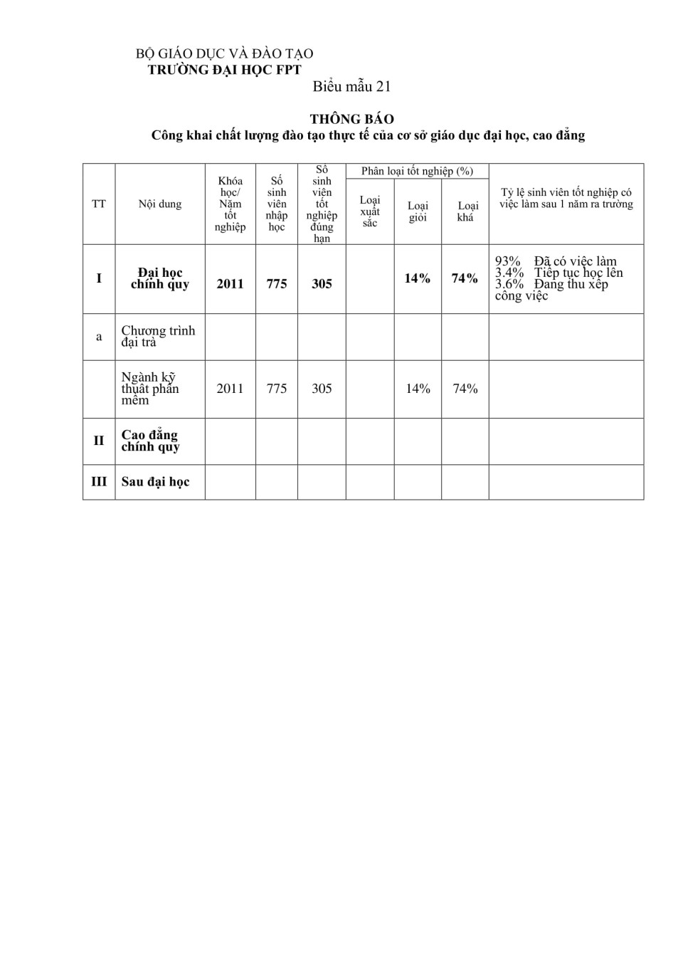 Công khai Chất lượng đào tạo năm học 2011 - 2012