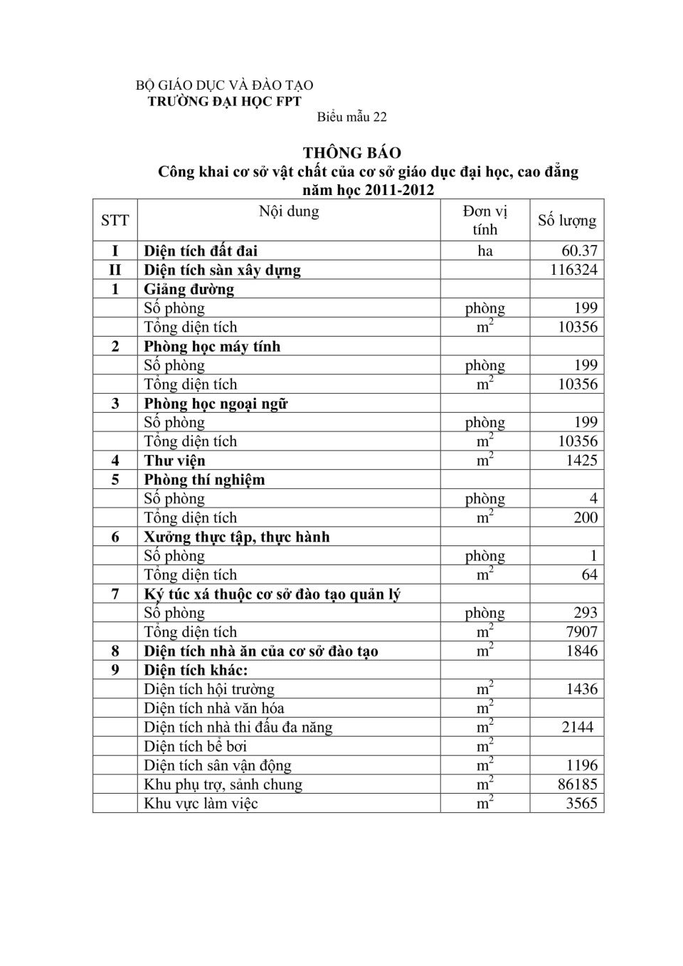 Công khai thông tin cơ sở vật chất của cơ sở giáo dục đại học năm học 2021 - 2022
