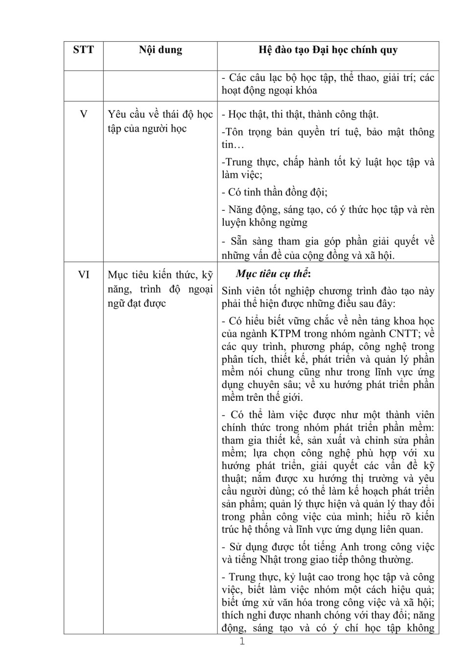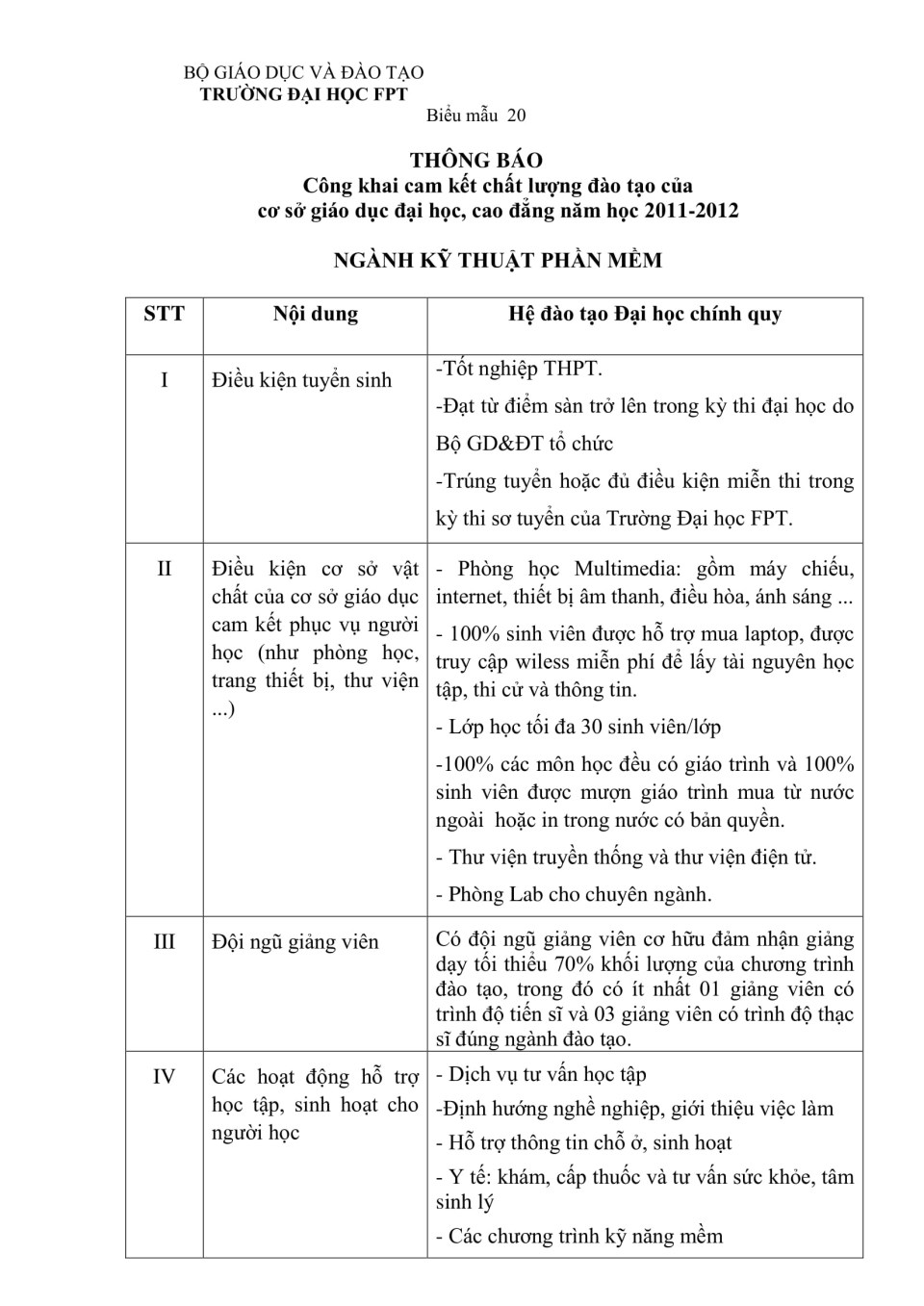 Công khai cam kết chất lượng đào tạo ngành Kỹ thuật phần mềm năm học 2011 - 2012