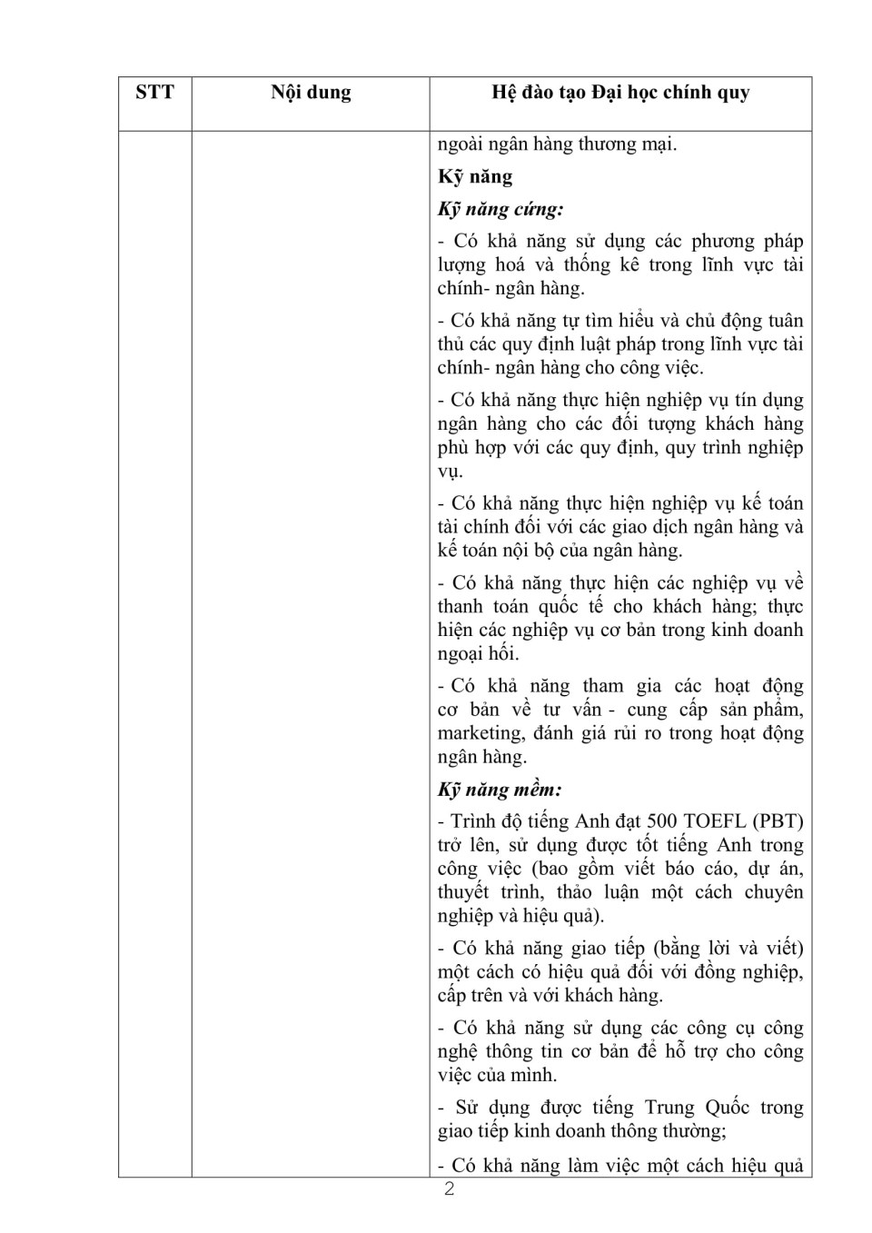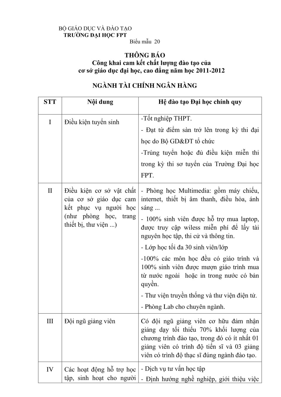 Công khai cam kết chất lượng đào tạo ngành Tài chính ngân hàng năm học 2011 - 2012