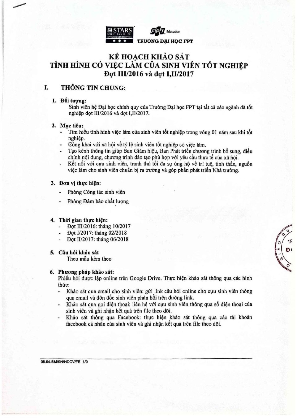 Khảo sát tình hình việc làm của sinh viên tốt nghiệp đợt III/2016 và đợt I, II/2017