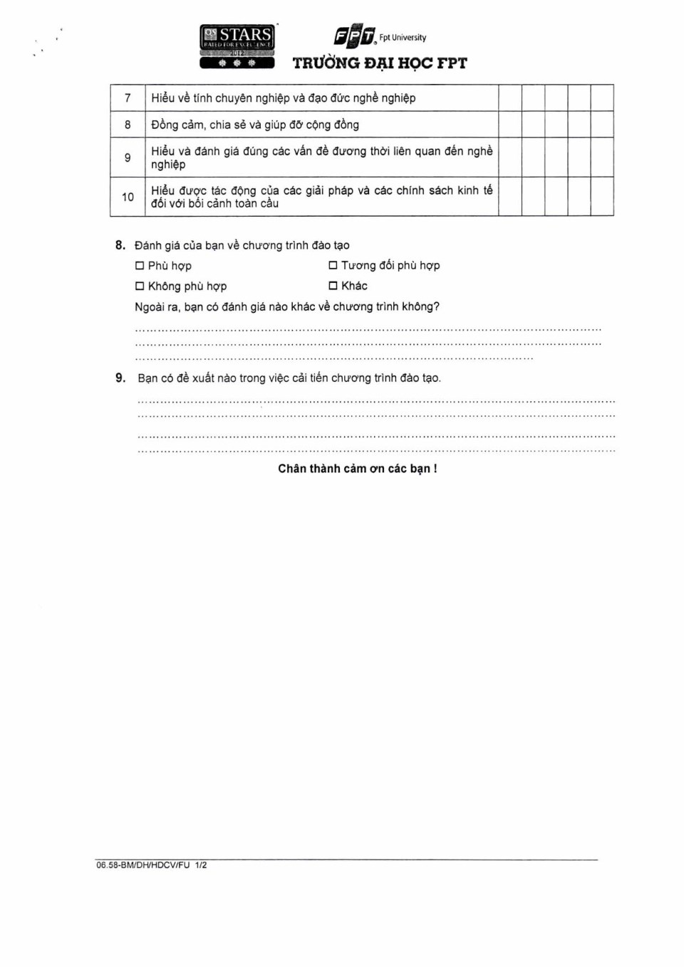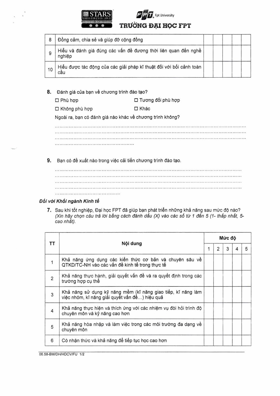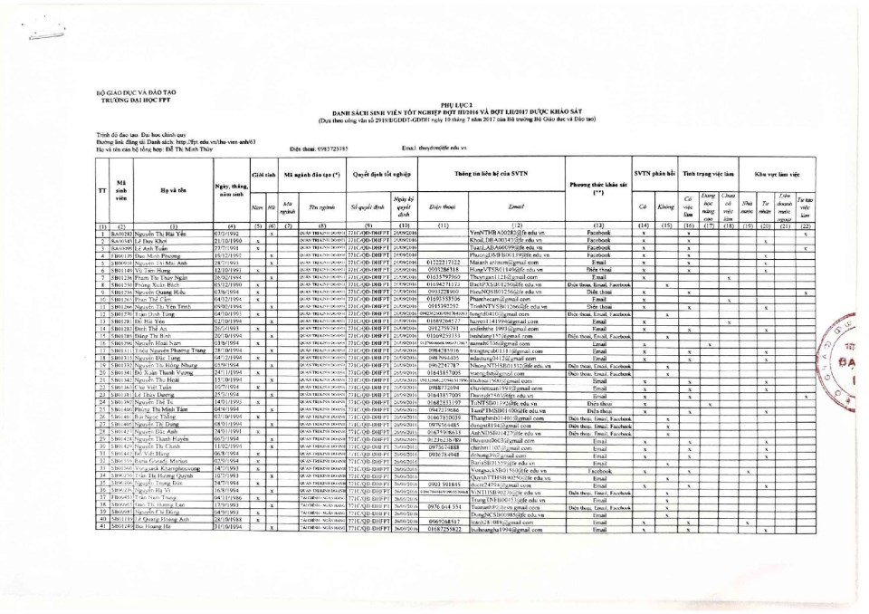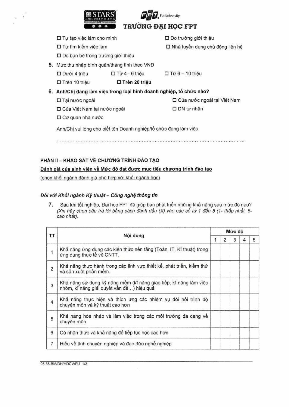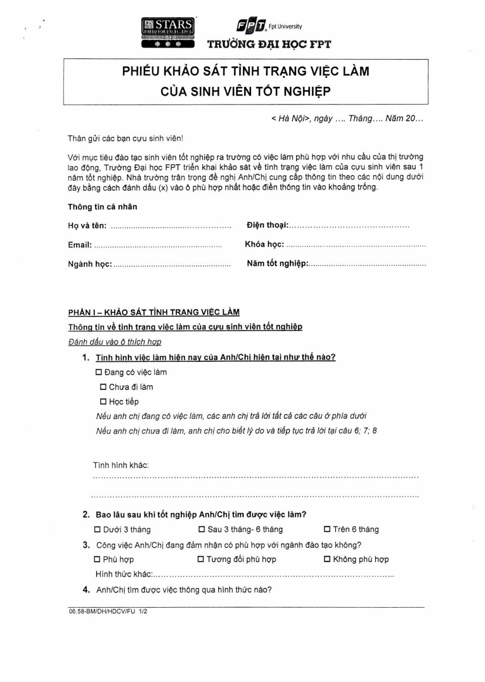 Biểu mẫu khảo sát tình trạng việc làm sinh viên tốt nghiệp