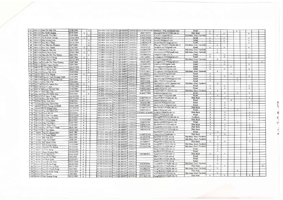 Công khai giảng viên cơ hữu năm học 2016 - 2017