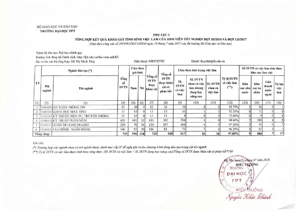 Công khai thông tin chất lượng đào tạo thực tế của cơ sở giáo dục đại học năm học 2017-2018