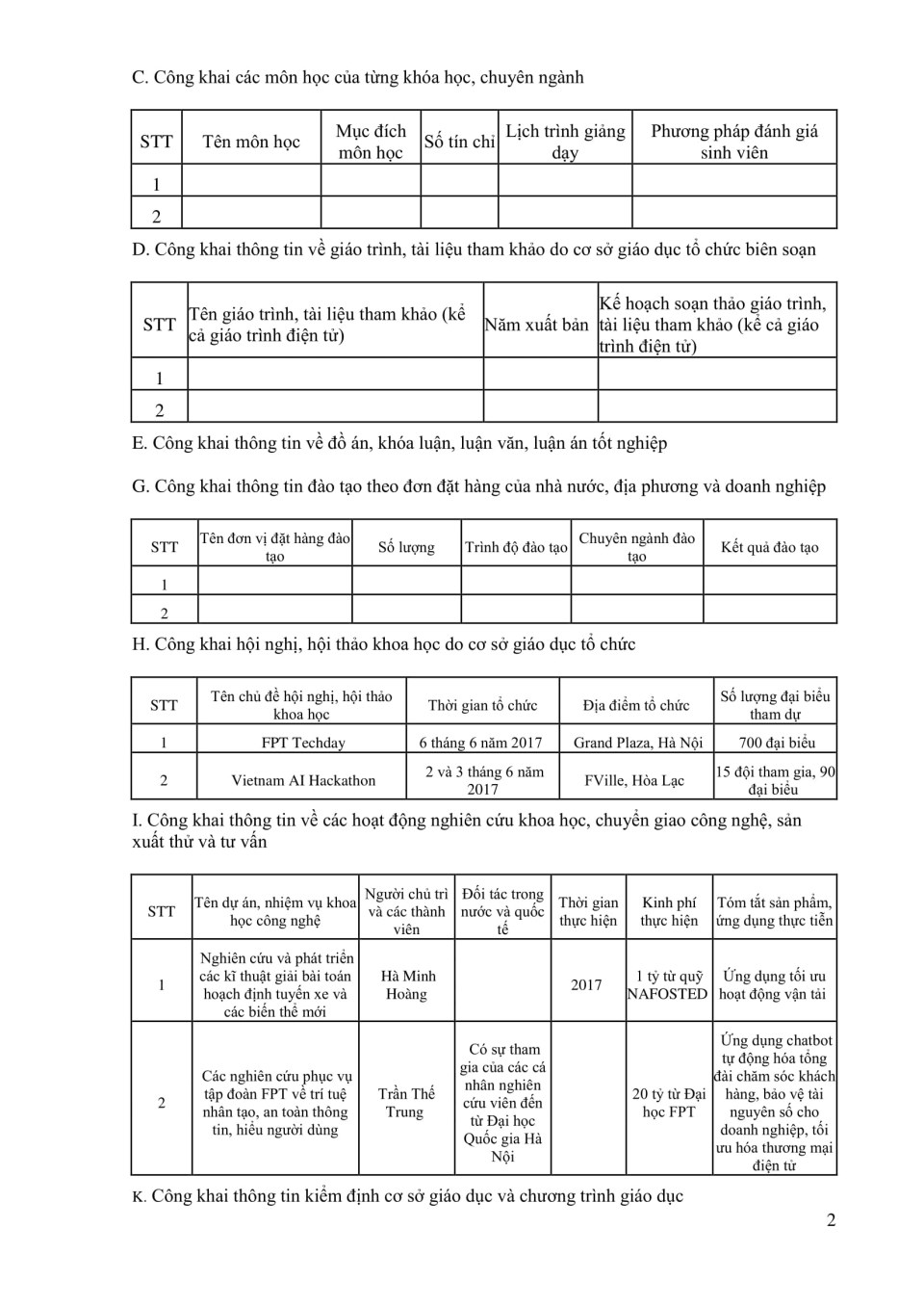 Công khai điều kiện trình tự thủ tục mở ngành Trường ĐH FPT