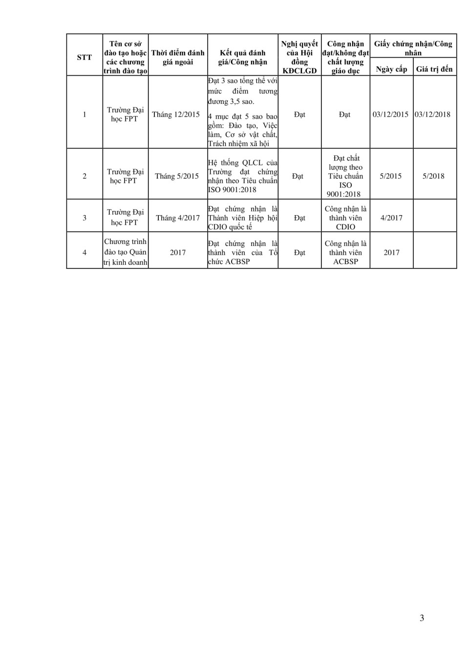 Công khai kết quả kiểm định chương trình đào tạo ngành Quản trị Kinh doanh, Trường ĐH FPT Hà Nội