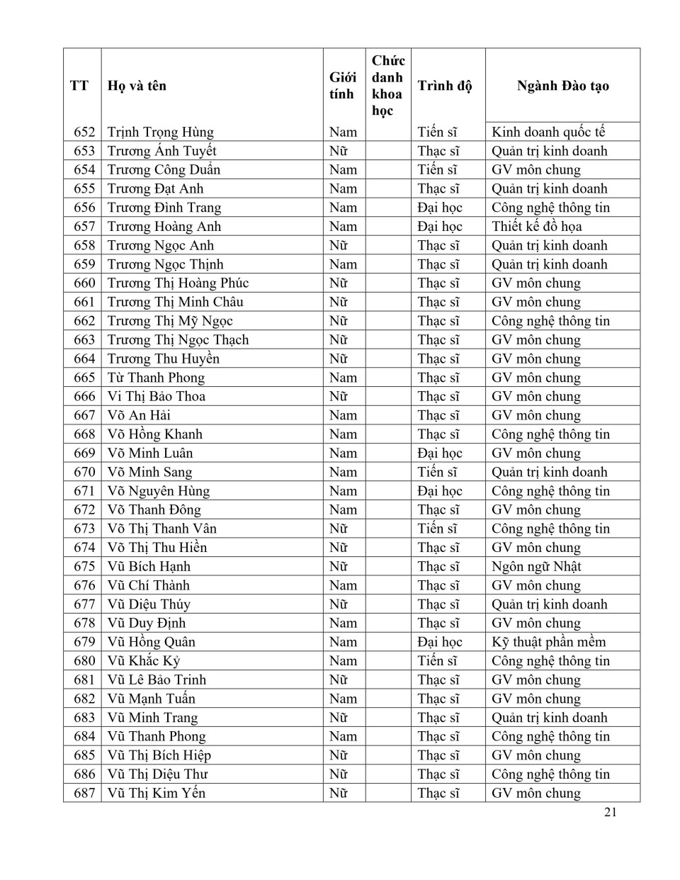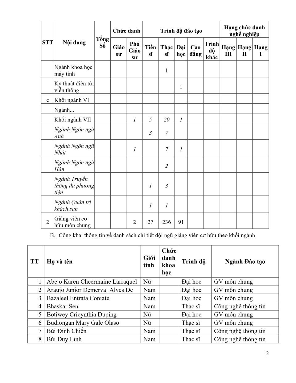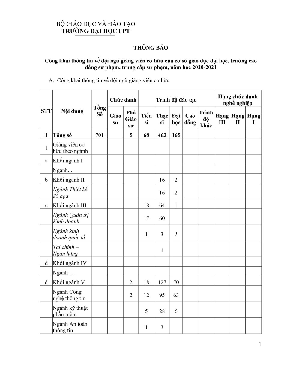 Công khai thông tin về đội ngũ giảng viên cơ hữu của cơ sở giáo dục đại học, trường cao đẳng sư phạm, trung cấp sư phạm, năm học 2021-2022