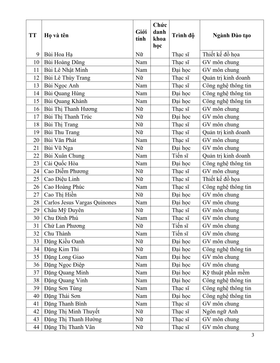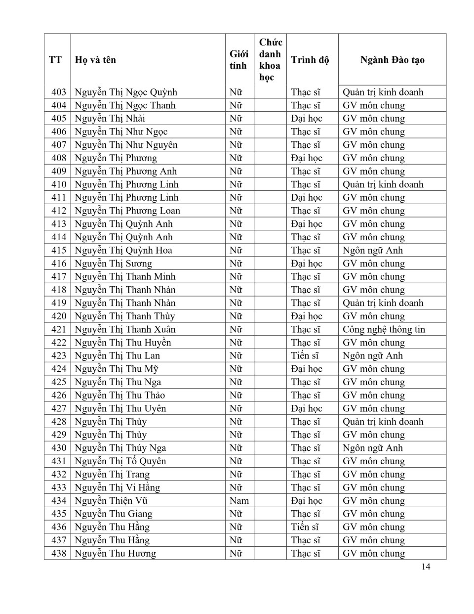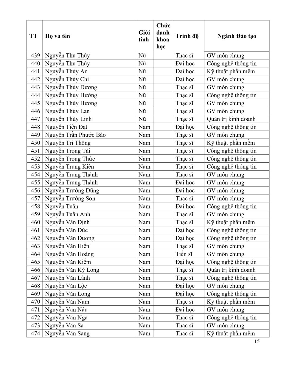 Công khai giảng viên cơ hữu năm học 2014 - 2015