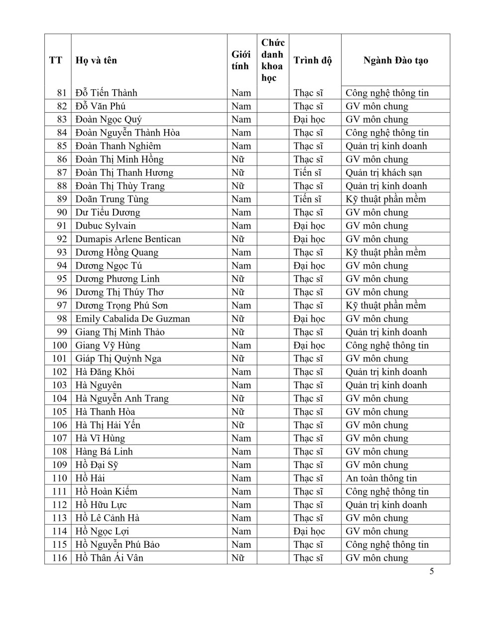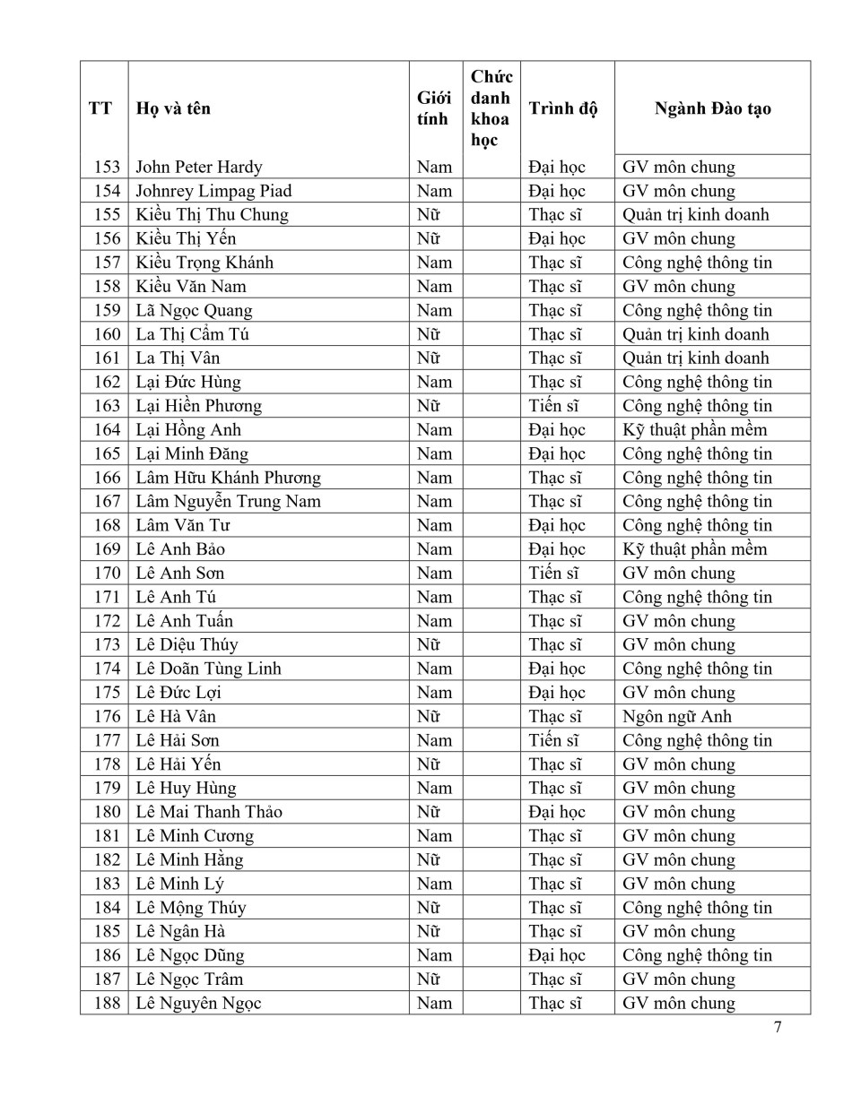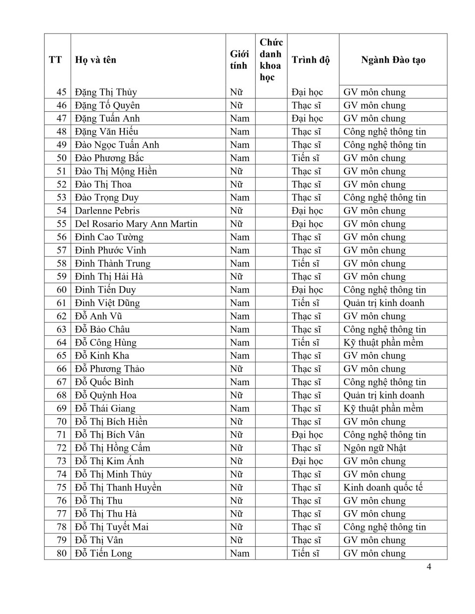 Công khai giảng viên cơ hữu năm học 2014 - 2015