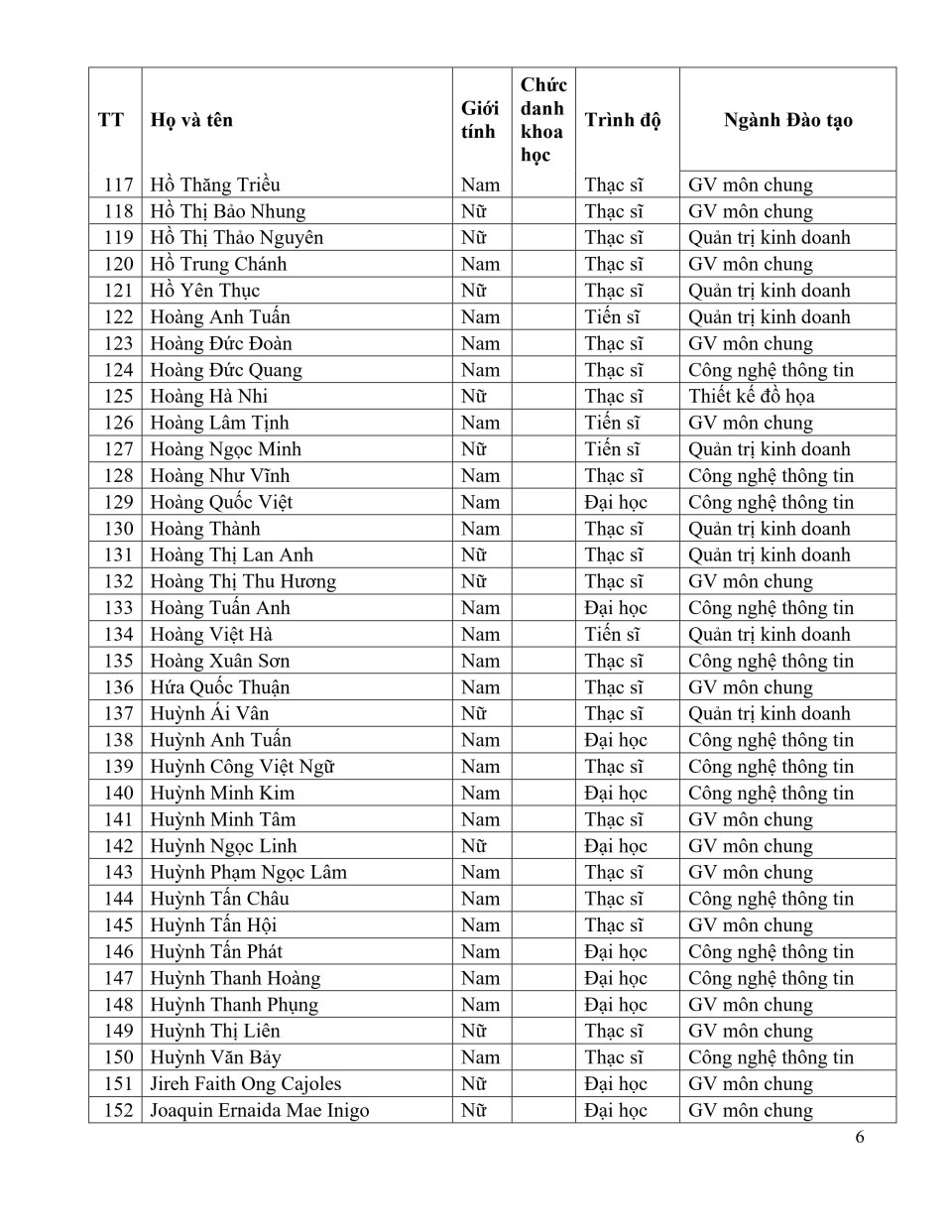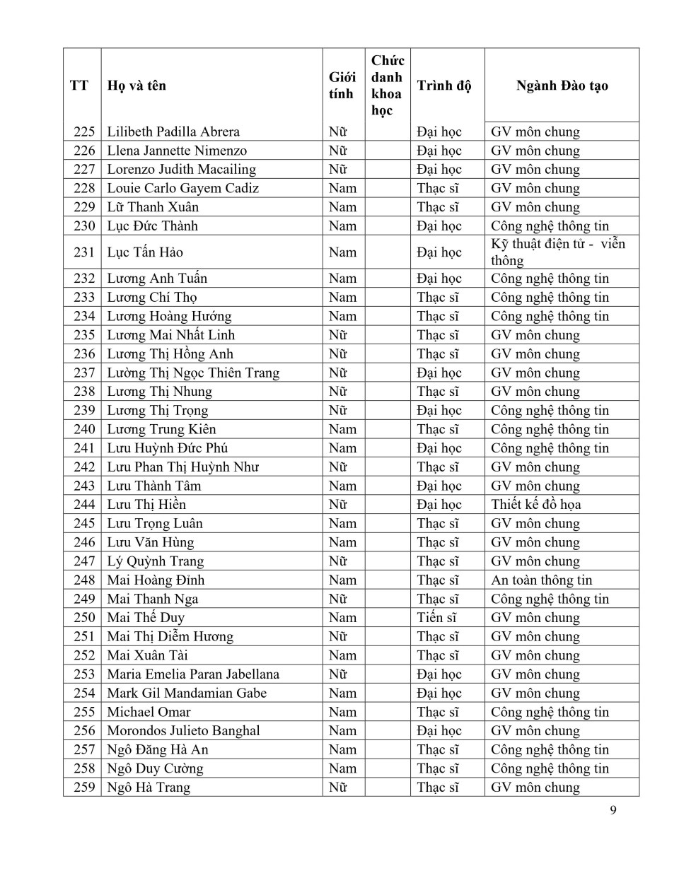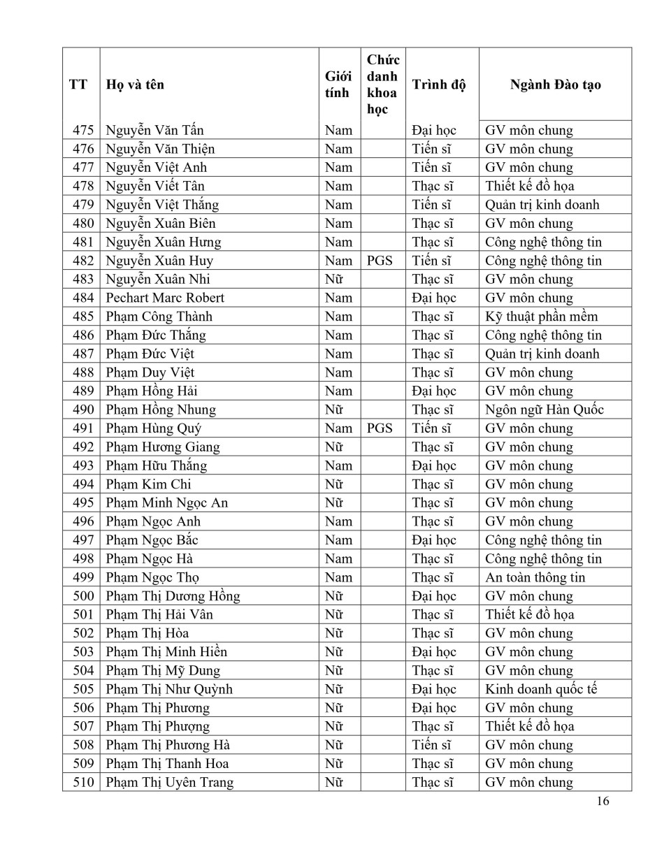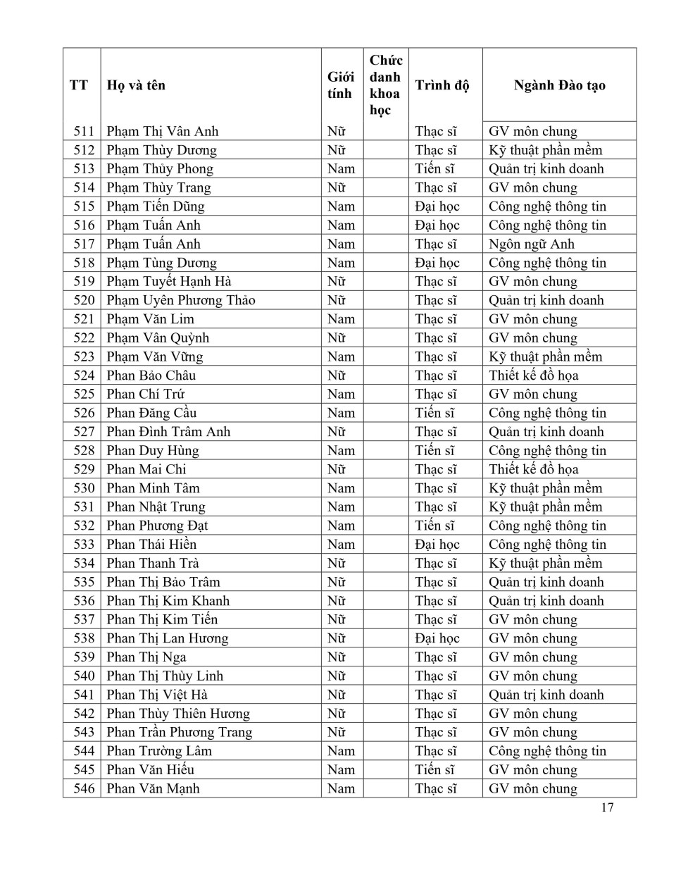 Công khai giảng viên cơ hữu năm học 2016 - 2017
